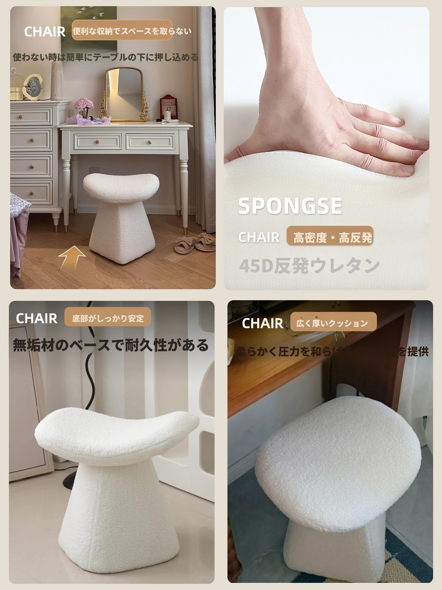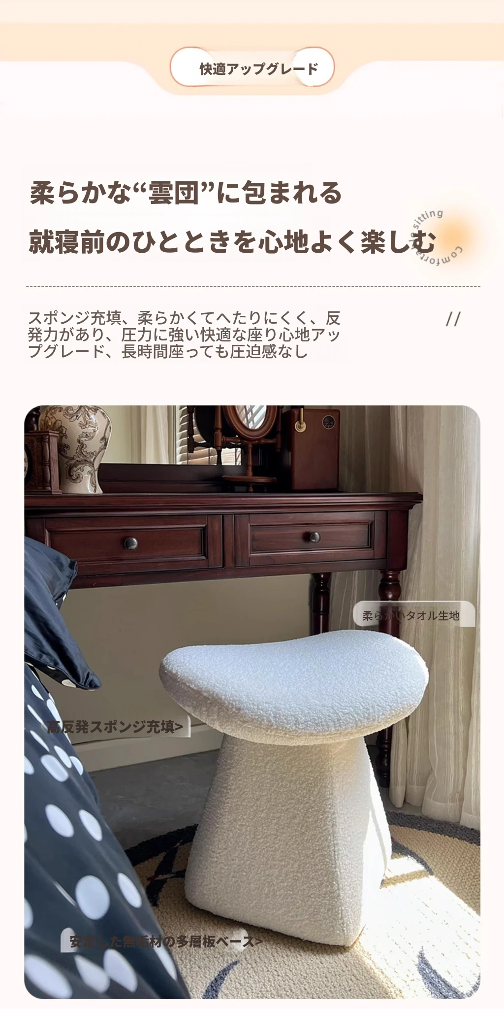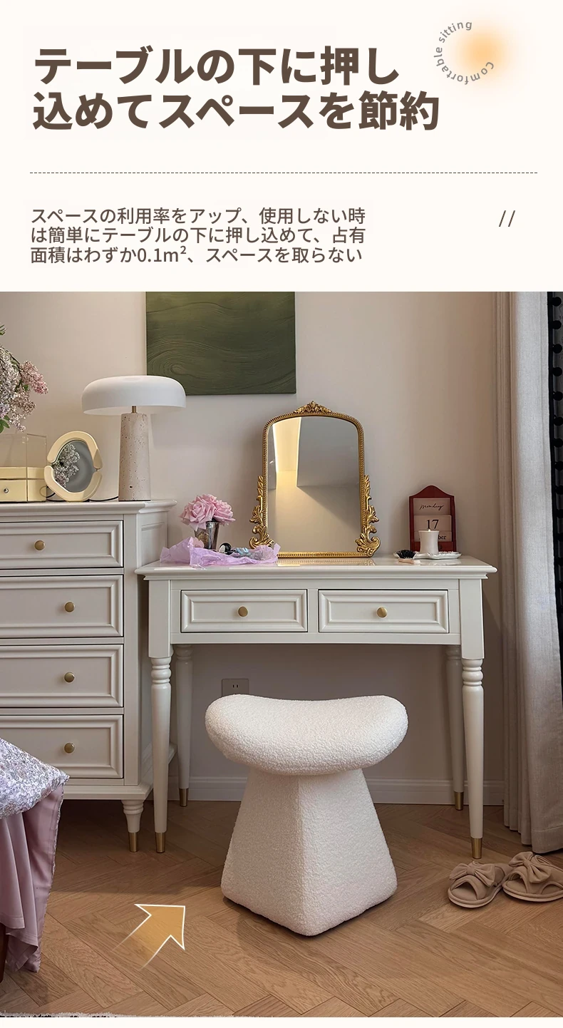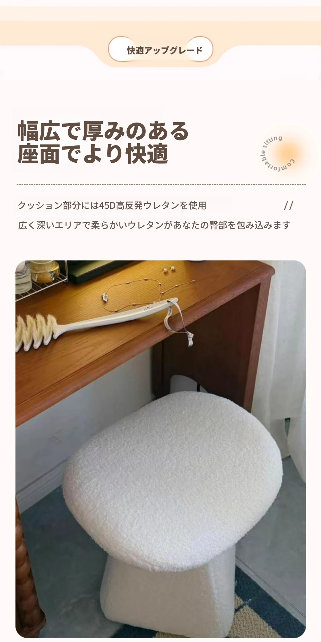 話題沸騰!高級シンプルデザインのクリーム風メイクアップスツール—主寝室にぴったりの実木製。スタイリッシュなインテリアに最適、あなたのビューティータイムを格上げします!