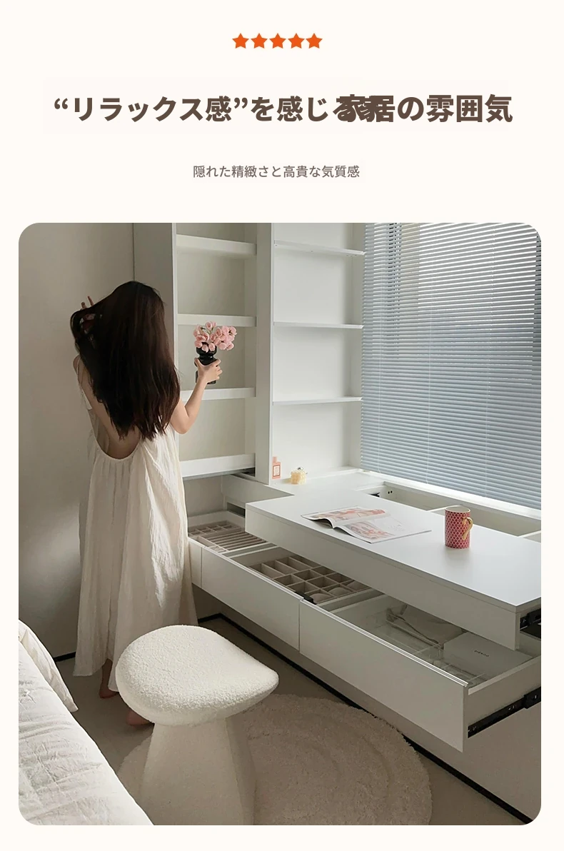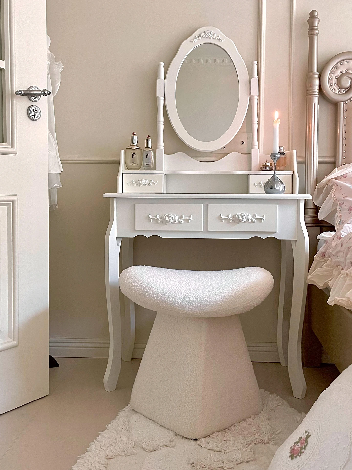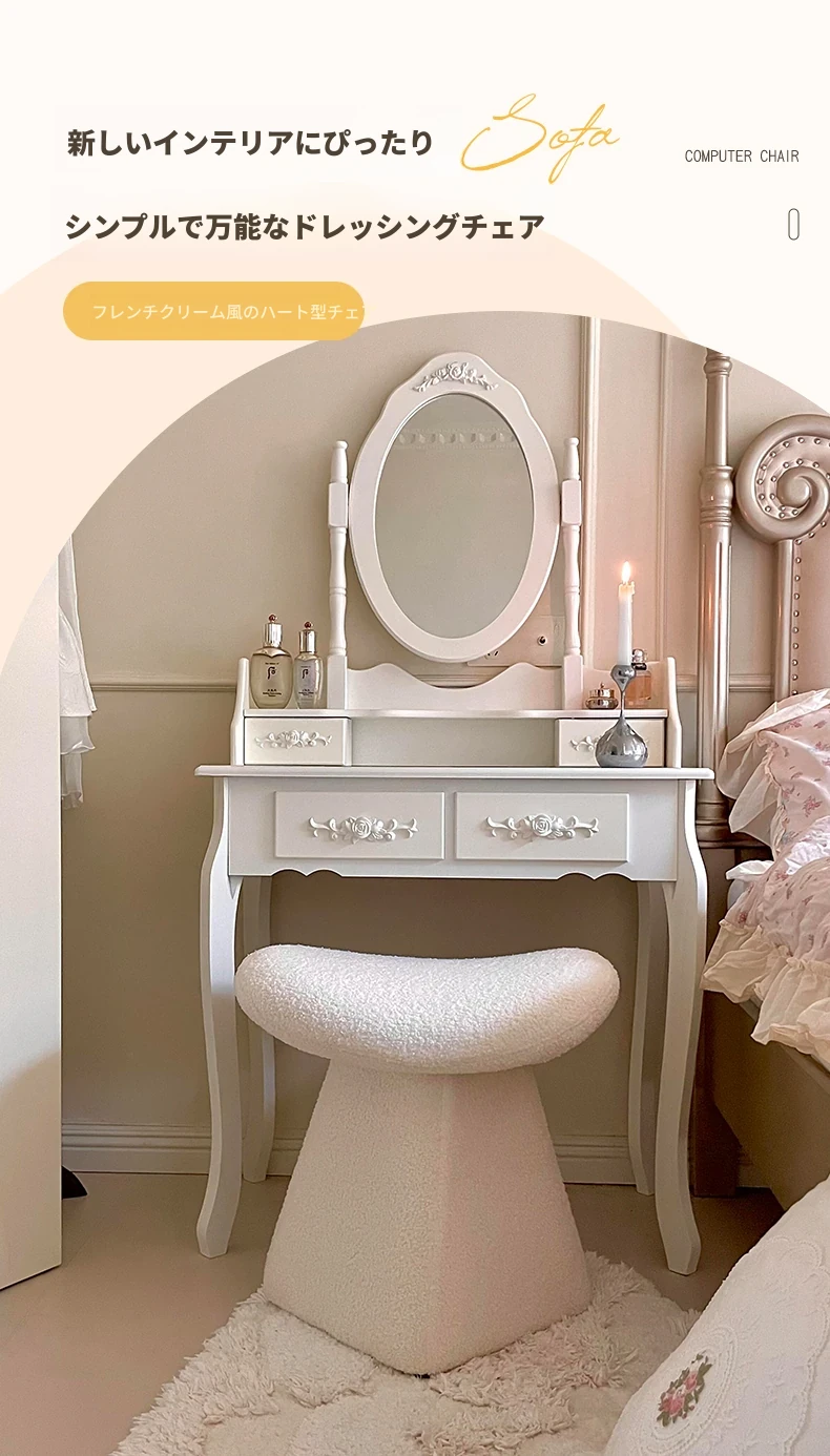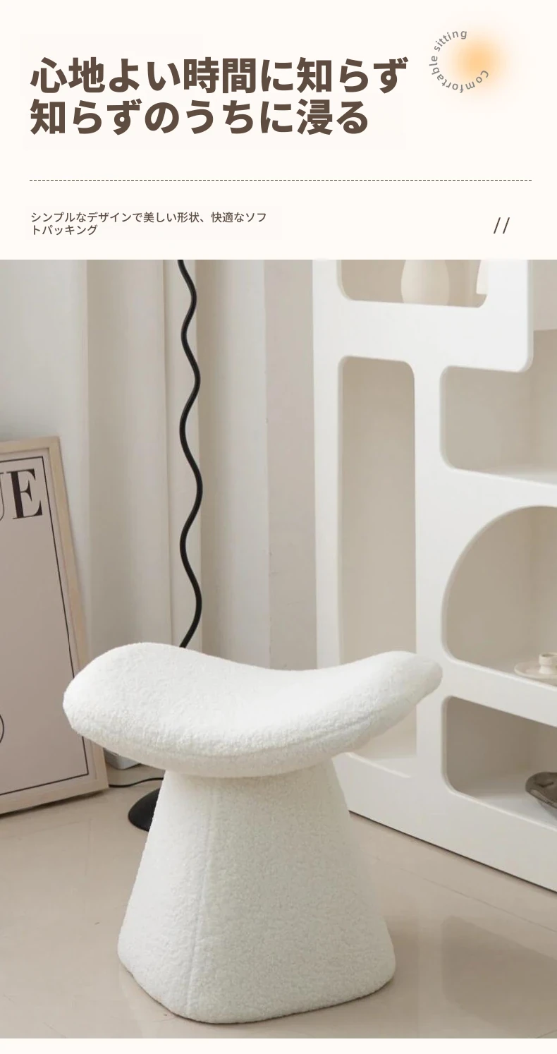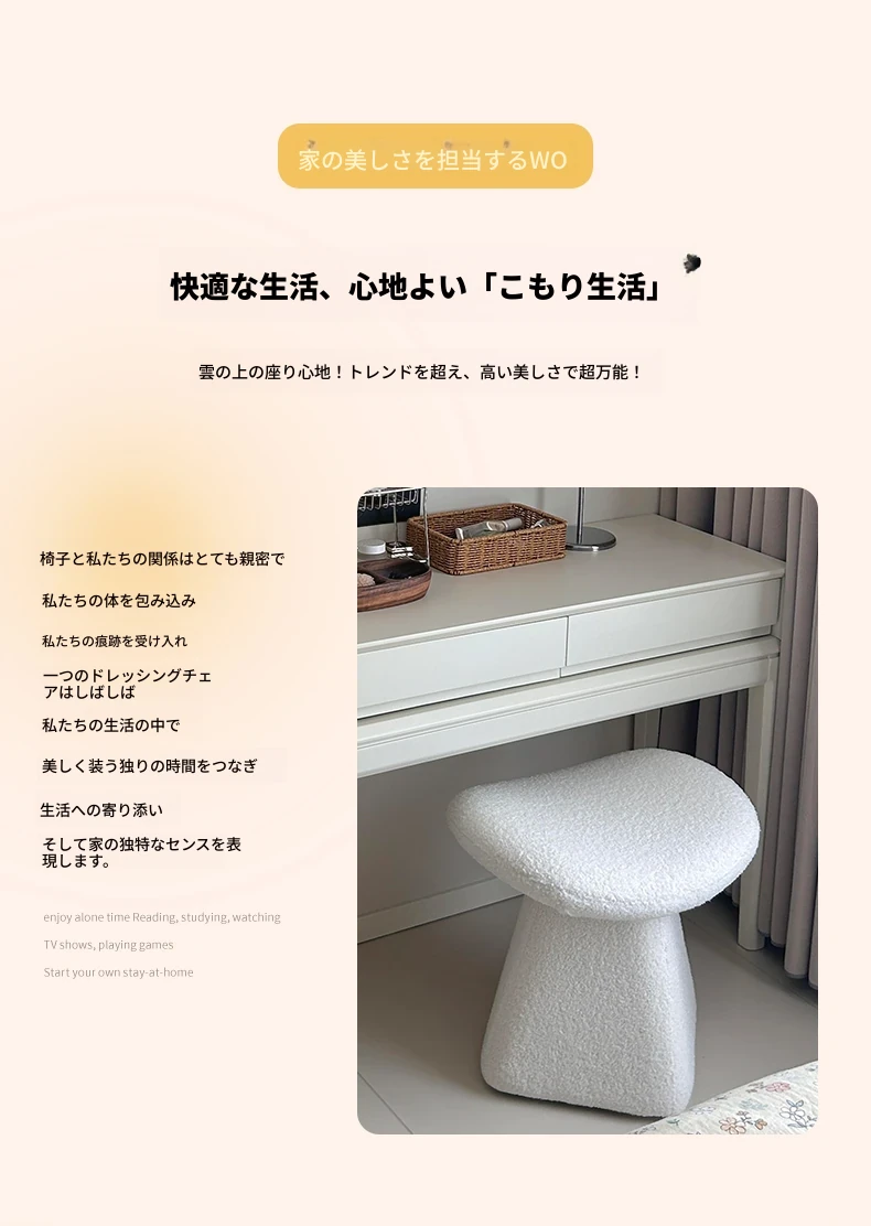 話題沸騰!高級シンプルデザインのクリーム風メイクアップスツール—主寝室にぴったりの実木製。スタイリッシュなインテリアに最適、あなたのビューティータイムを格上げします!