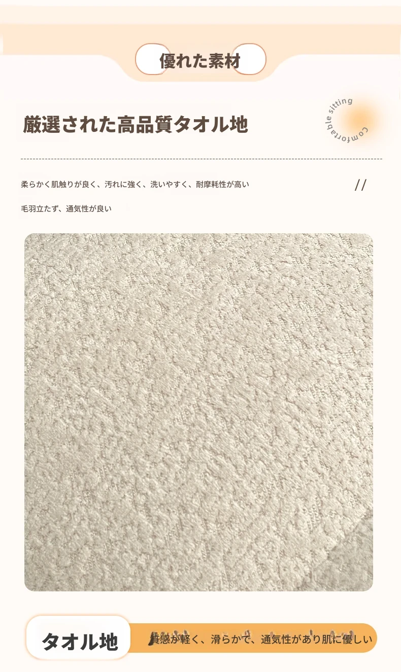 アイボリー - 肌触りの良いタオル生地【360°回転】