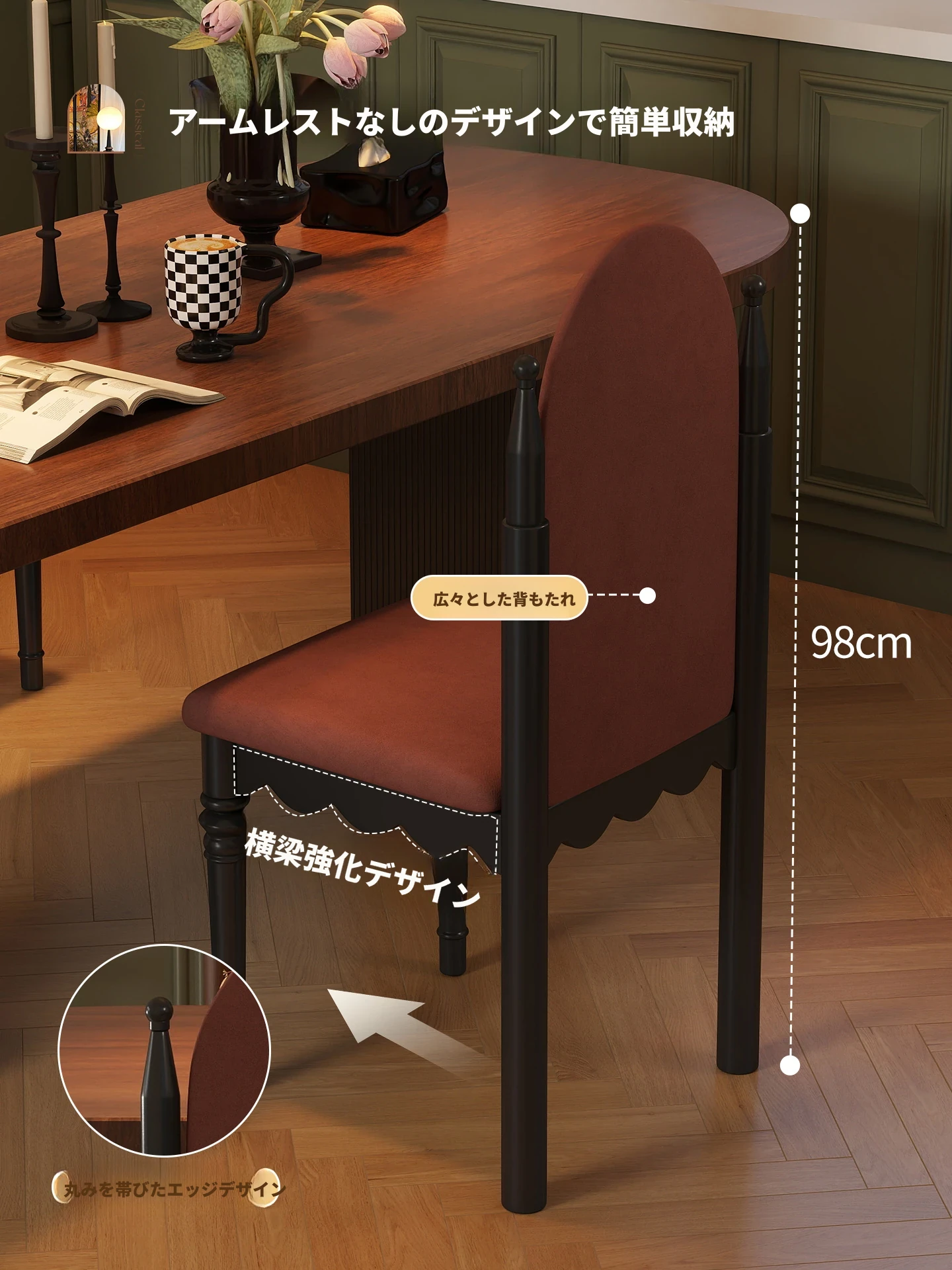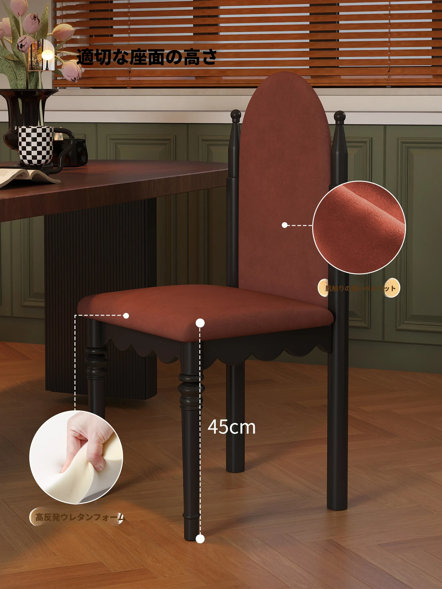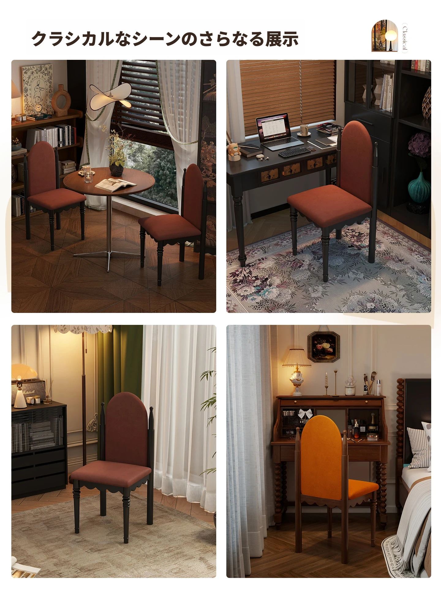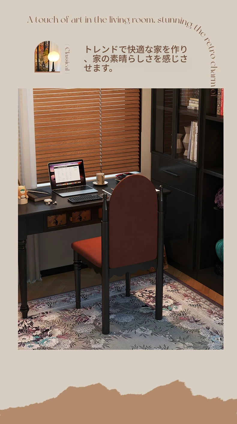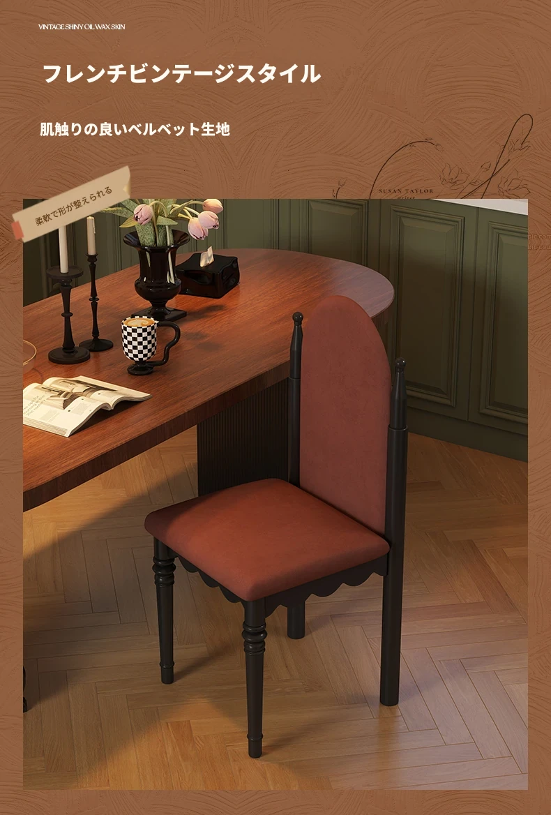 アメリカンスタイルの無垢材ソフトパッキングダイニングチェア|レトロな高背もたれ|イリングサイドチェア|ダイニングテーブル用|リビングやフレンチスタイルのメイクアップチェアに最適!