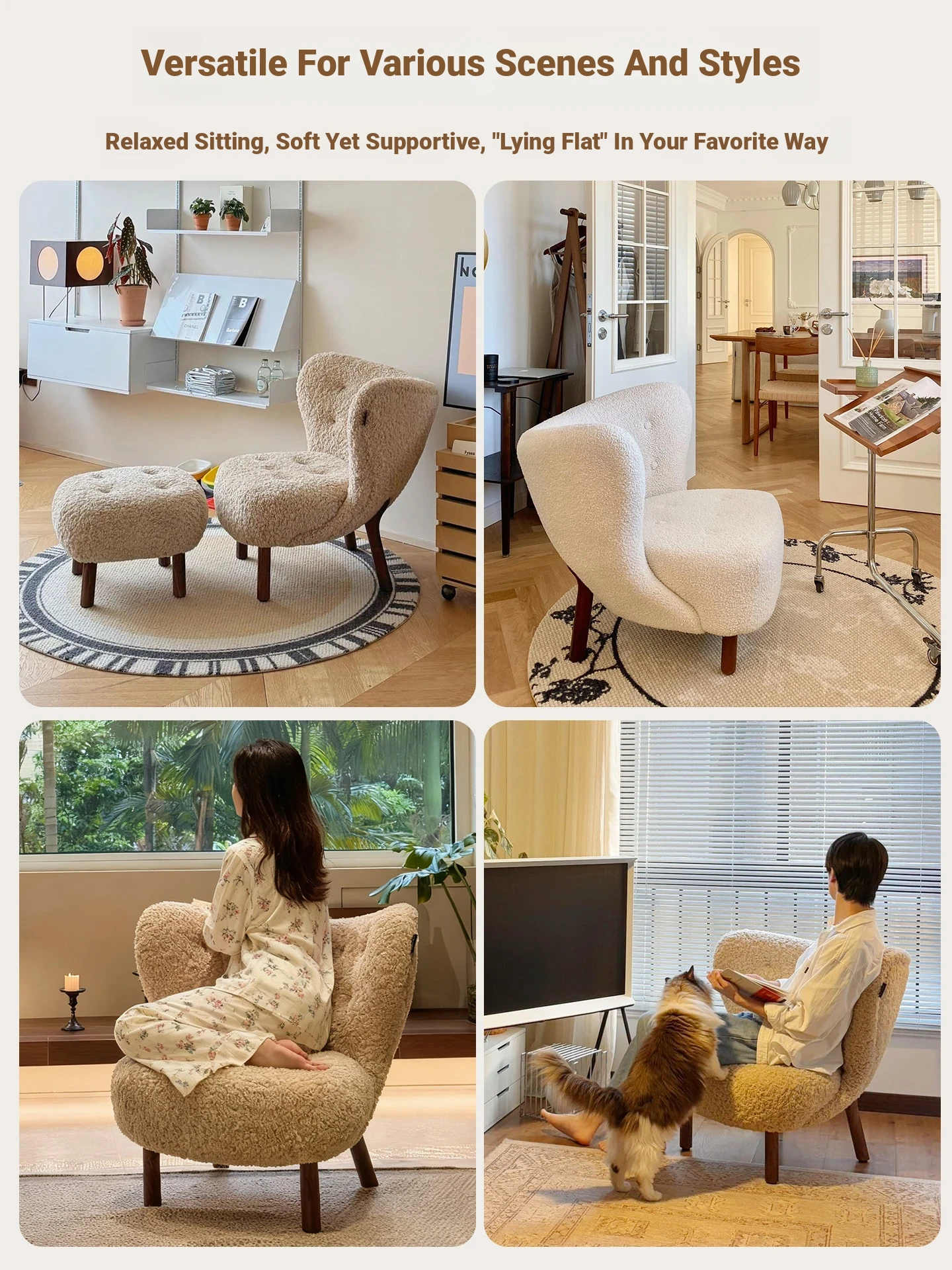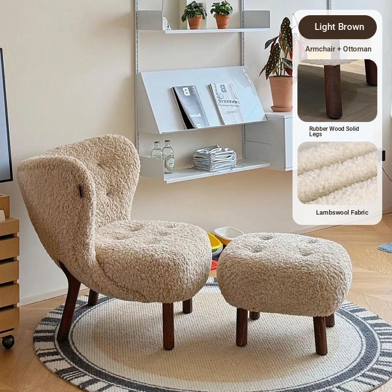 Small Petra Chair + Footrest [Light Brown - Lambswool - Rubberwood Legs]