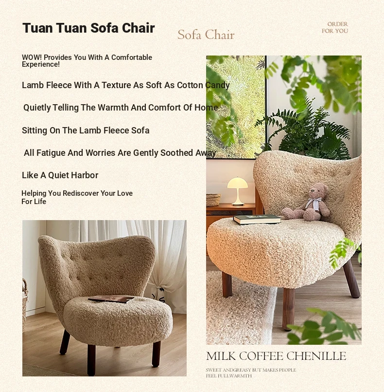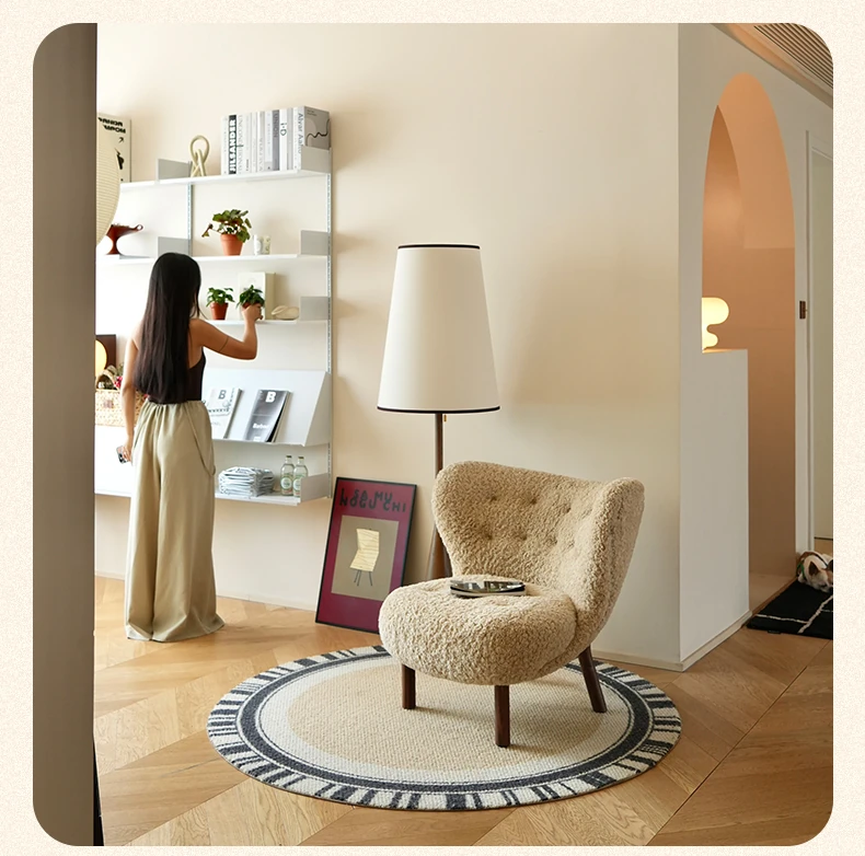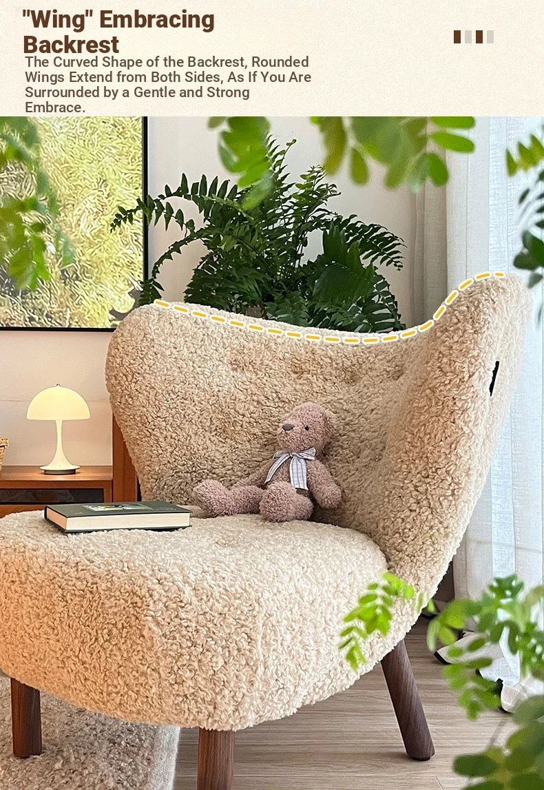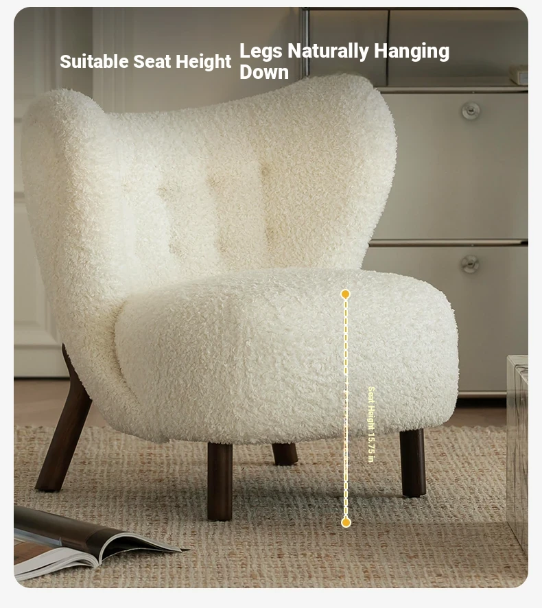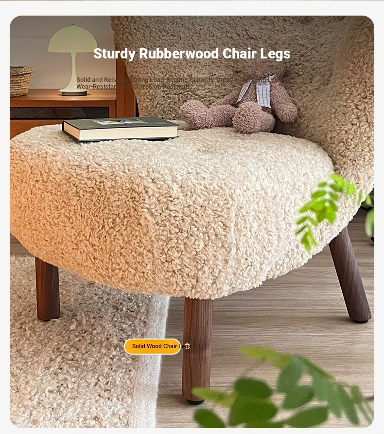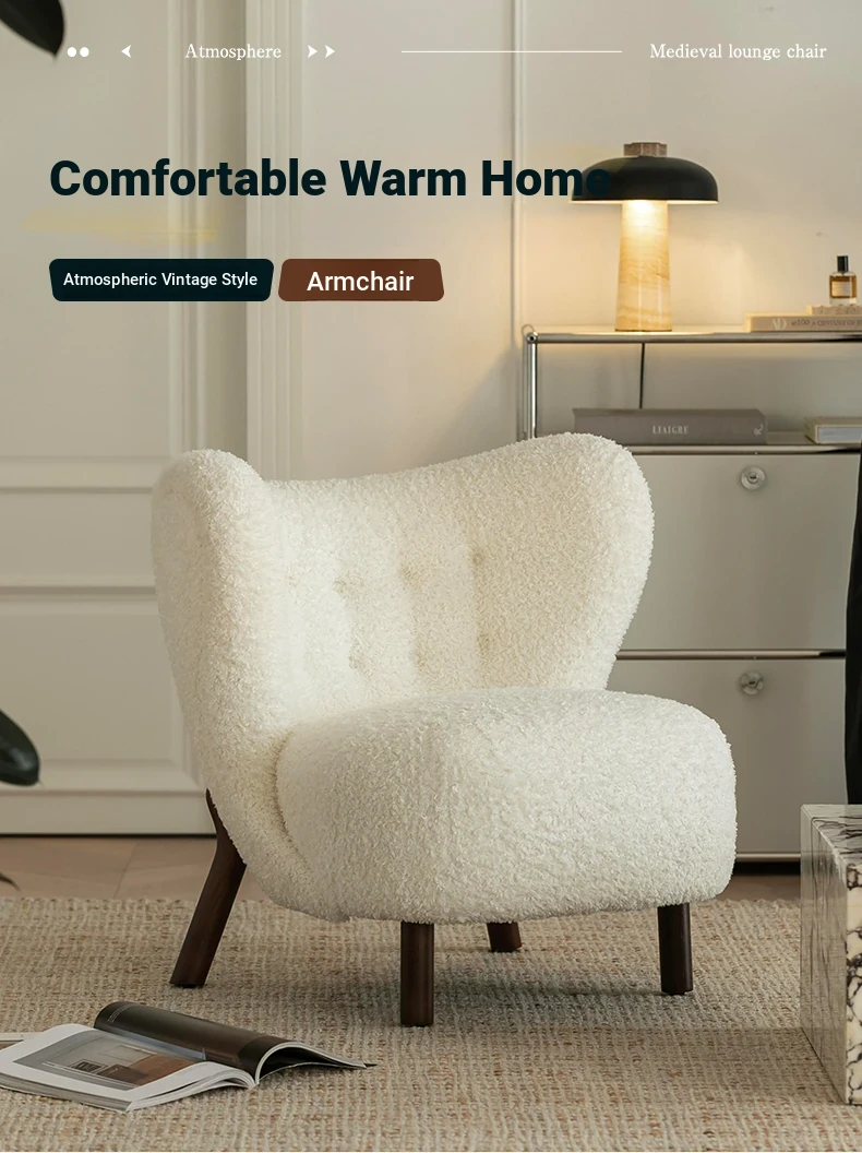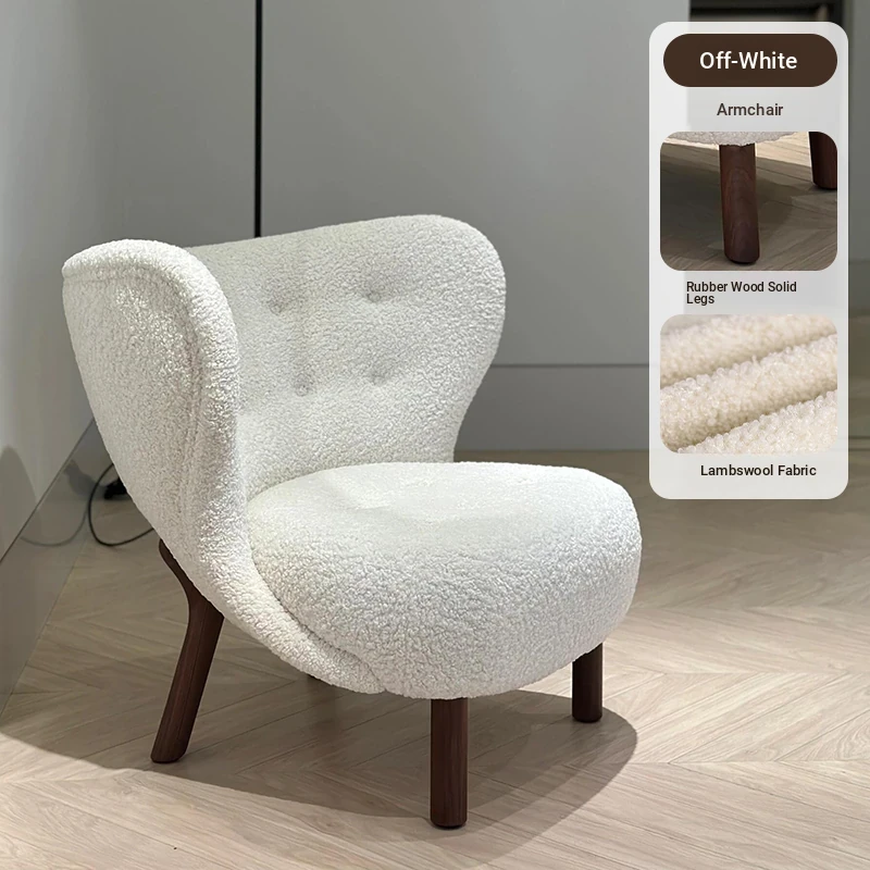 Vintage Designer Single Armchair - Mid-Century Modern Leisure Sofa with Solid Wood and Lambswool Upholstery - Perfect for Cozy Spaces and Relaxation