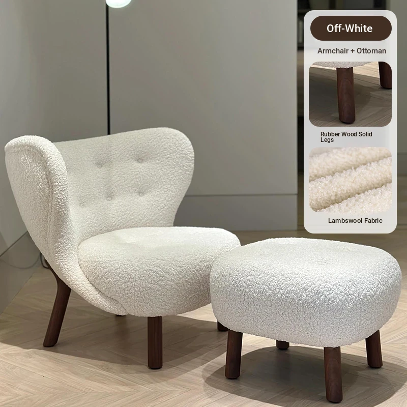 Small Petra Chair + Footrest [Off-White - Lambswool - Rubberwood Legs]
