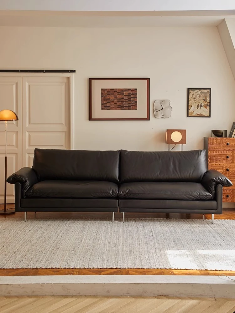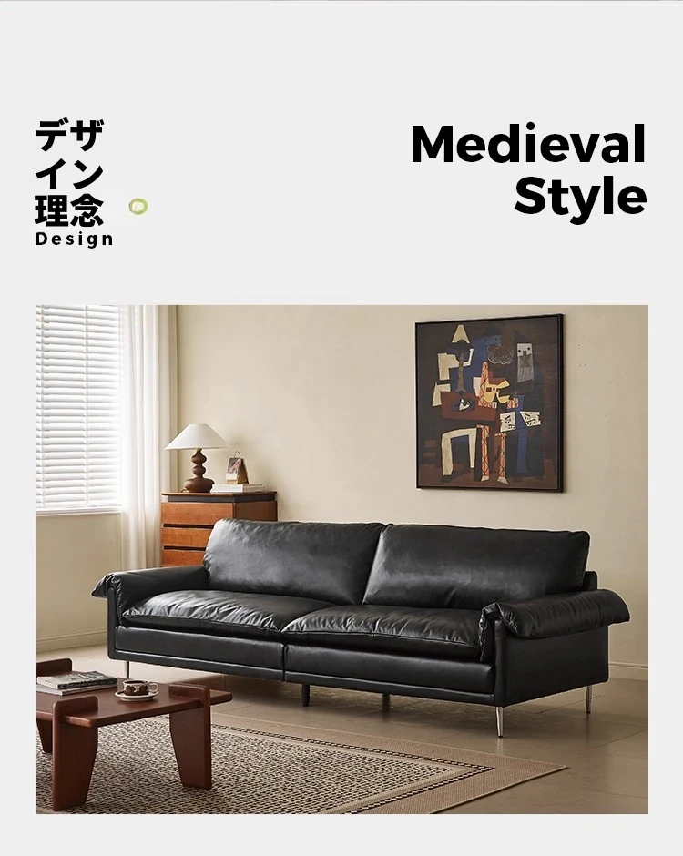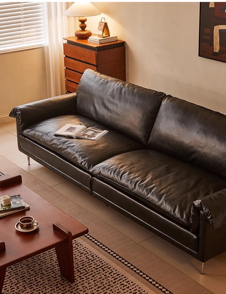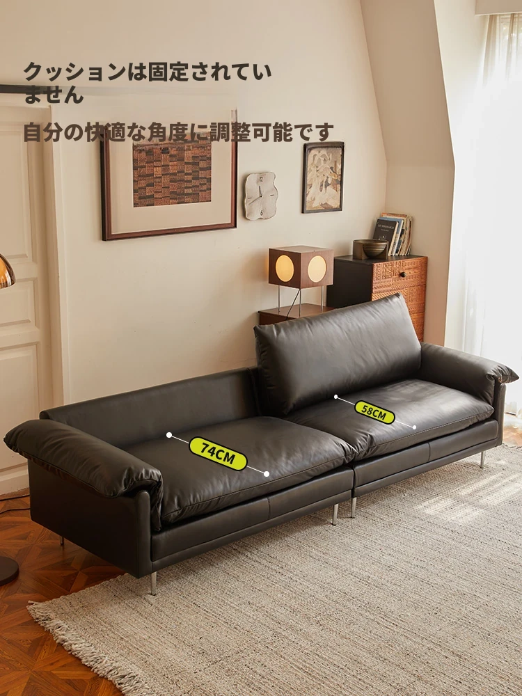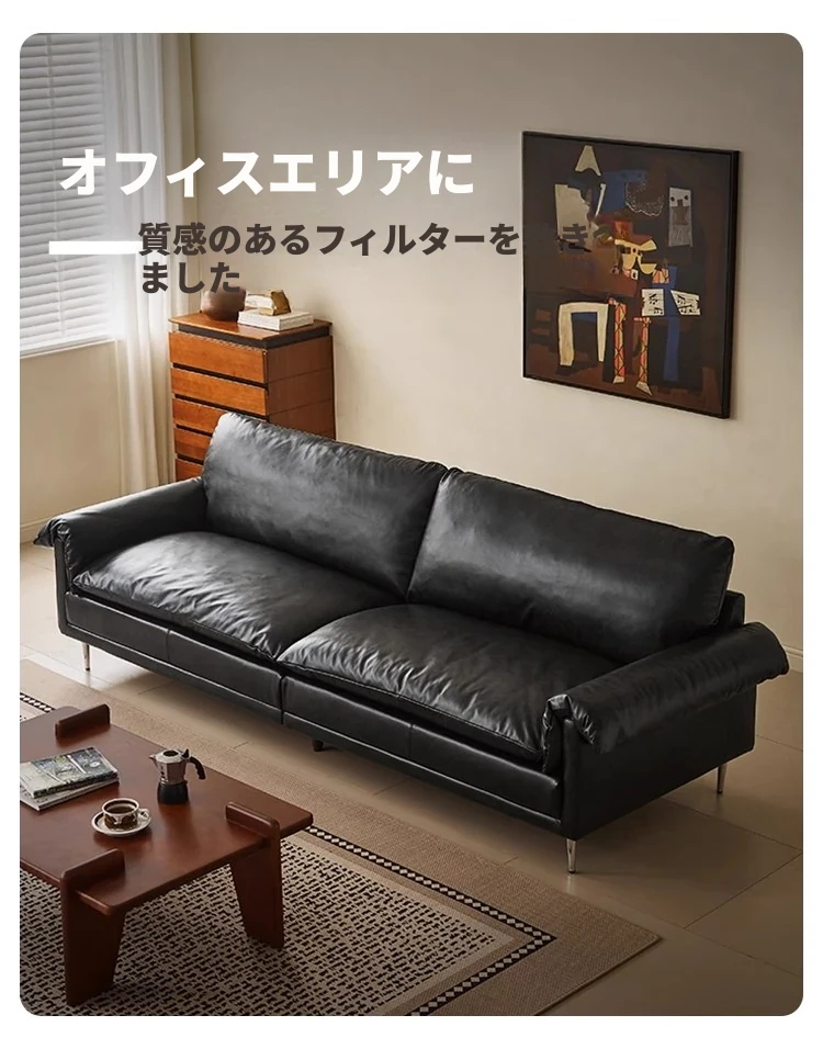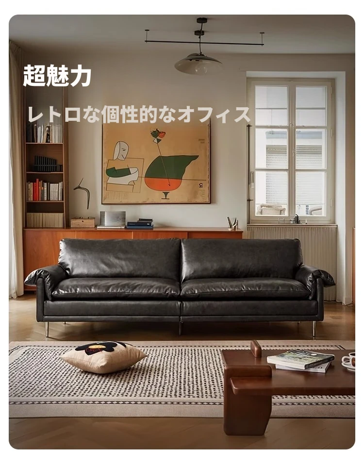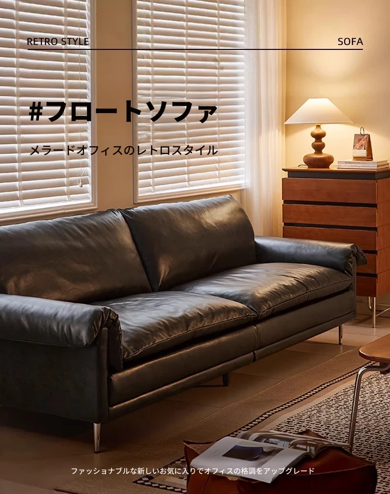 レトロな本革ソファ 小型リビングに最適!浮き光デザインのダウンクッション3人掛けソファ 中古風スタイルで居心地抜群!おしゃれで快適な空間を演出します。