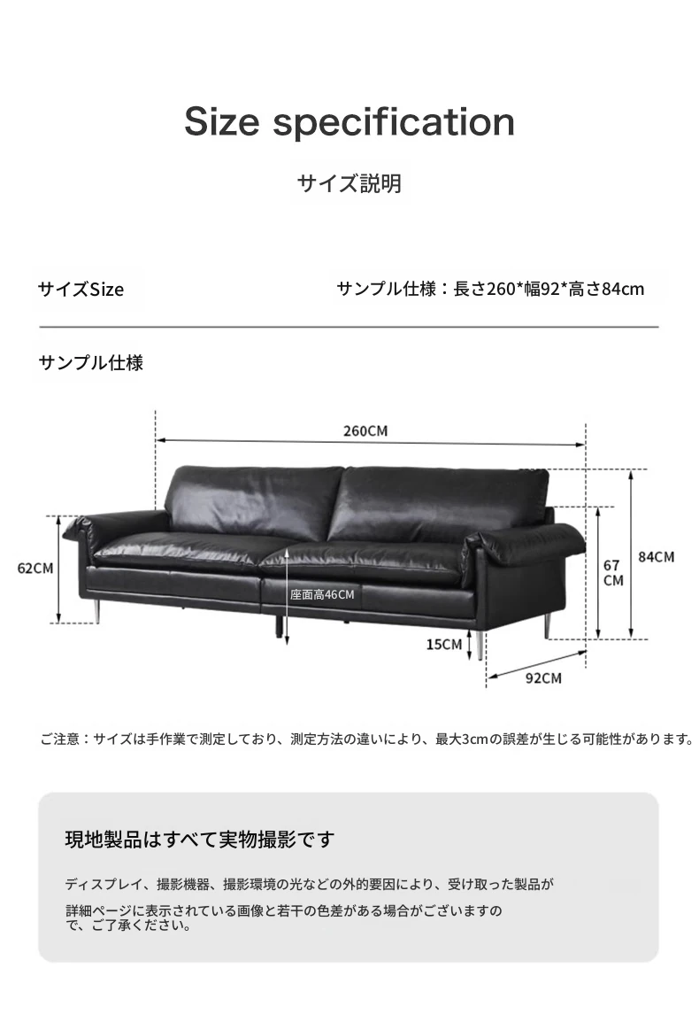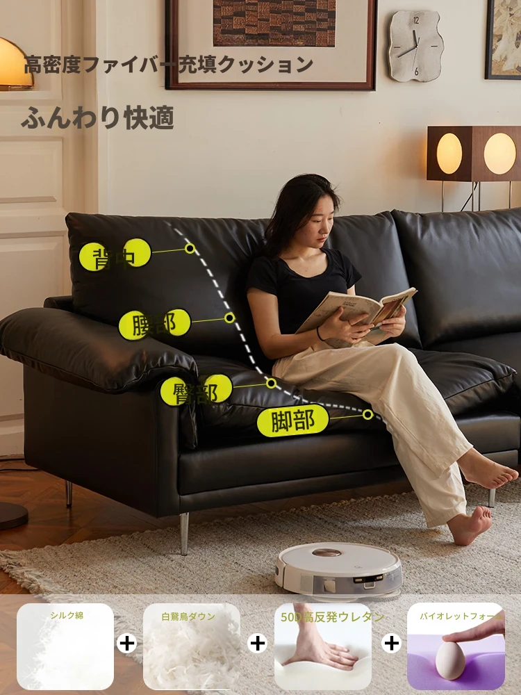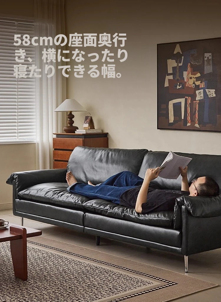 2.6メートル大4人用【厚手ナディファン打ち傷エコ本革+ふわふわ天然羽毛クッション+輸入落葉松フレーム】