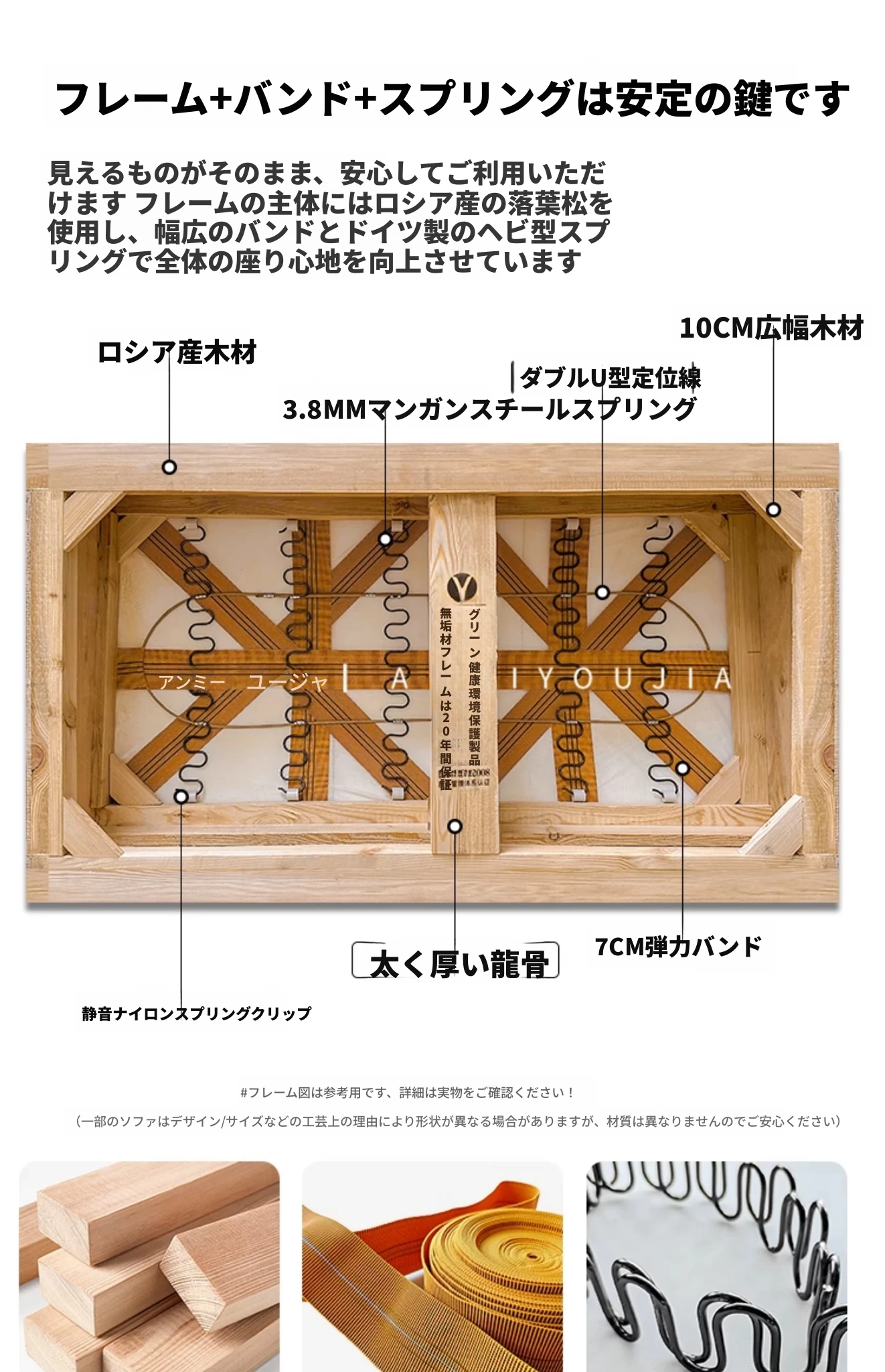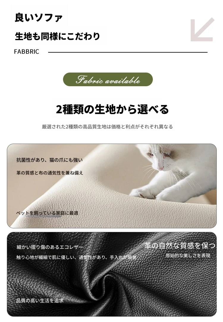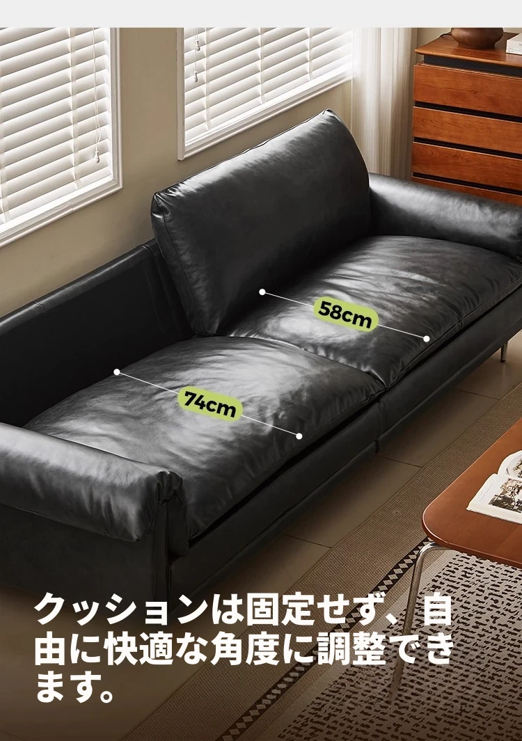 2.1メートル三人用【耐 scratch 耐磨防汚猫抓皮+ふわふわ天然羽毛クッション+輸入落葉松フレーム】