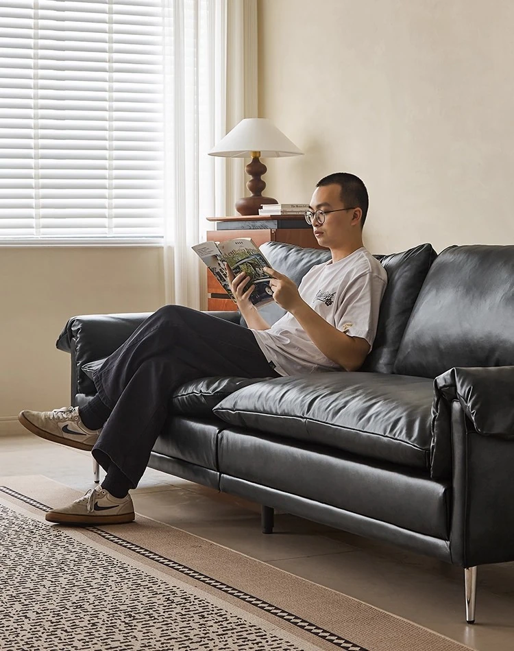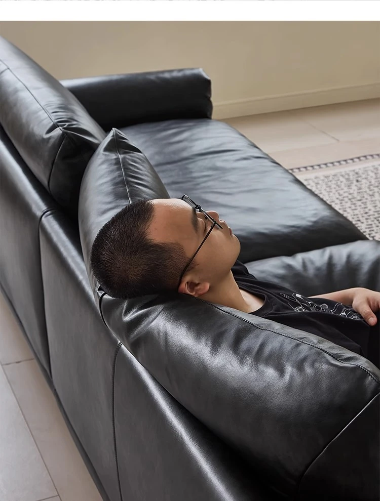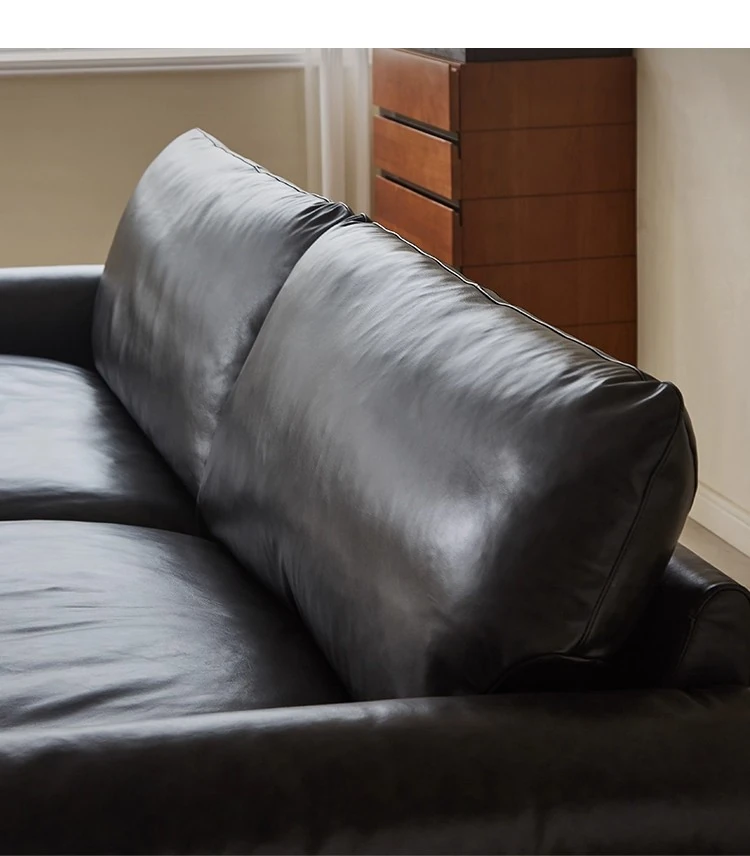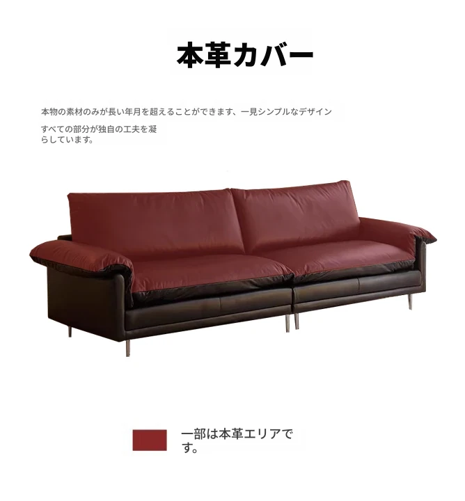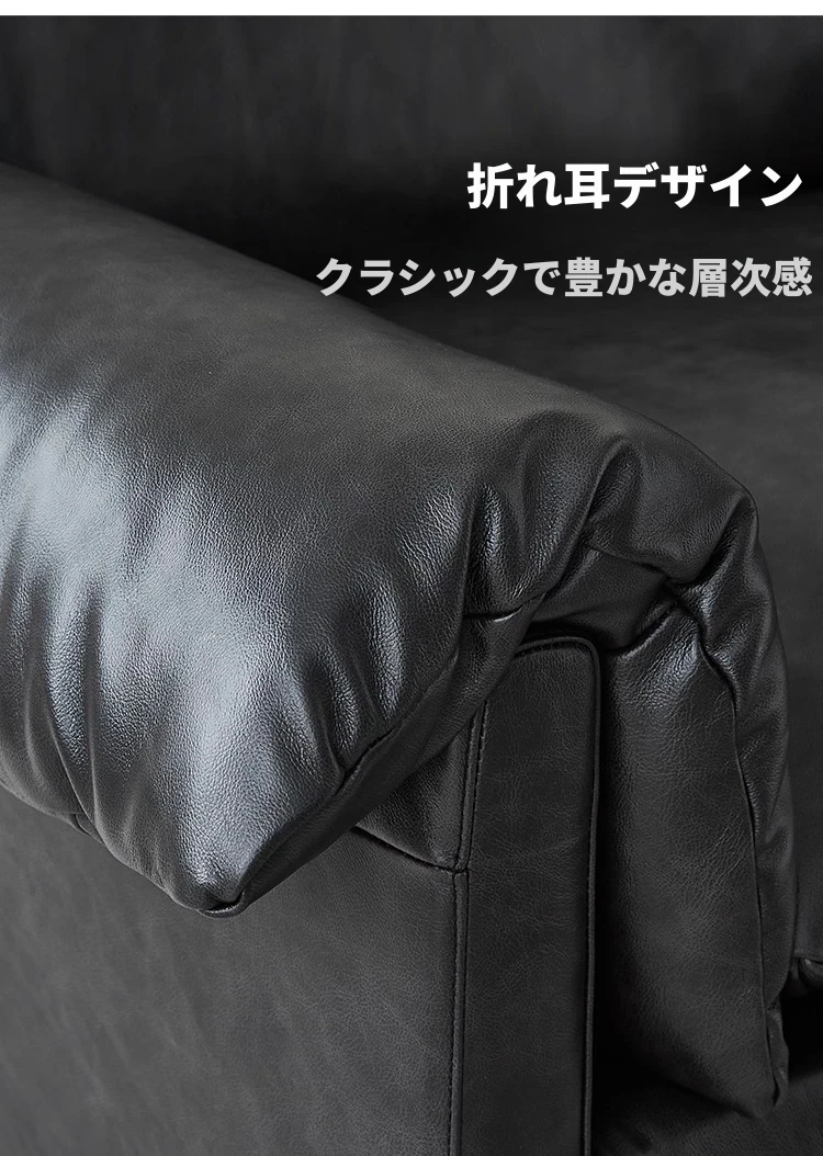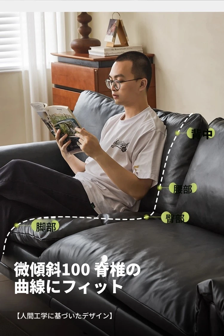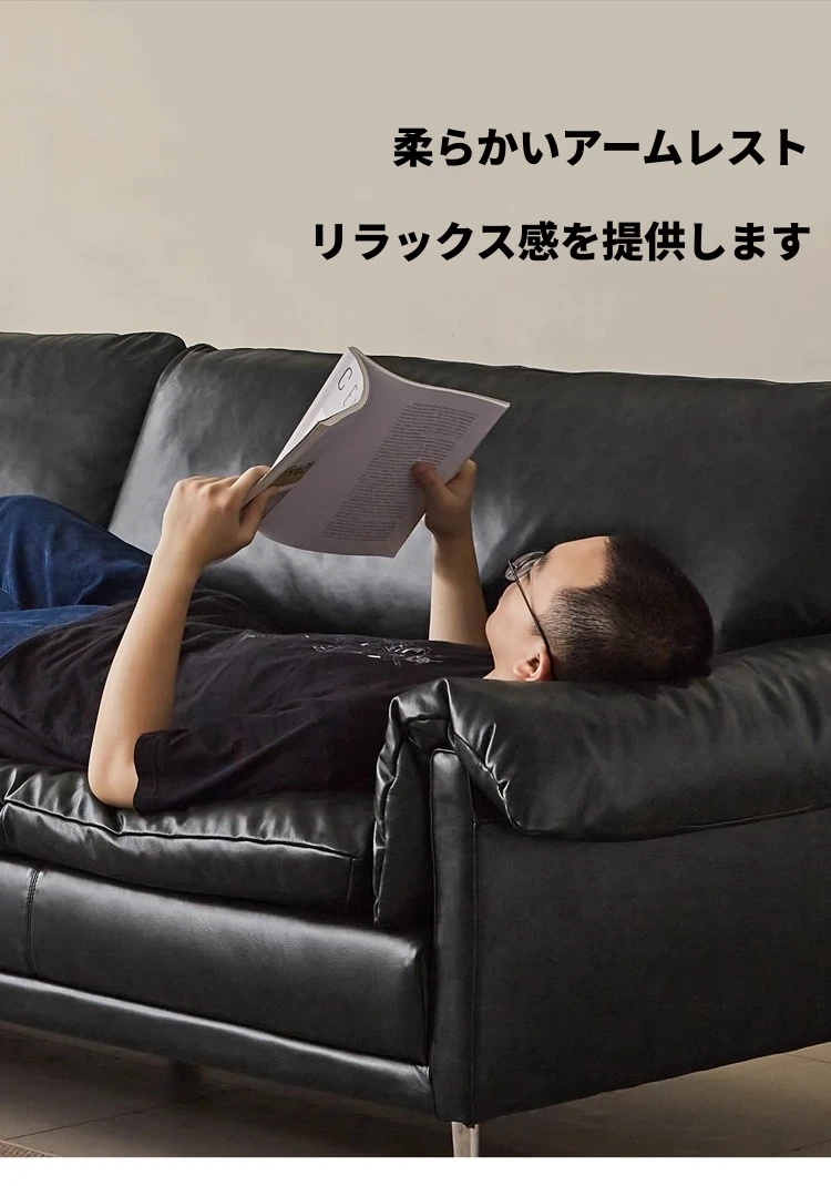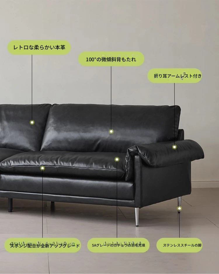 2.1メートル三人用【厚手ナディファン打ち傷エコ本革+ふわふわ天然羽毛クッション+輸入落葉松フレーム】