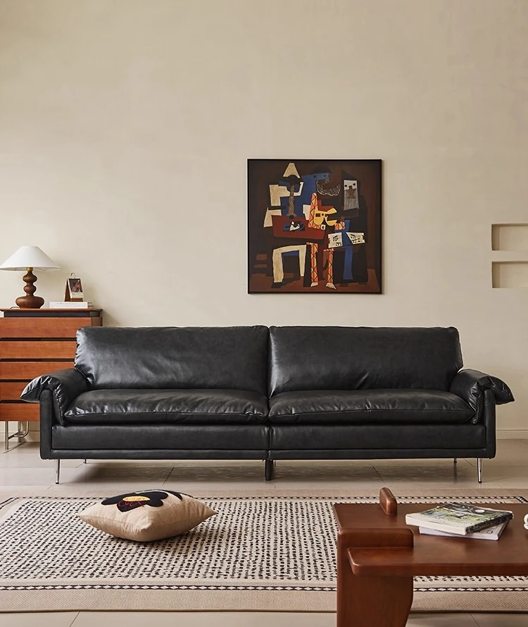 2.8メートル五人用【厚手ナディファン打ち傷エコ本革+ふわふわ天然羽毛クッション+輸入落葉松フレーム】