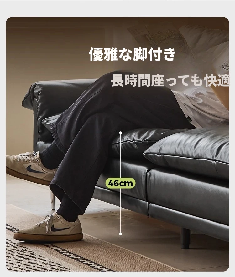 2.6メートル大4人用【耐 scratch 耐磨防汚猫抓皮+ふわふわ天然羽毛クッション+輸入落葉松フレーム】
