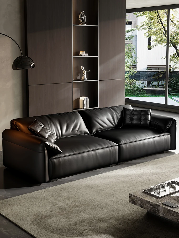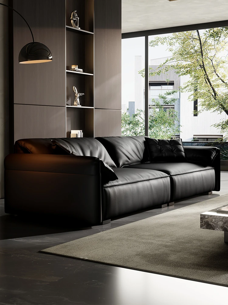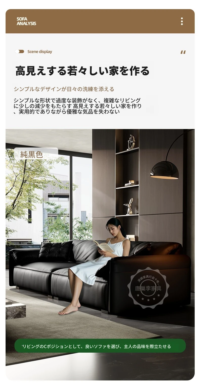 エレガントな象耳デザインの本革ソファ|上質な牛革使用|イタリアンスタイル|コンパクトなリビングに最適|シックなブラックレザー仕上げ|ヴィンテージ感漂う小型ソファで、居心地の良い空間を演出!
