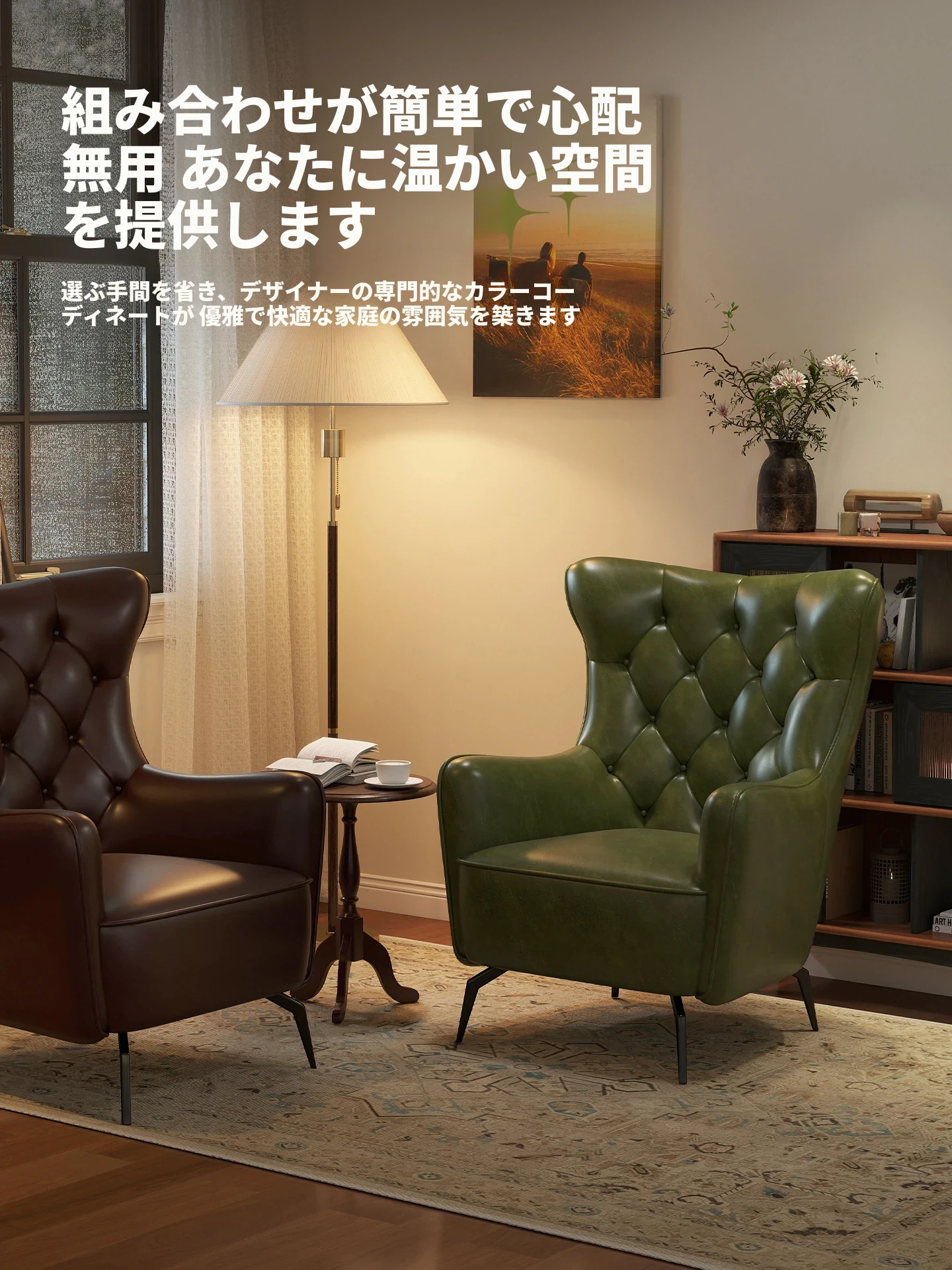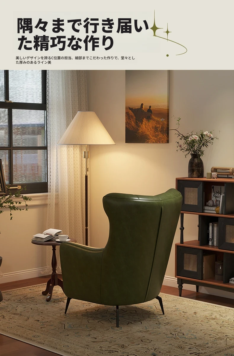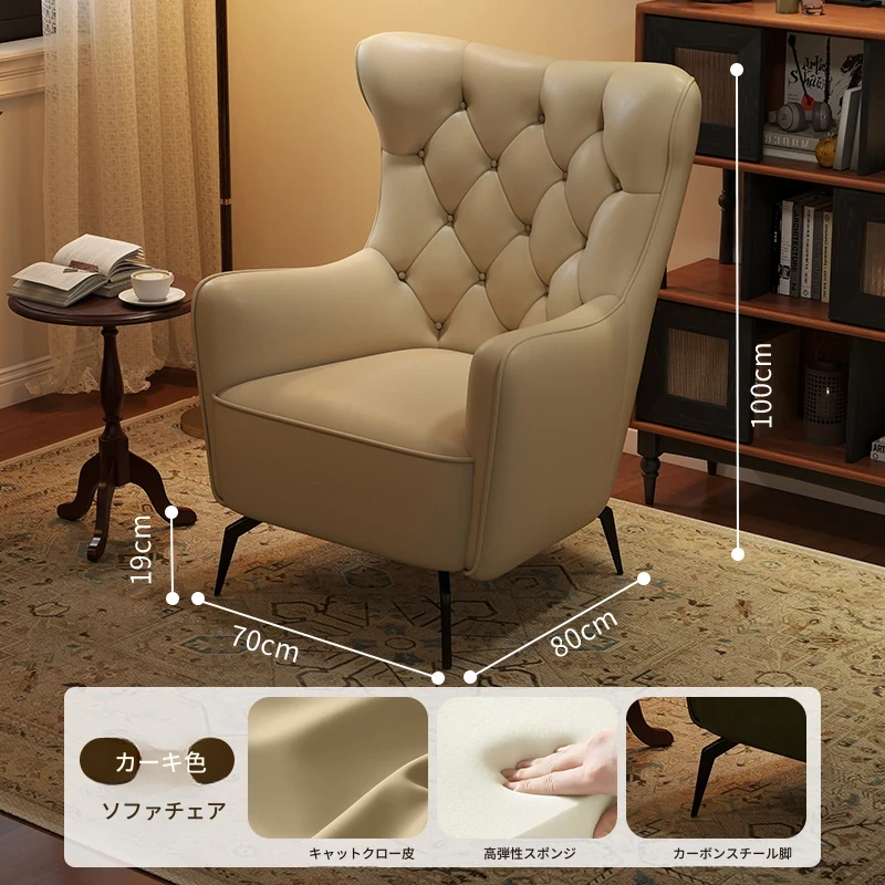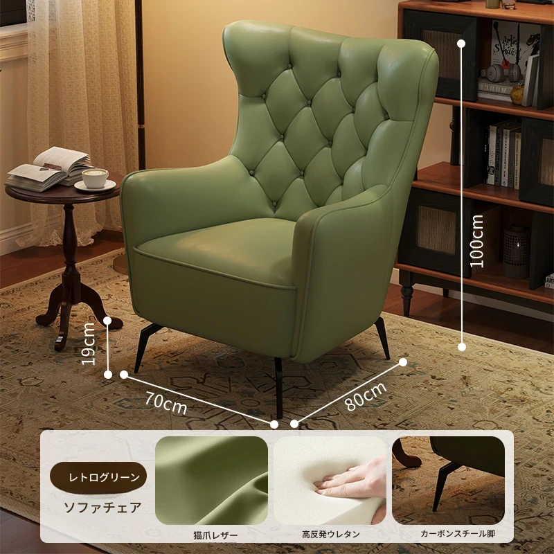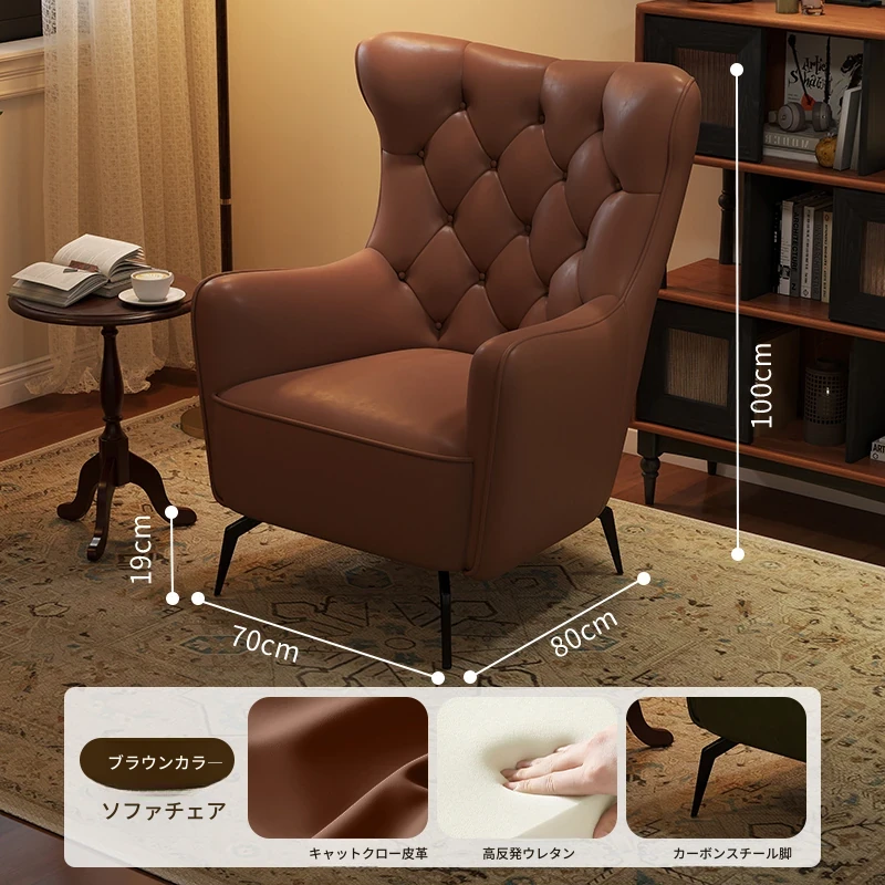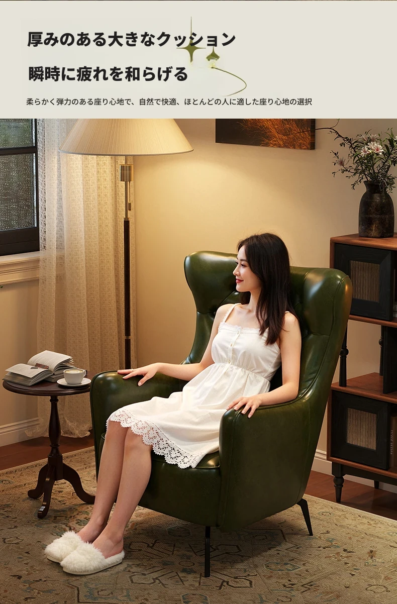 レトロな一人掛けソファー|オイルワックスレザー使用のアメリカンハイバックソファ|リビングや商談に最適なエレガントな一人椅子!快適な座り心地で、あなたの空間をスタイリッシュに演出します。