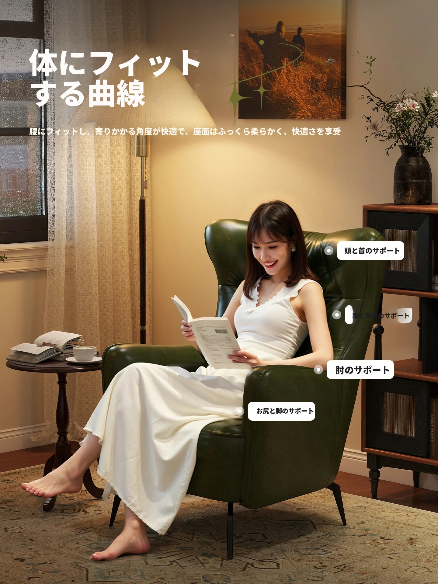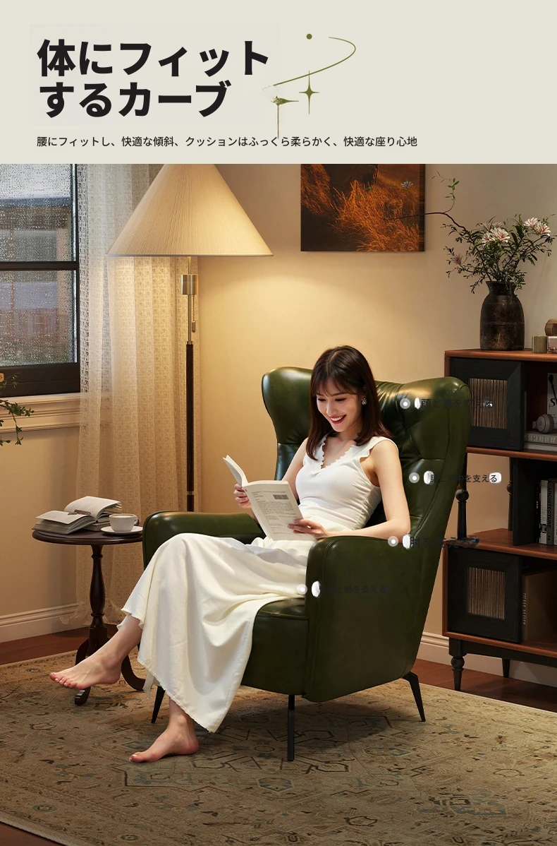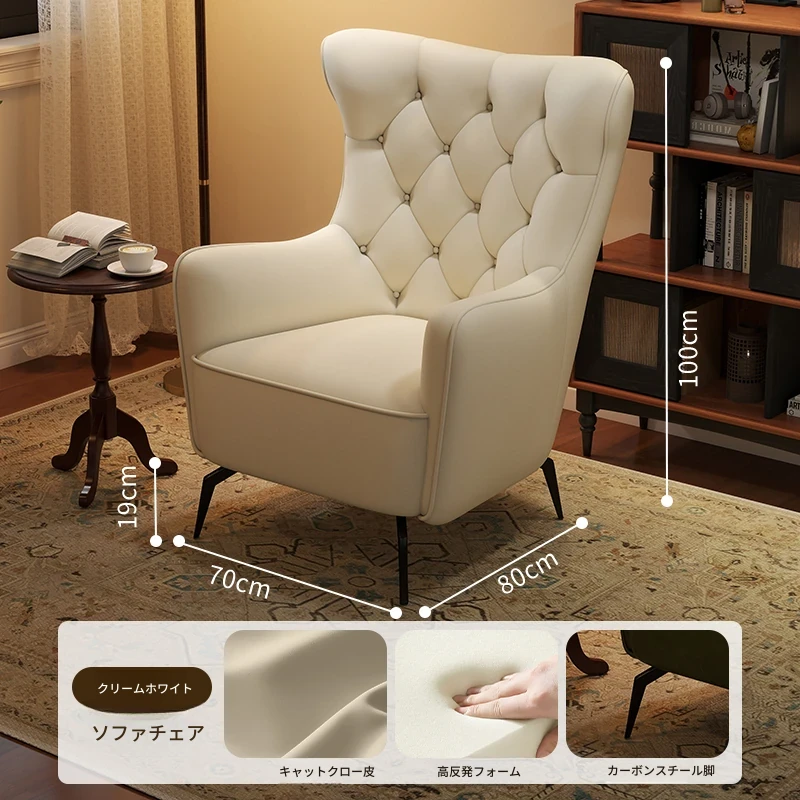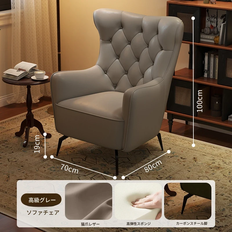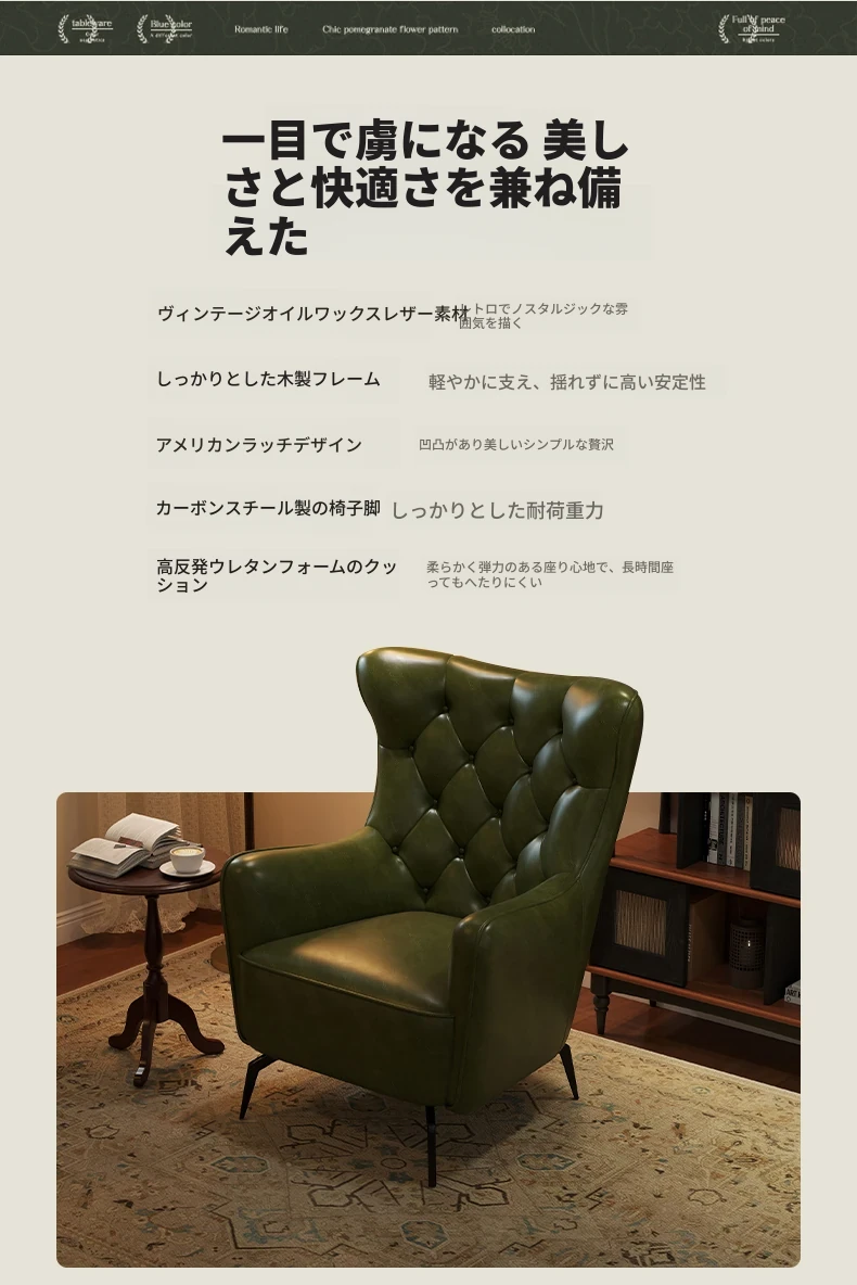 レトロな一人掛けソファー|オイルワックスレザー使用のアメリカンハイバックソファ|リビングや商談に最適なエレガントな一人椅子!快適な座り心地で、あなたの空間をスタイリッシュに演出します。