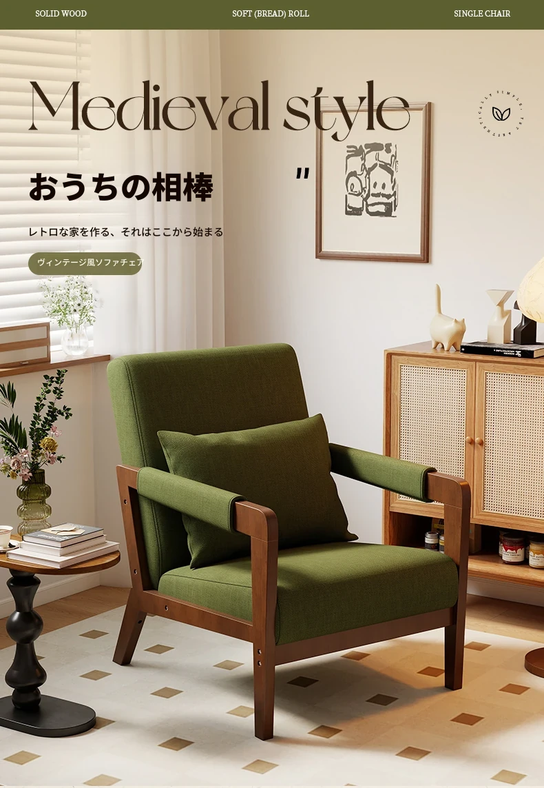 レトロスタイルの一人掛けソファ - リビングやバルコニーに最適!高級感あふれるリラックスチェアで、寝室や休憩スペースにもぴったり。おしゃれなデザインでお客様をお迎えするのに最適です。