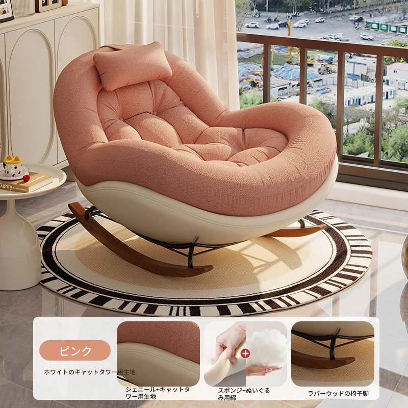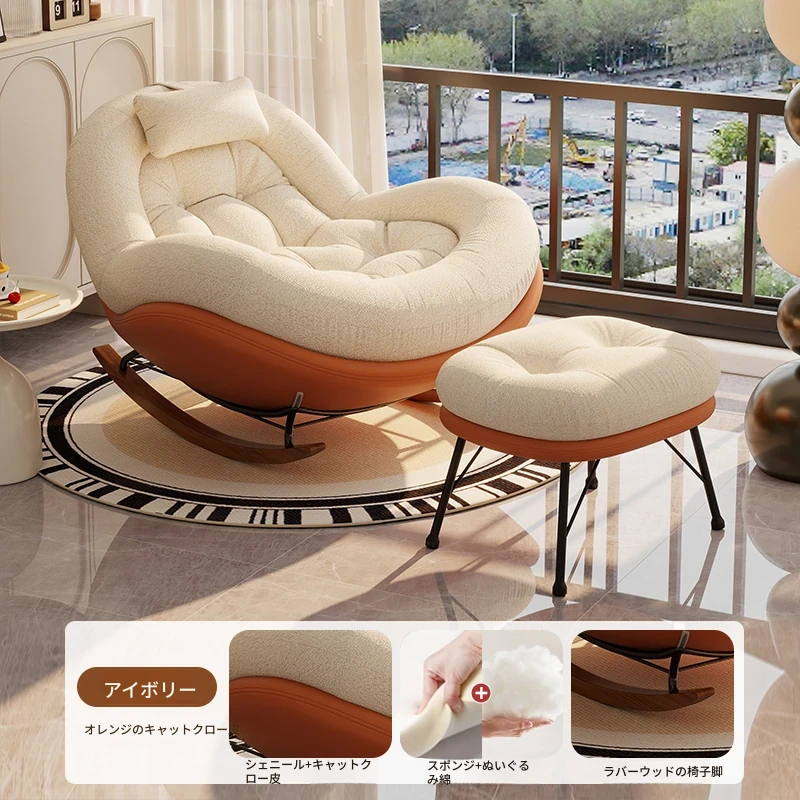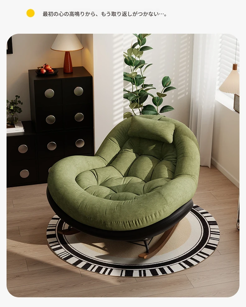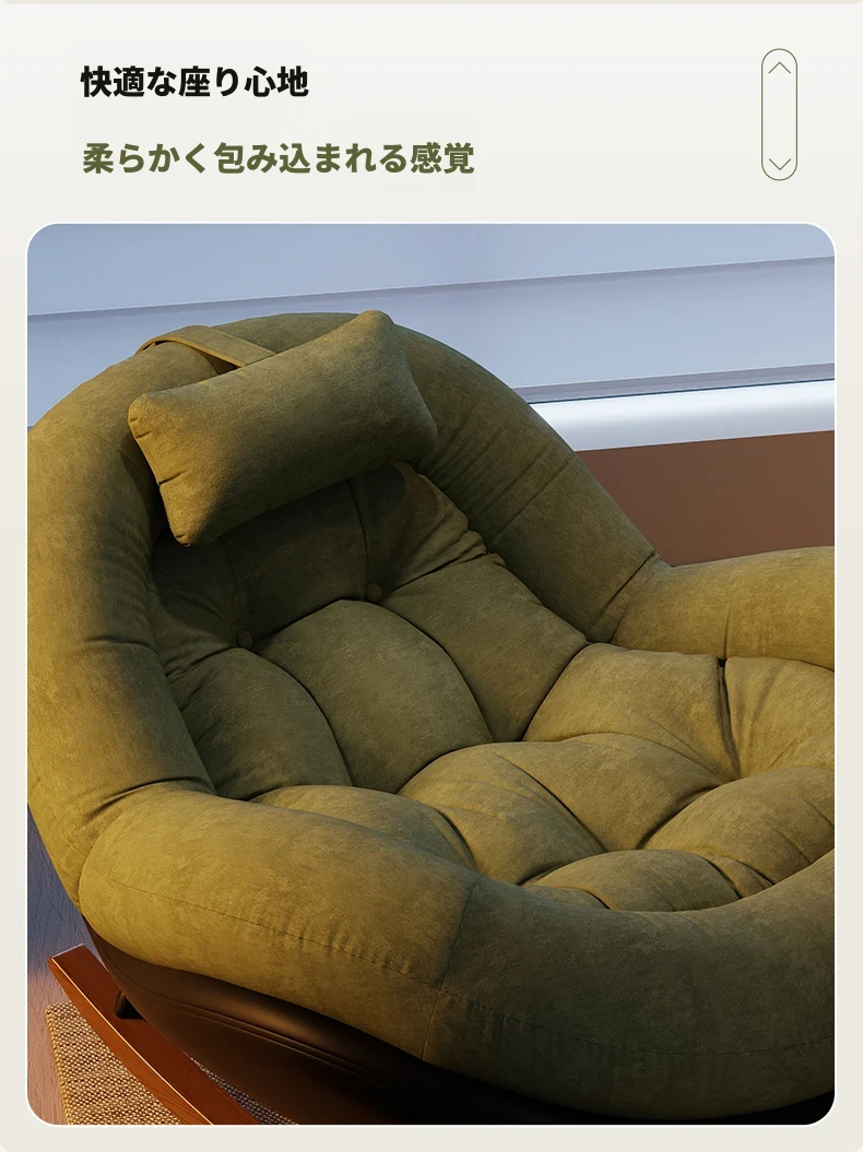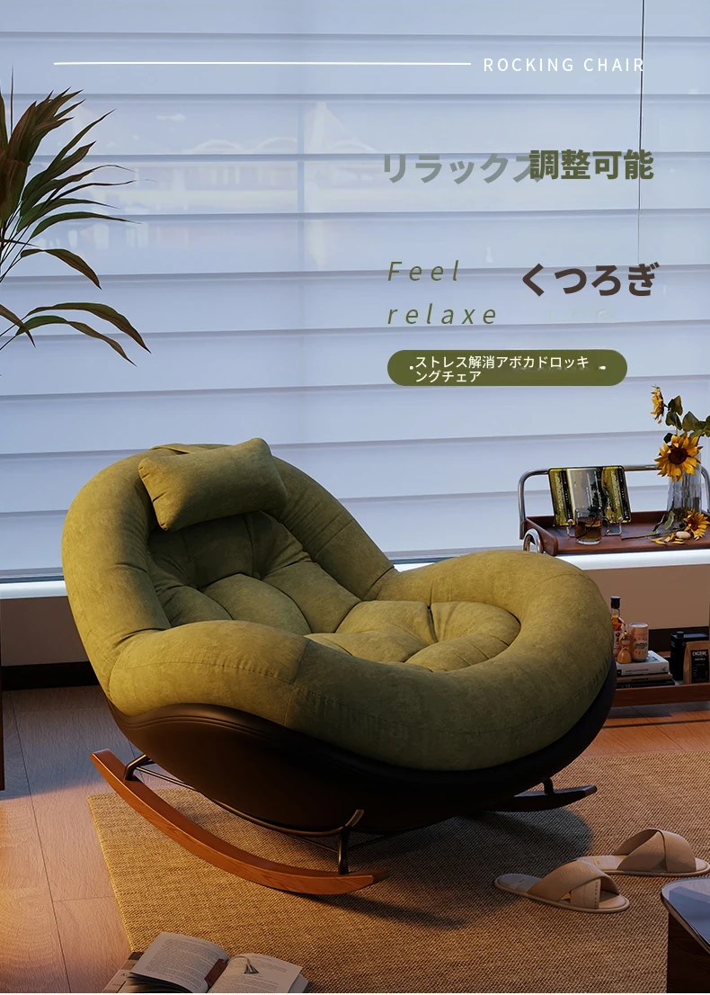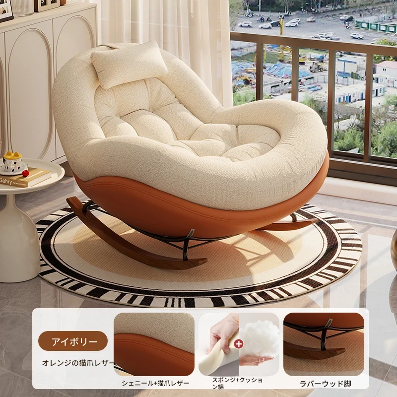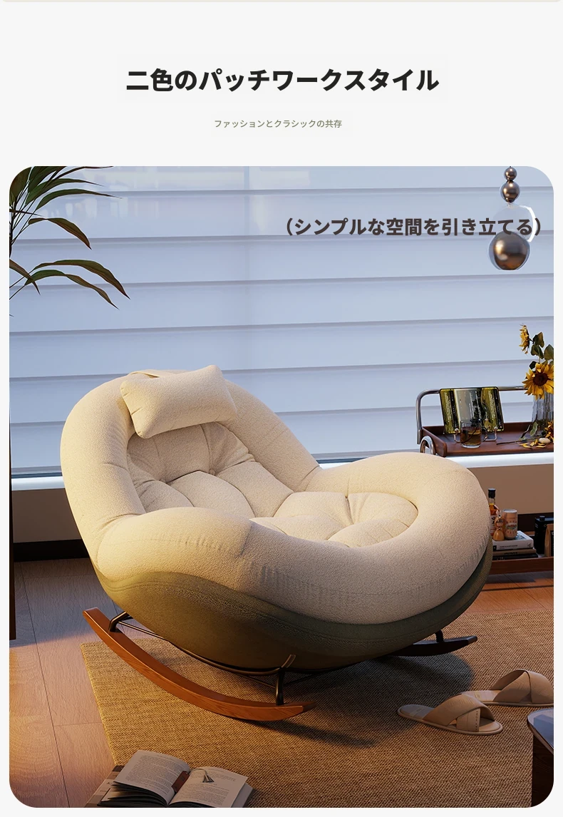 ヴィンテージ風シングルロッキングチェア、大人向け自宅用バルコニー・リビングルームに最適!リラックスと安らぎを提供する、寝転んでも使える中古風のラウンジチェア。理想的な休息スペースを手に入れよう!