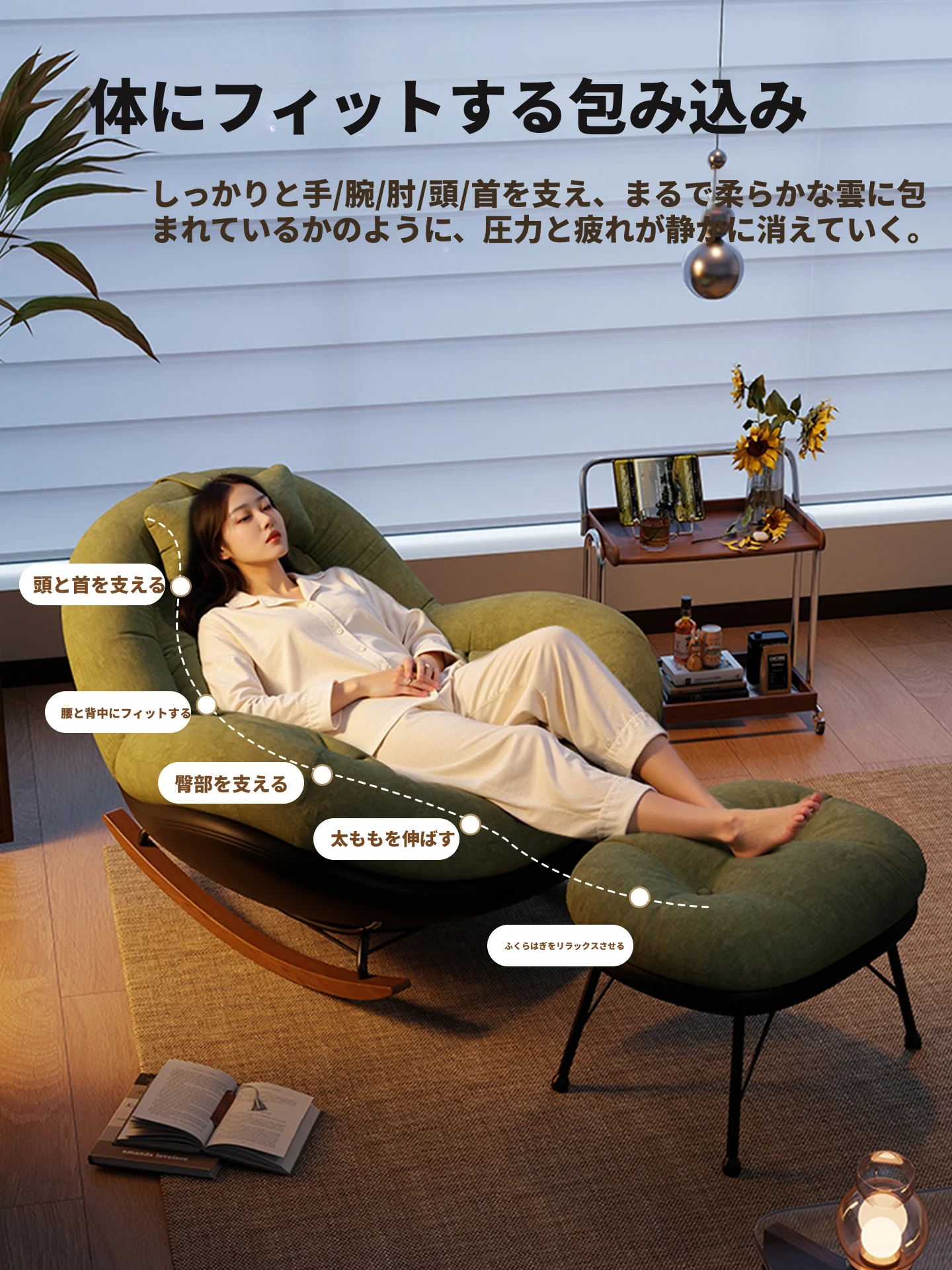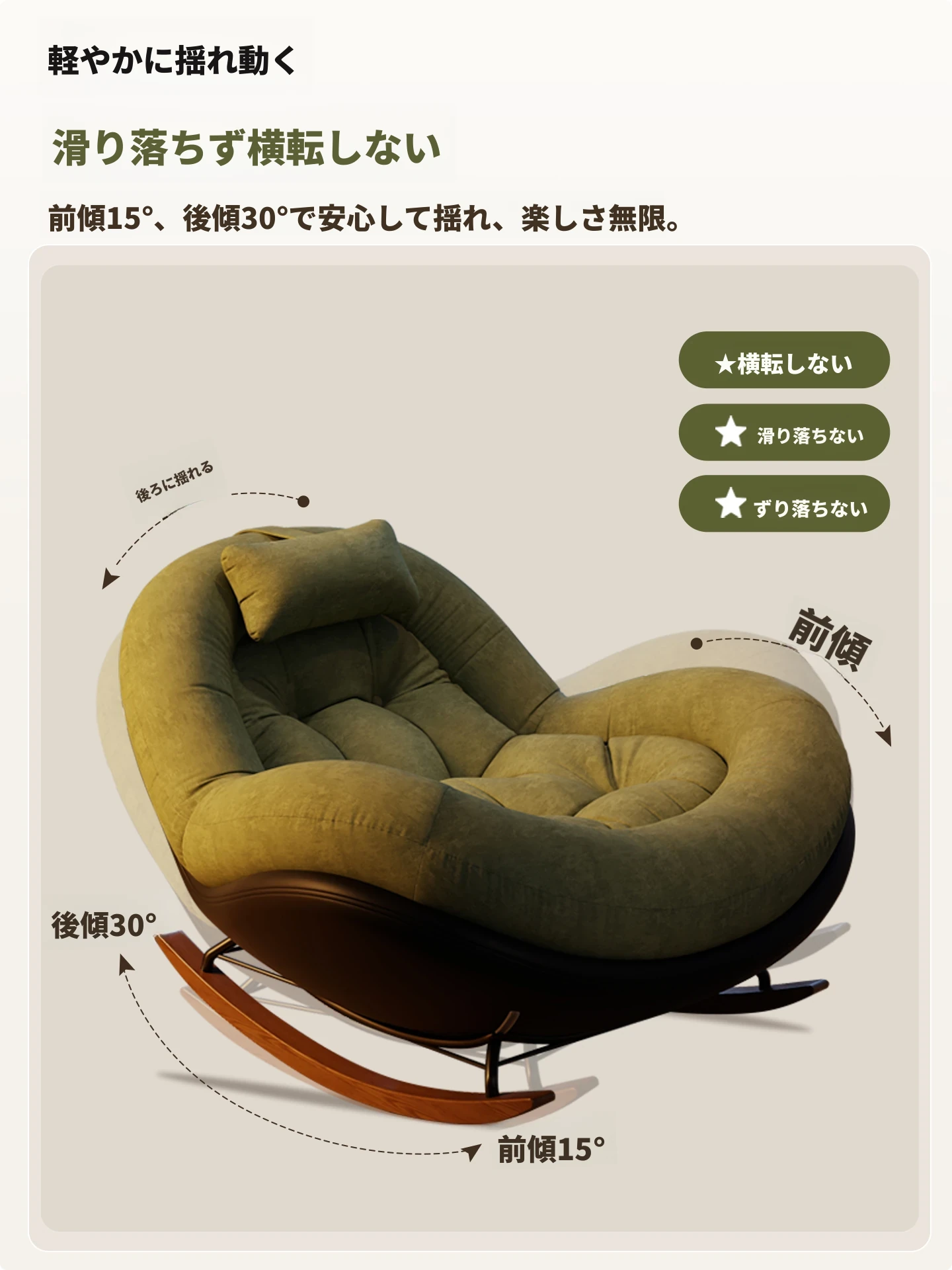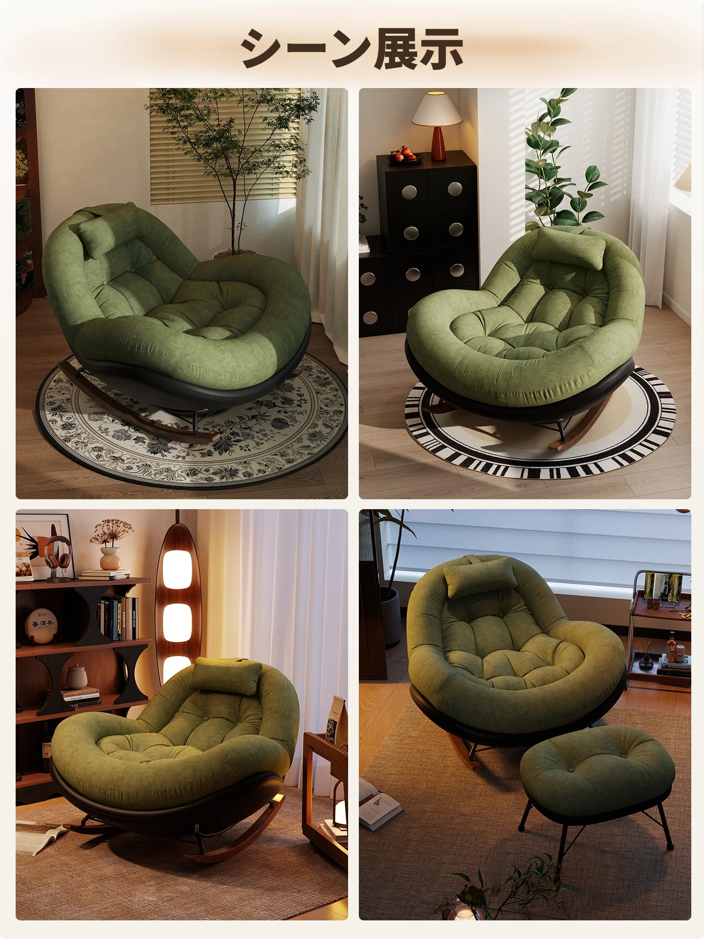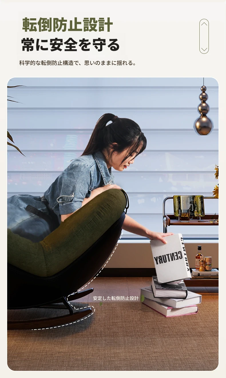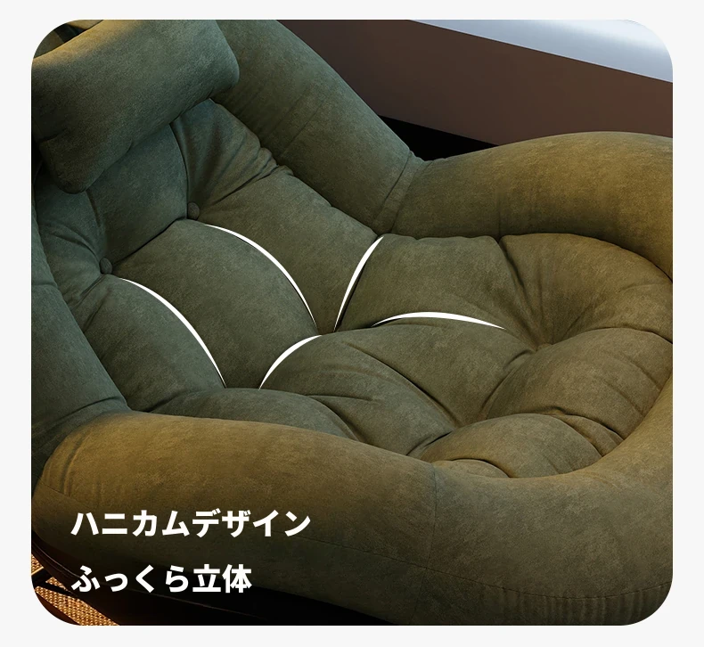 ヴィンテージ風シングルロッキングチェア、大人向け自宅用バルコニー・リビングルームに最適!リラックスと安らぎを提供する、寝転んでも使える中古風のラウンジチェア。理想的な休息スペースを手に入れよう!