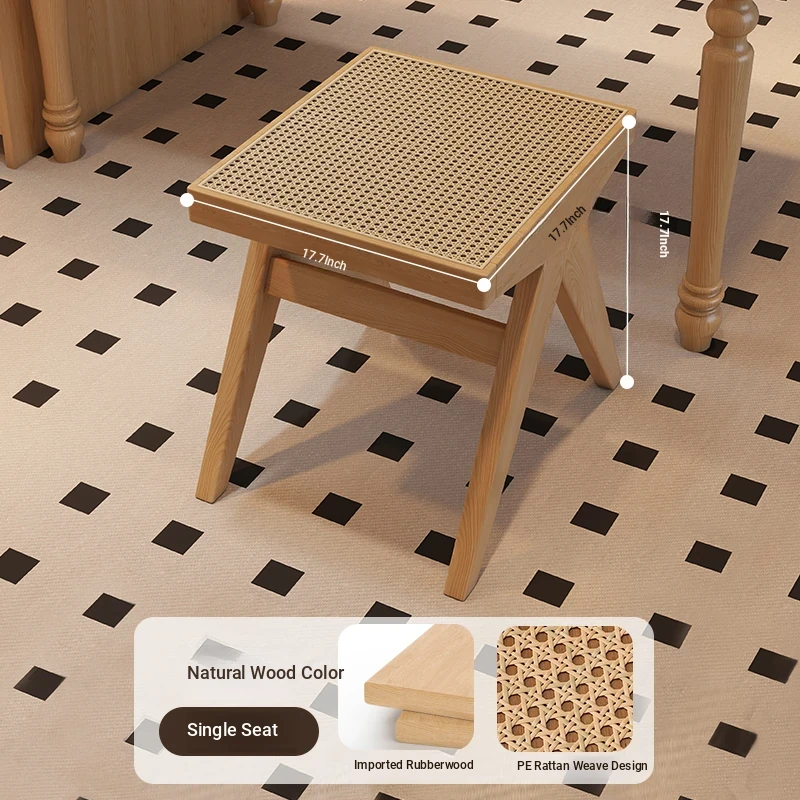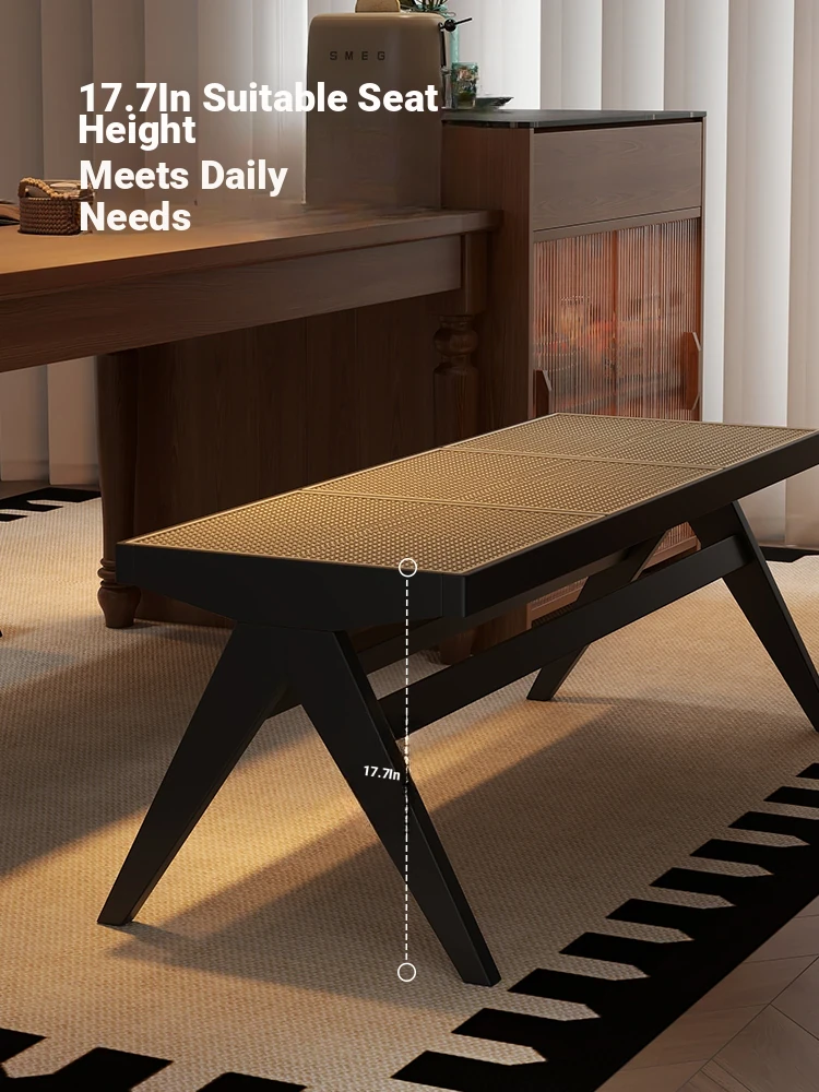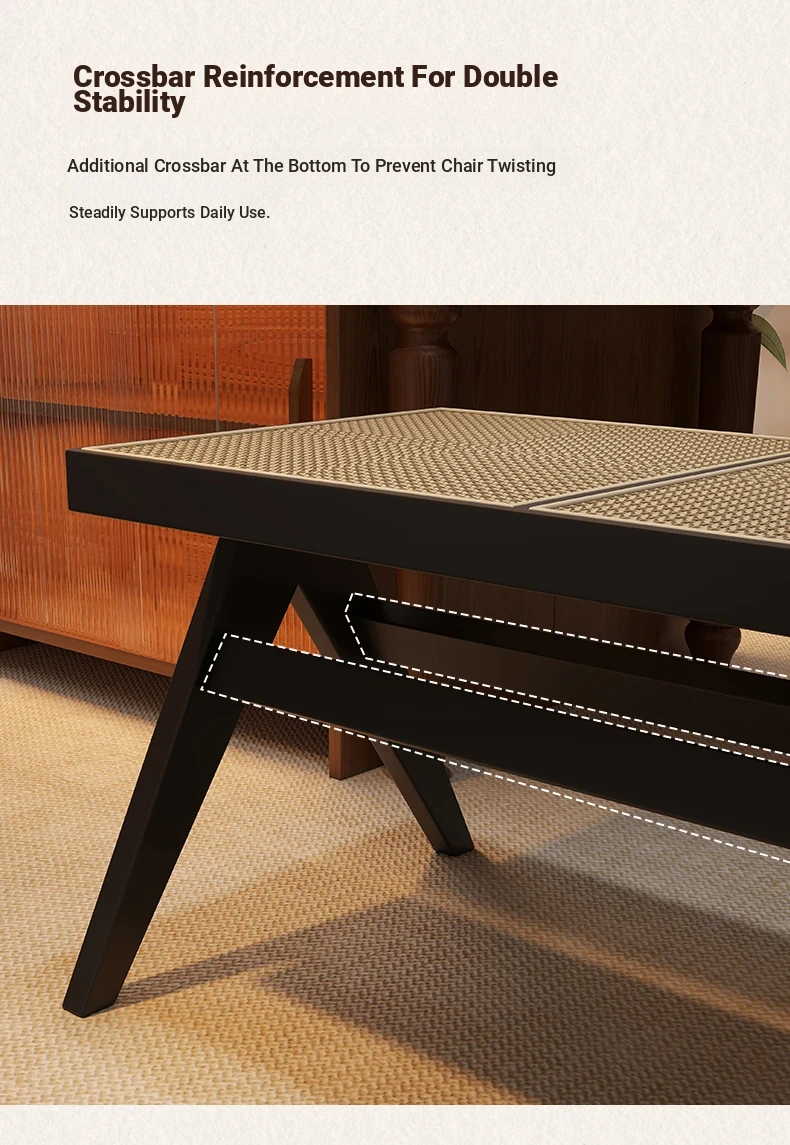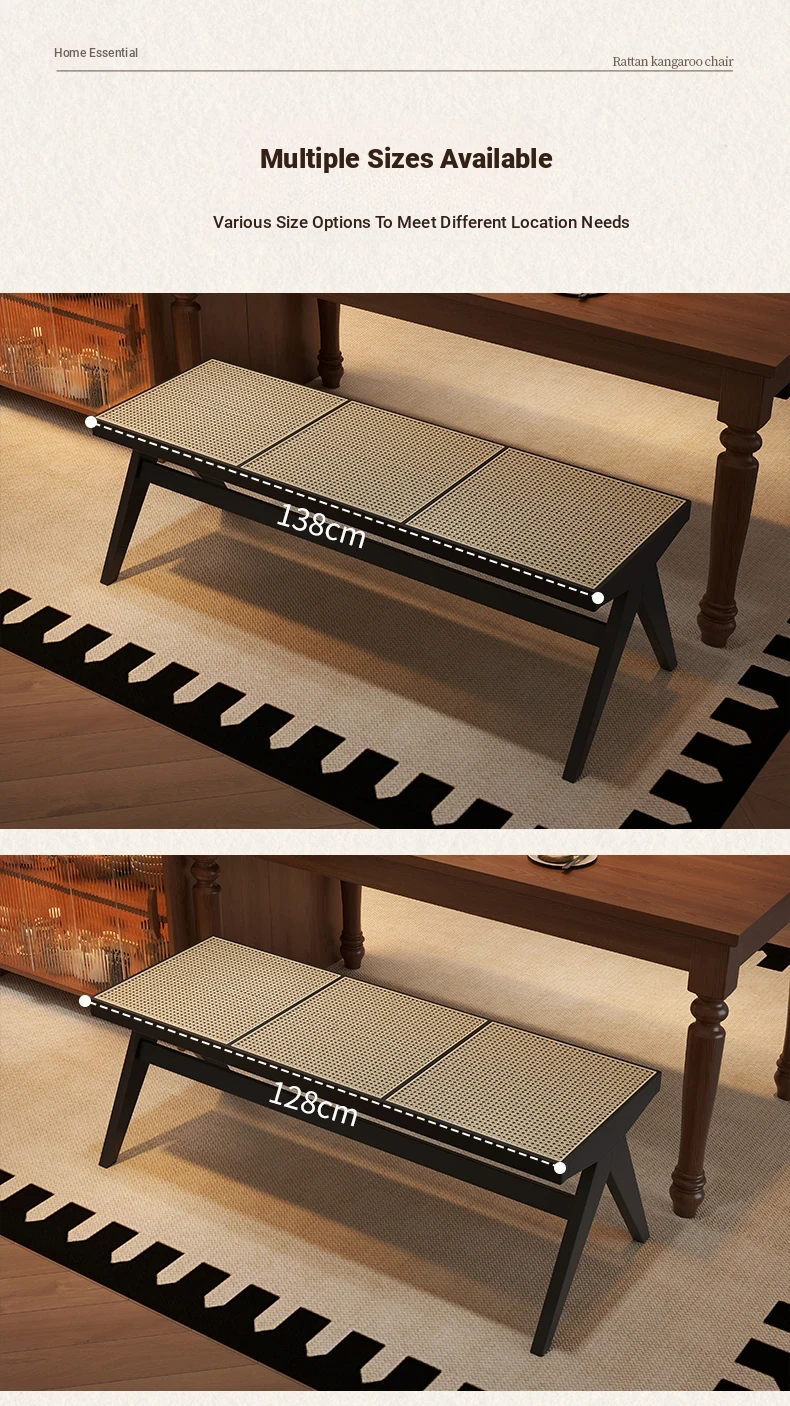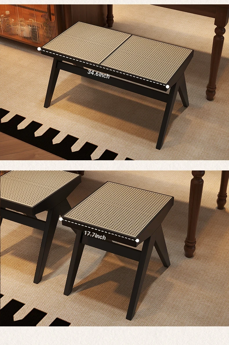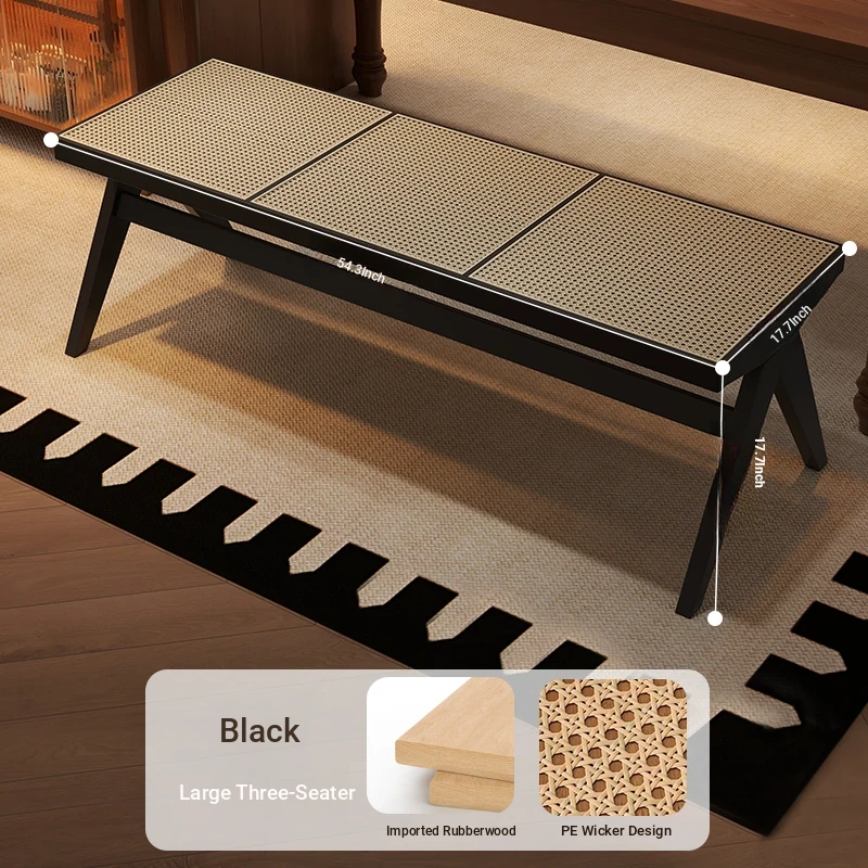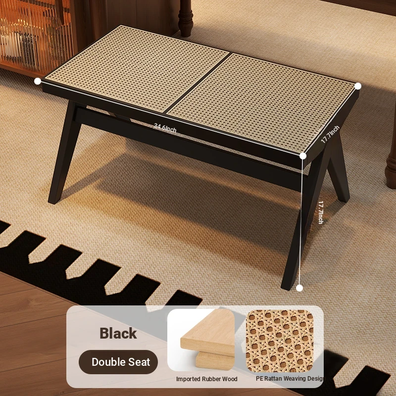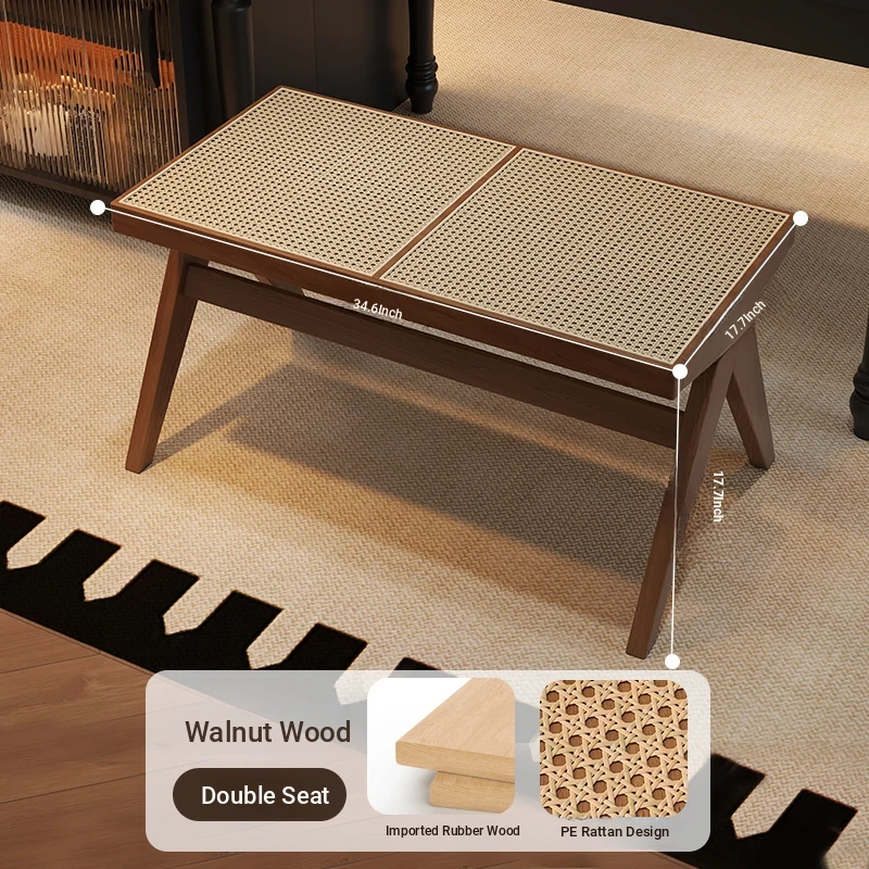 Vintage Solid Wood Rattan Long Dining Chair - Wabi-Sabi Home Stool for Entryway, Perfect for Guesthouses - Natural Wood Bench with Rattan Weaving