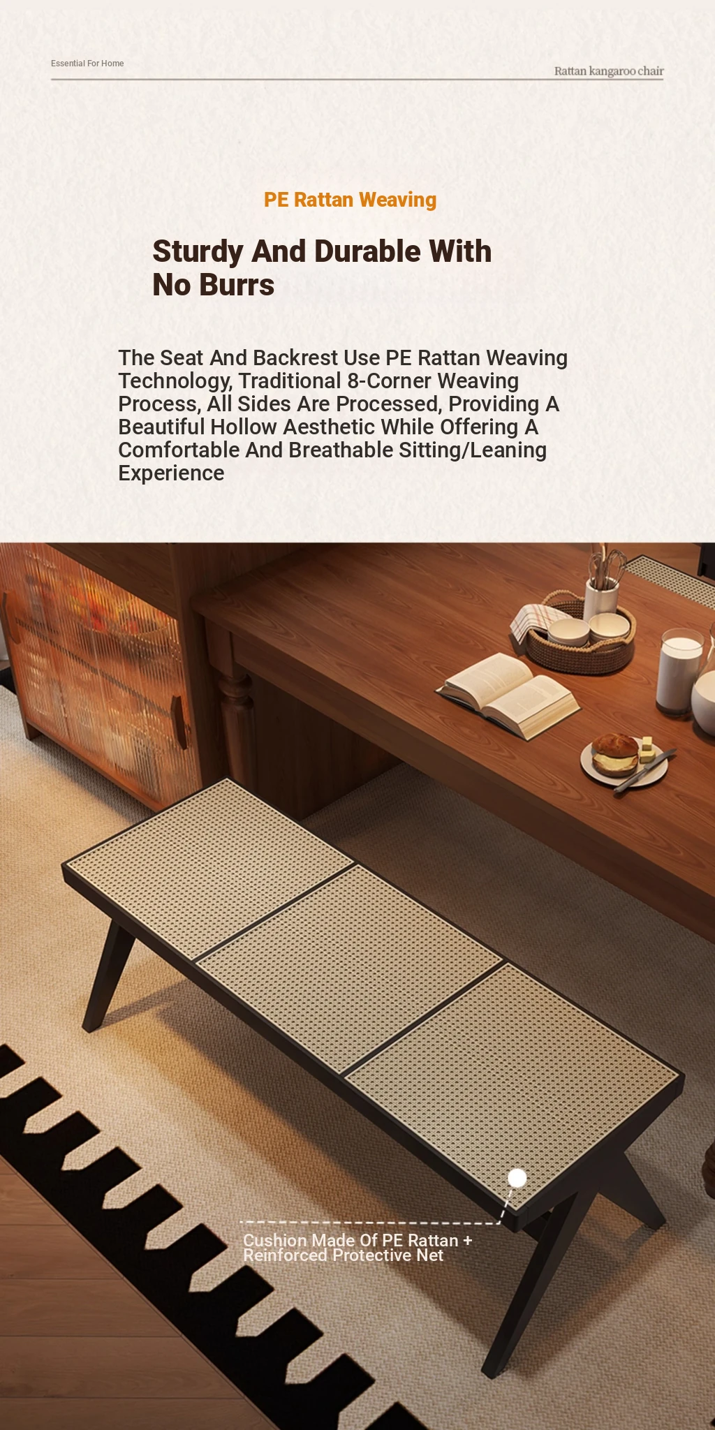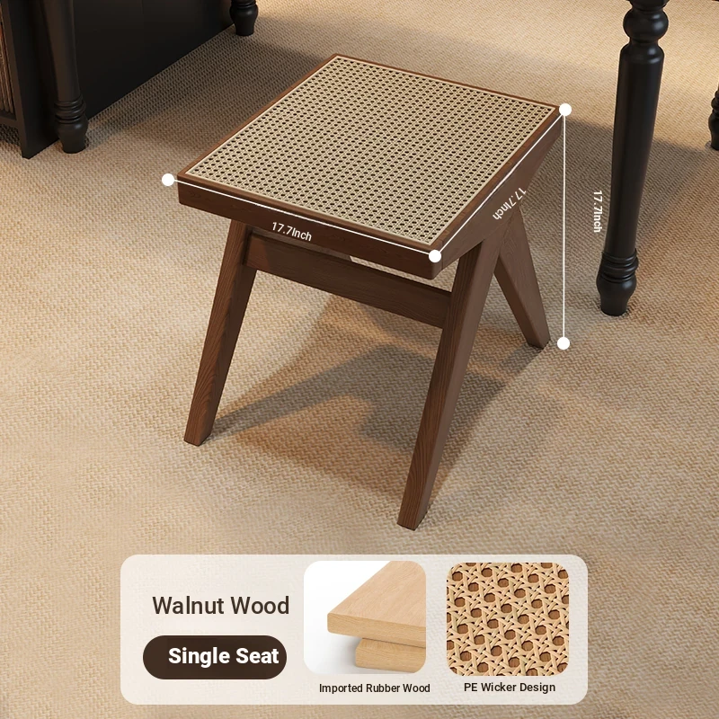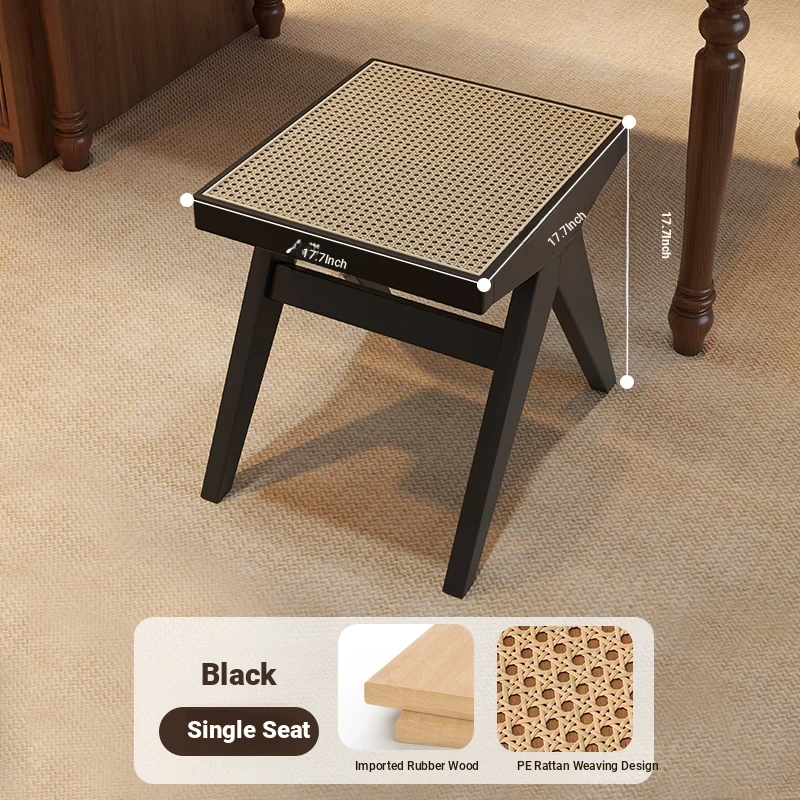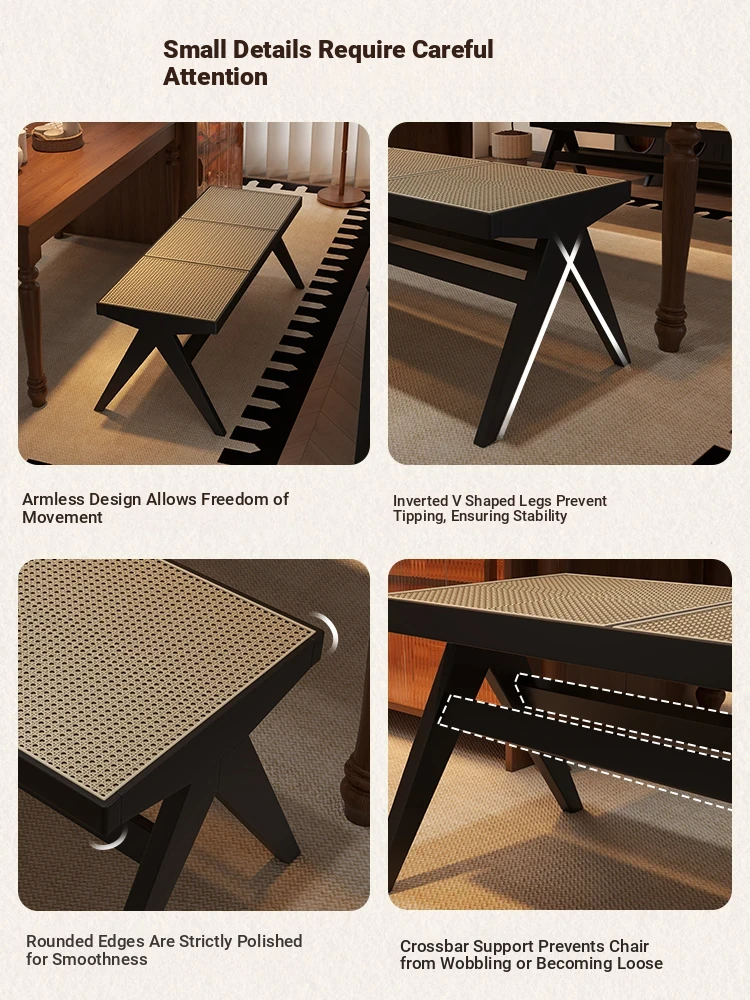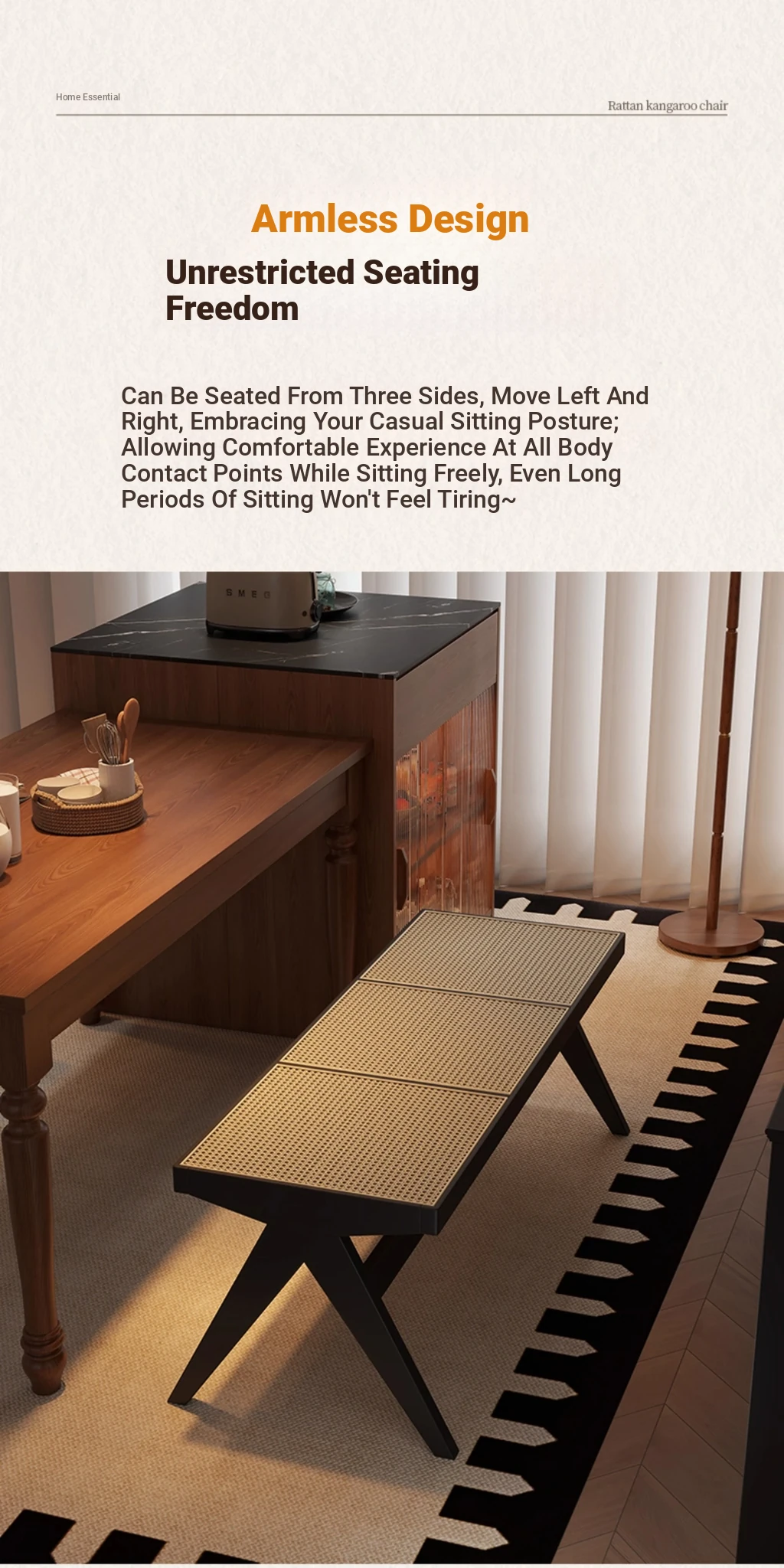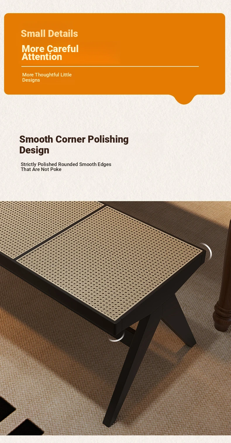 Vintage Solid Wood Rattan Long Dining Chair - Wabi-Sabi Home Stool for Entryway, Perfect for Guesthouses - Natural Wood Bench with Rattan Weaving