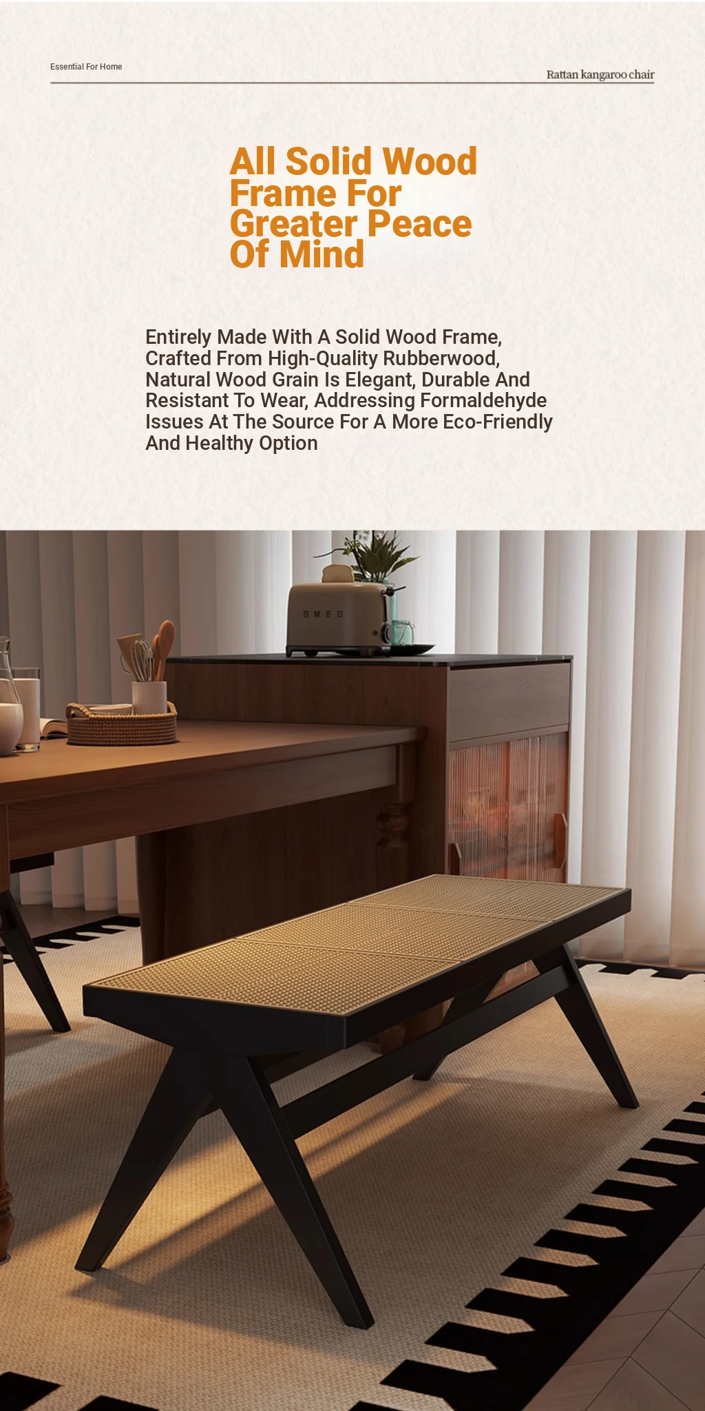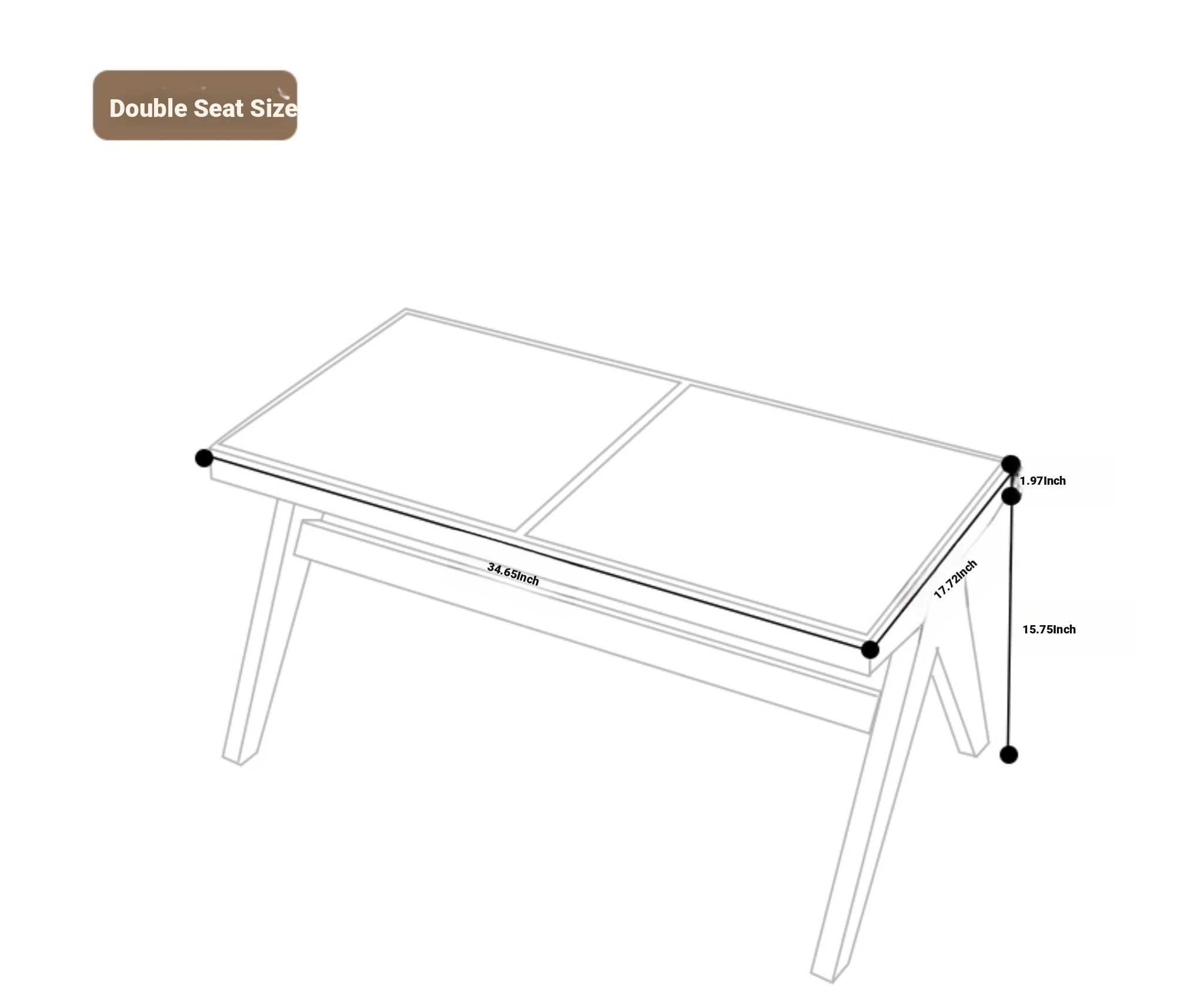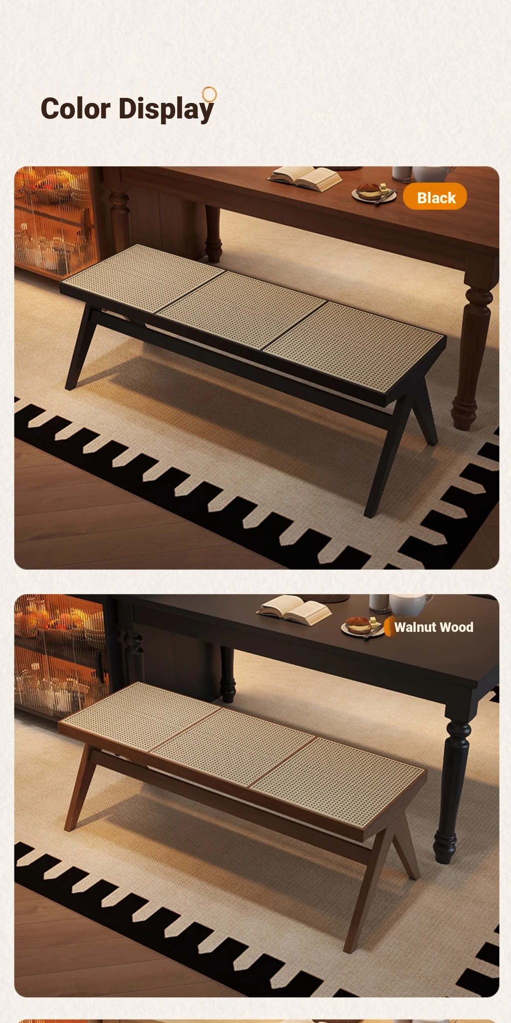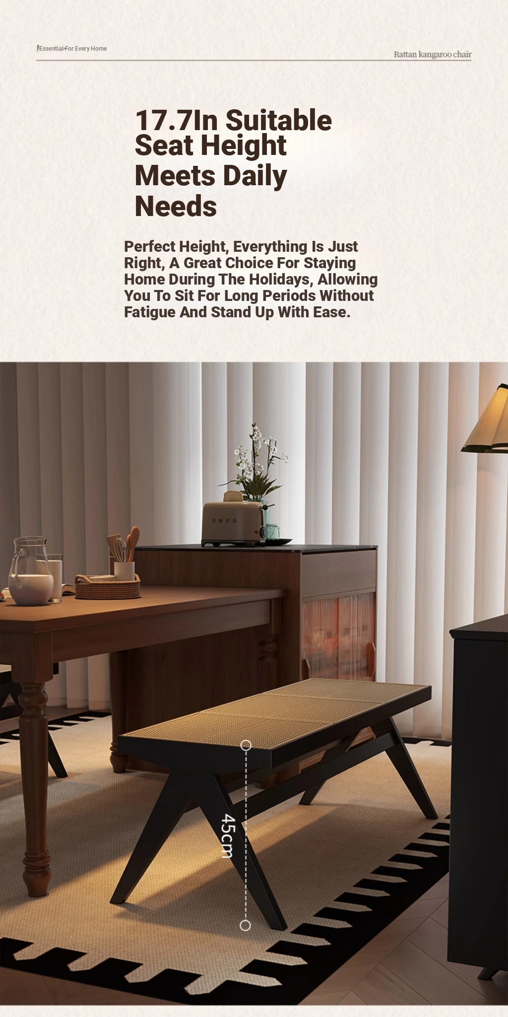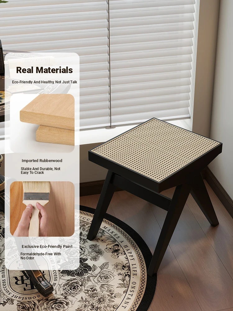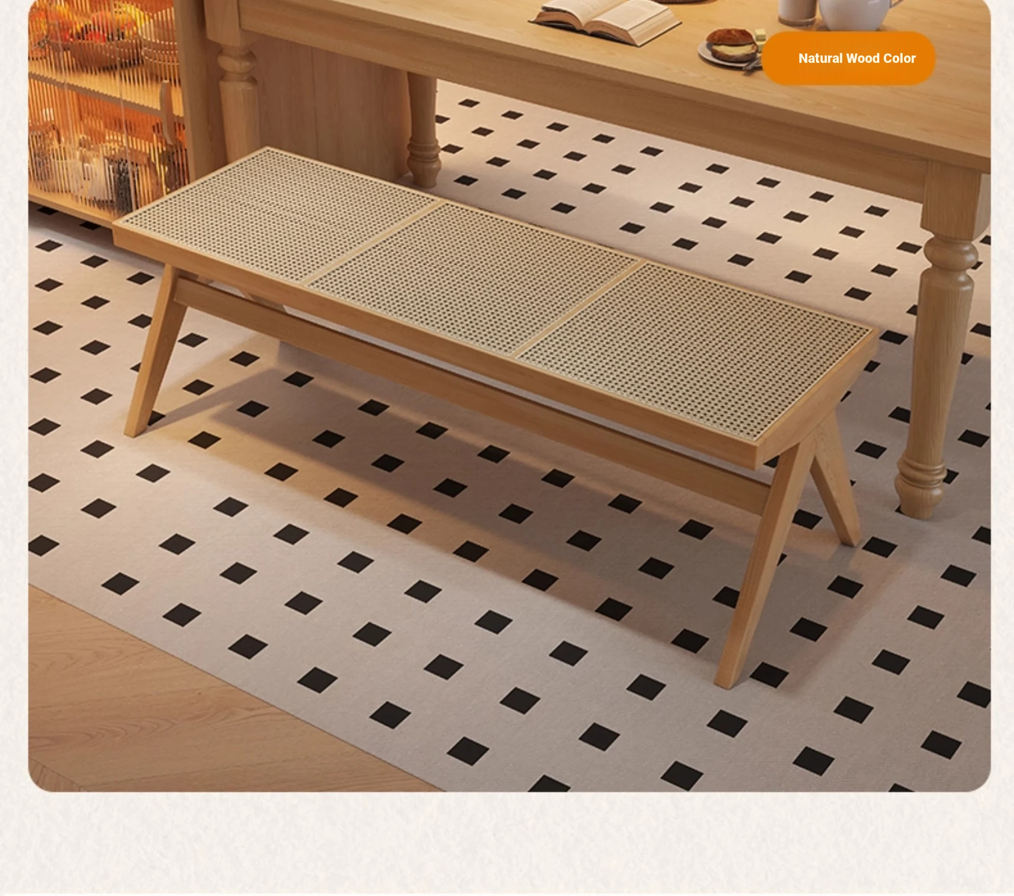 Vintage Solid Wood Rattan Long Dining Chair - Wabi-Sabi Home Stool for Entryway, Perfect for Guesthouses - Natural Wood Bench with Rattan Weaving