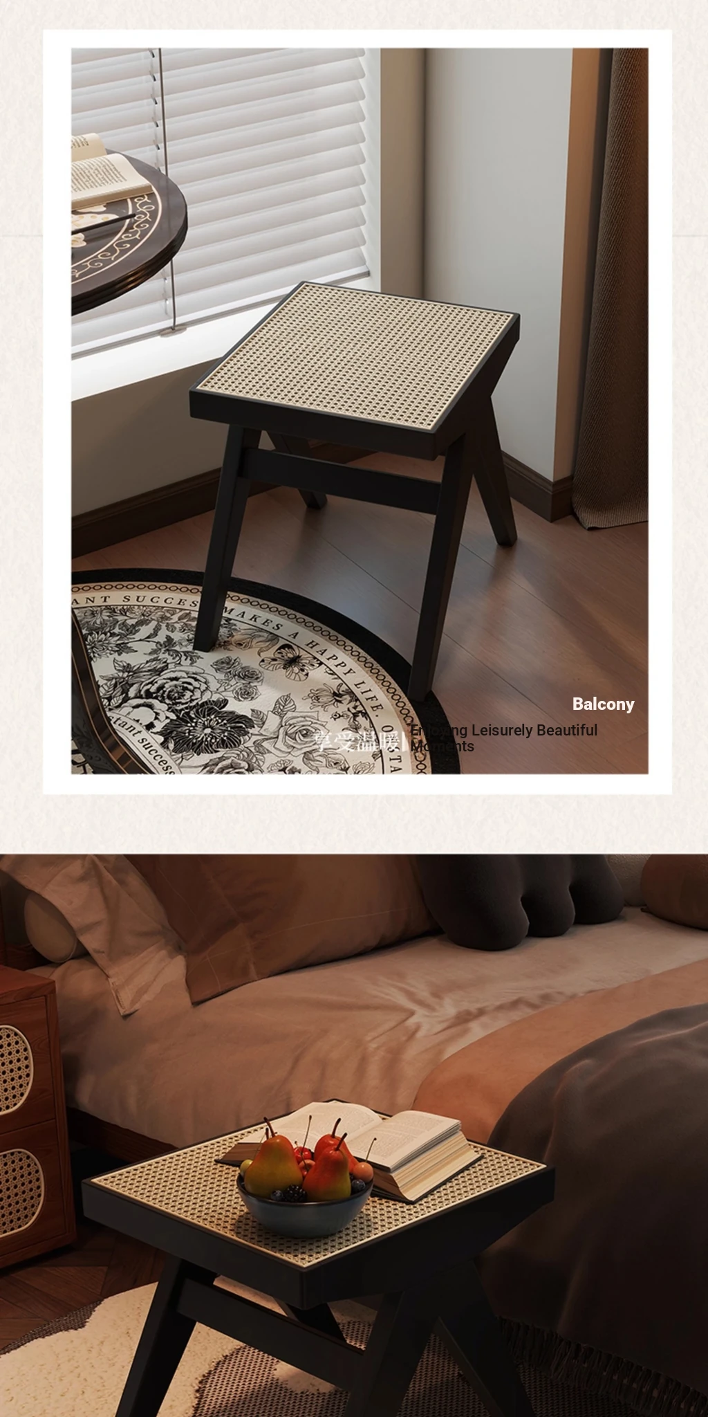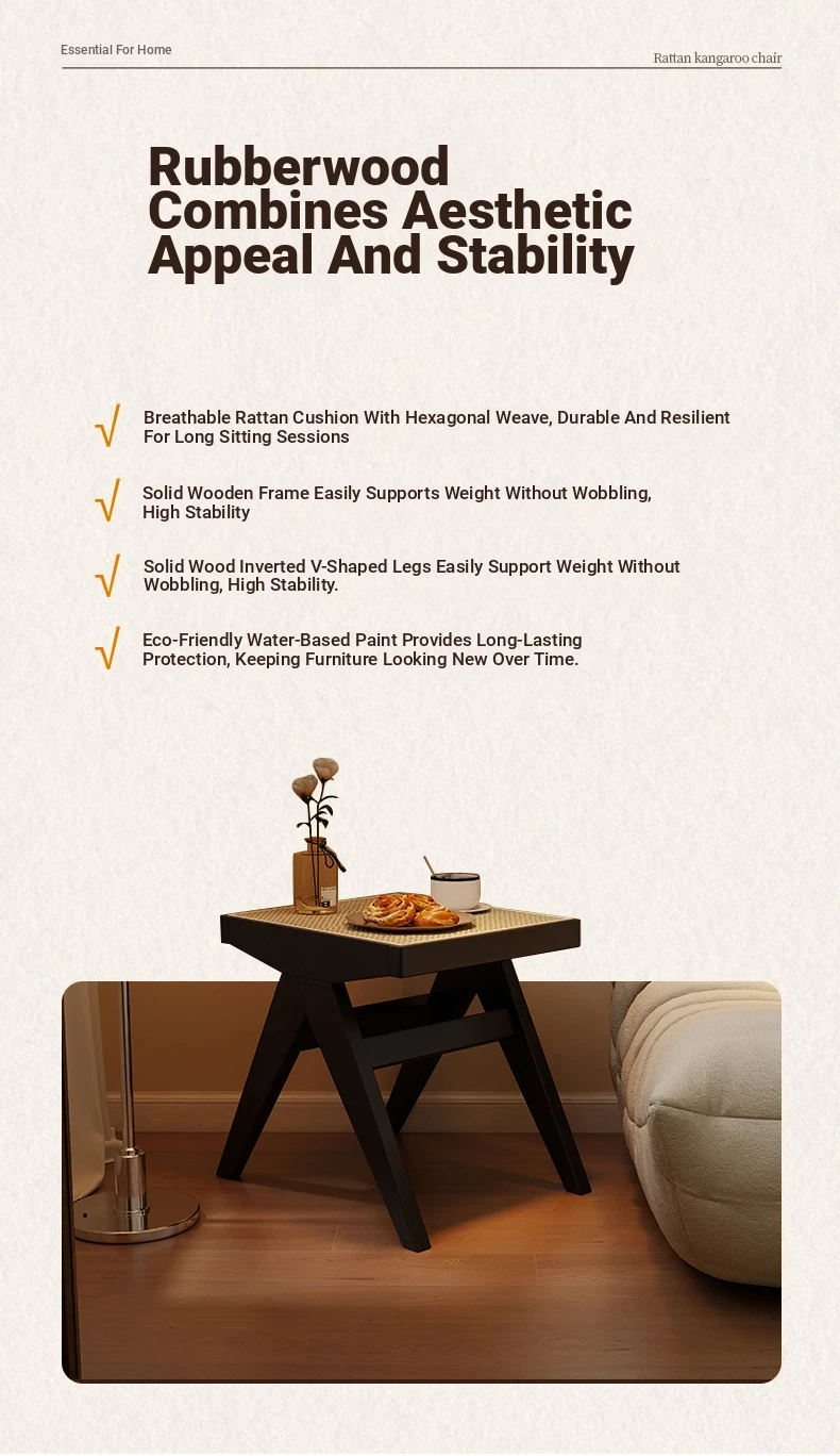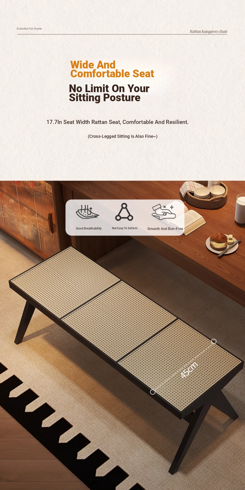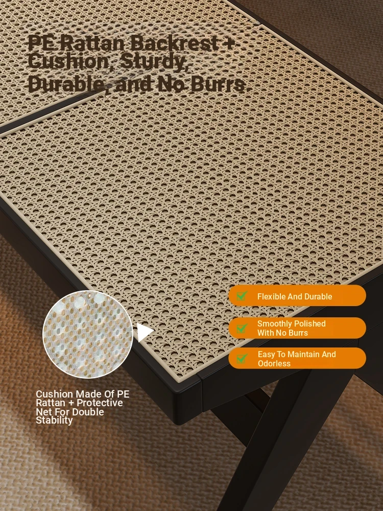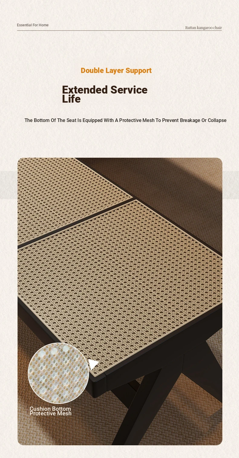 Vintage Solid Wood Rattan Long Dining Chair - Wabi-Sabi Home Stool for Entryway, Perfect for Guesthouses - Natural Wood Bench with Rattan Weaving