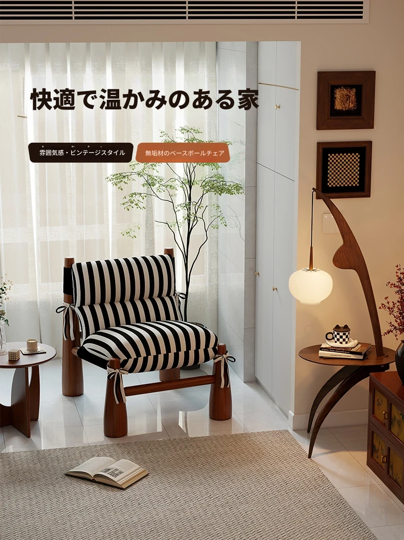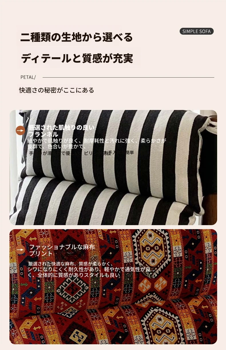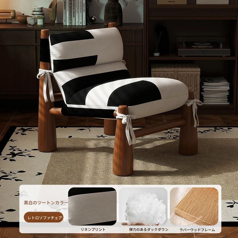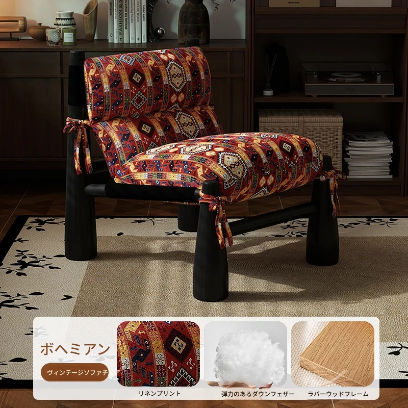 中古風の無垢材ソファチェア デザイナーのバルボアチェア ボヘミアンスタイル 家庭用リビング 布製シングルレジャーチェアで快適なひとときを!