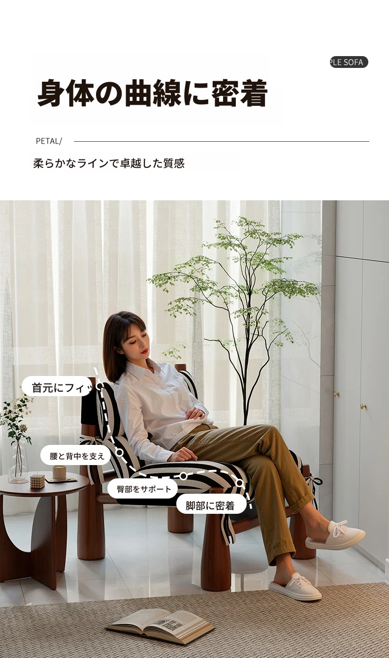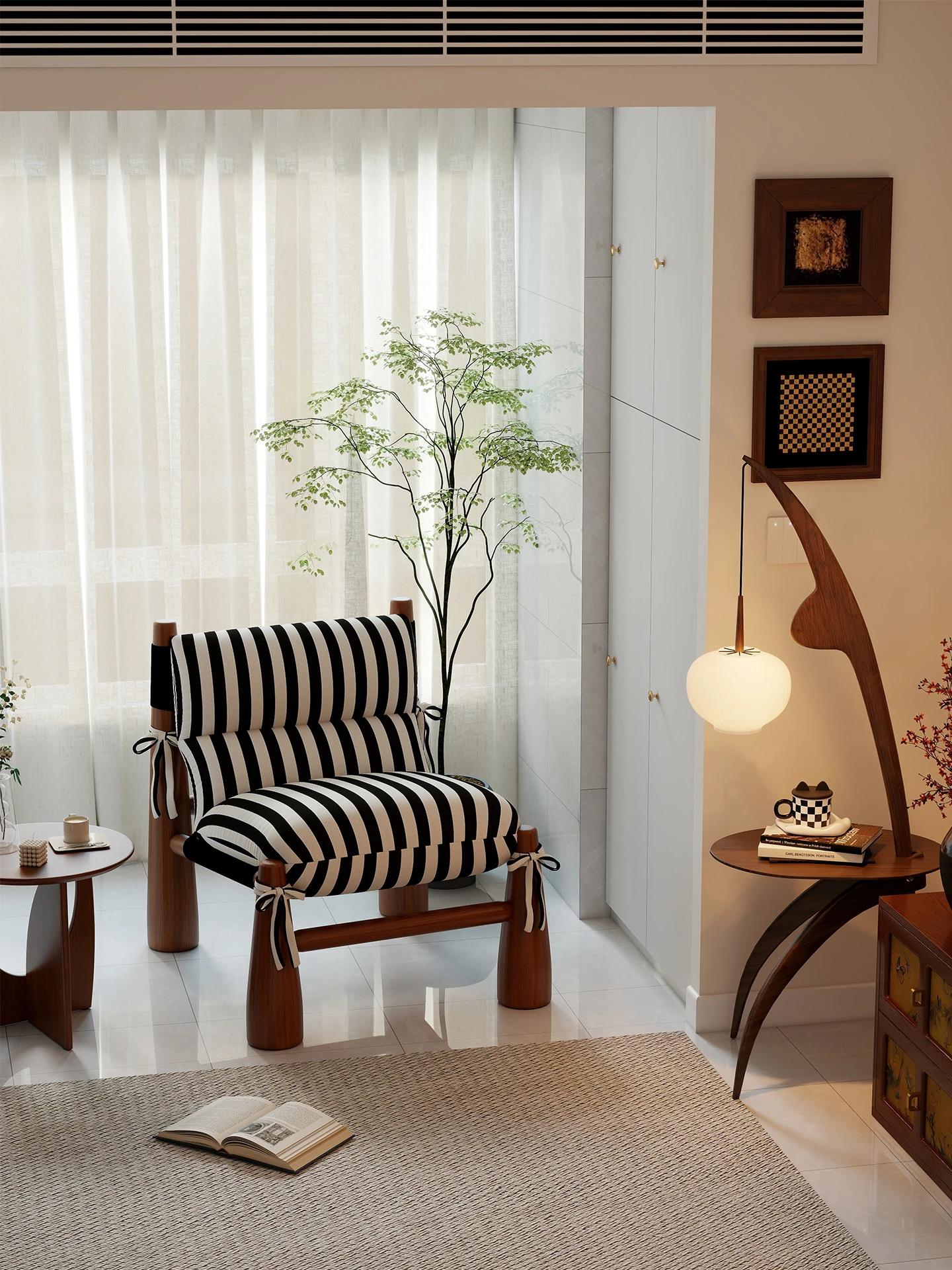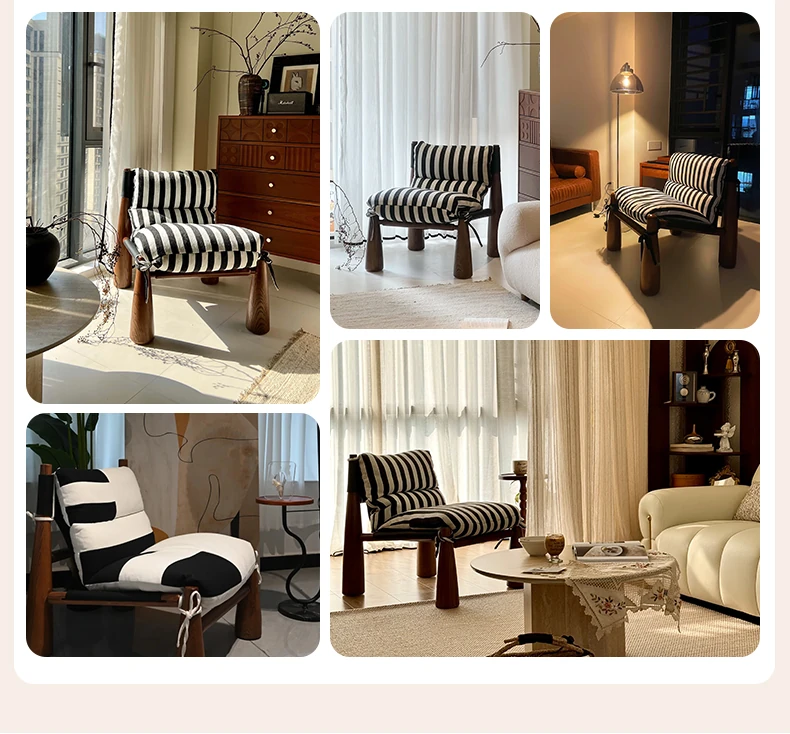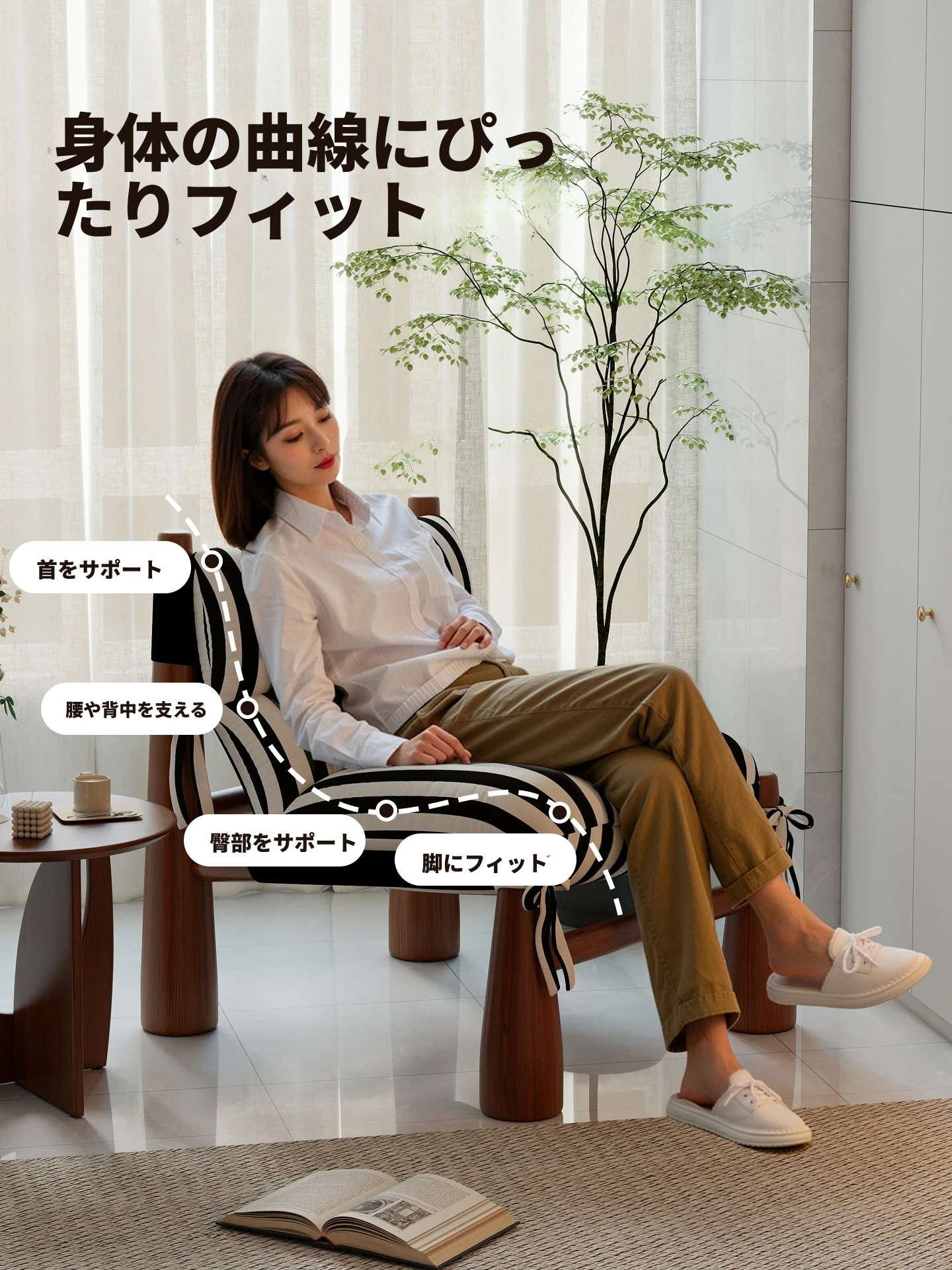 中古風の無垢材ソファチェア デザイナーのバルボアチェア ボヘミアンスタイル 家庭用リビング 布製シングルレジャーチェアで快適なひとときを!