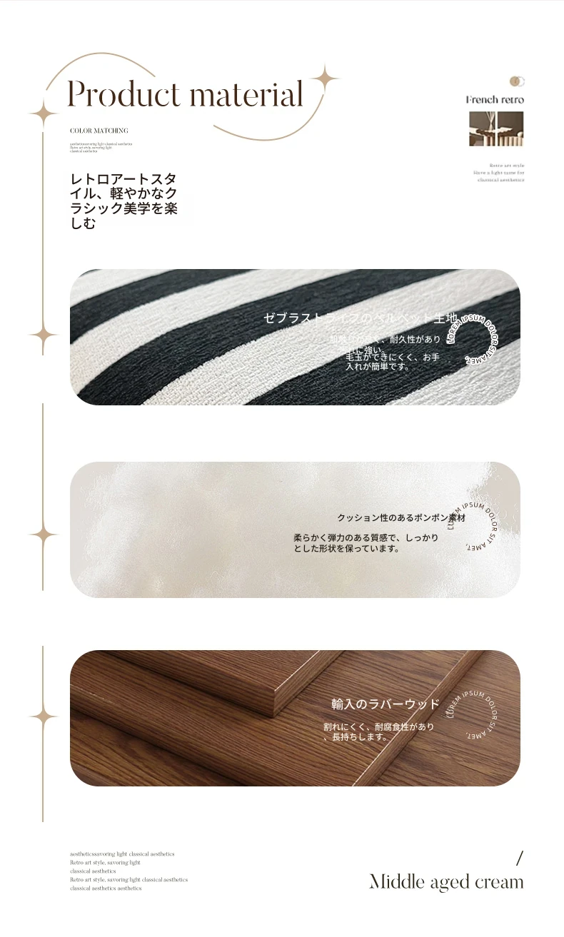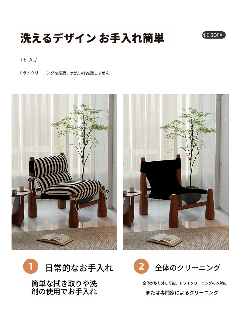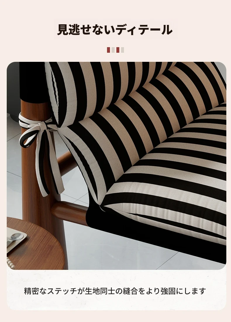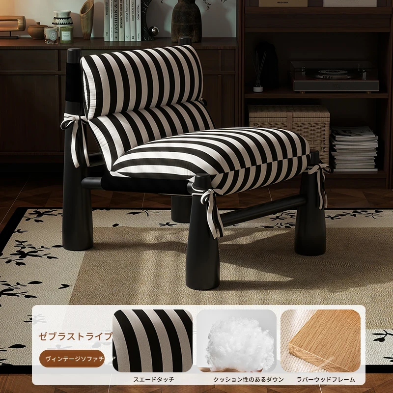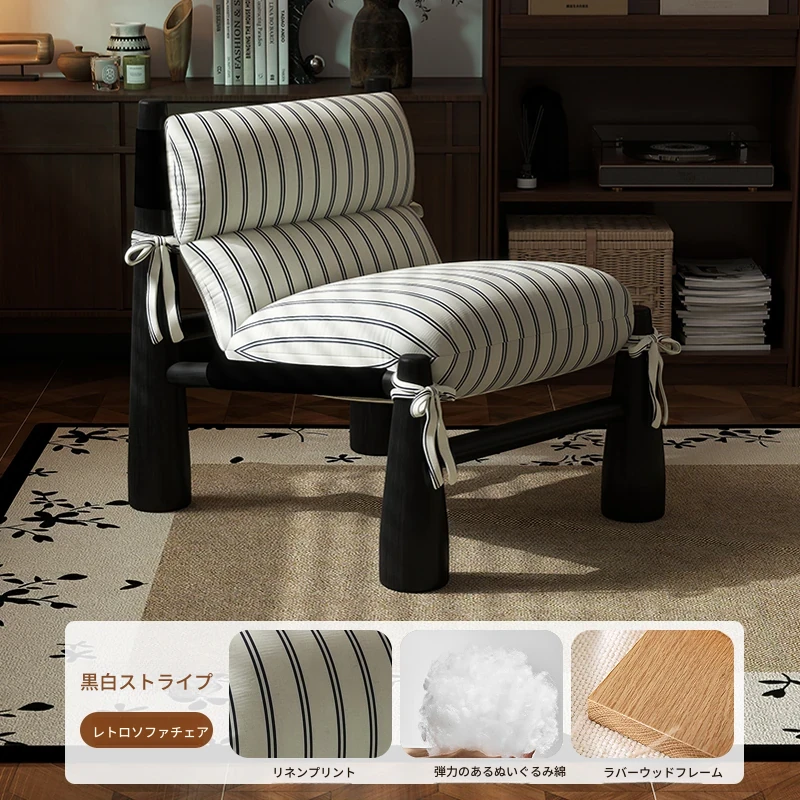 黒白ストライプ【快適な麻布】-黒いソファ脚