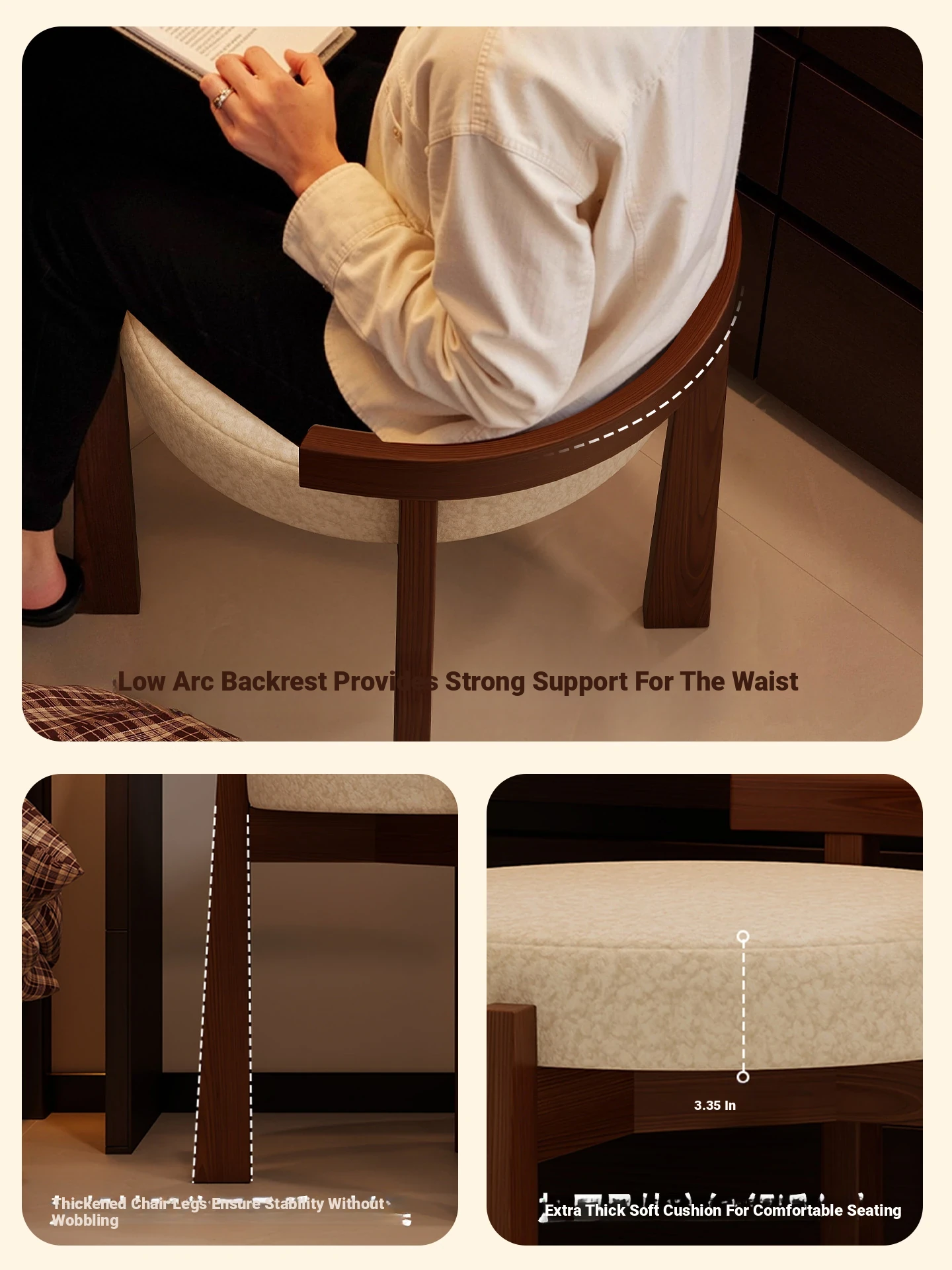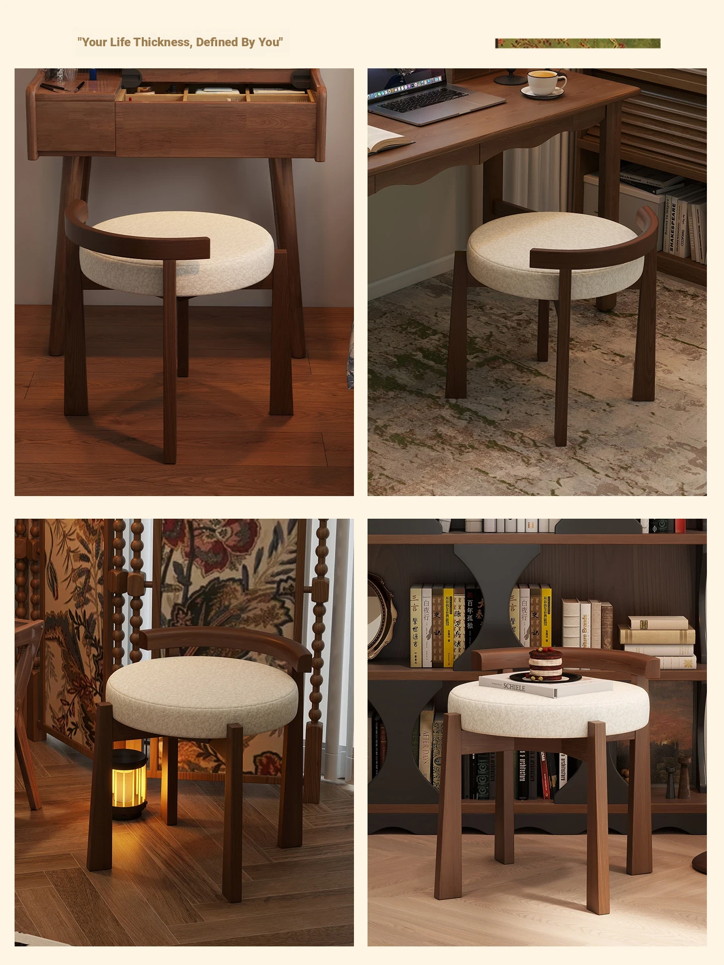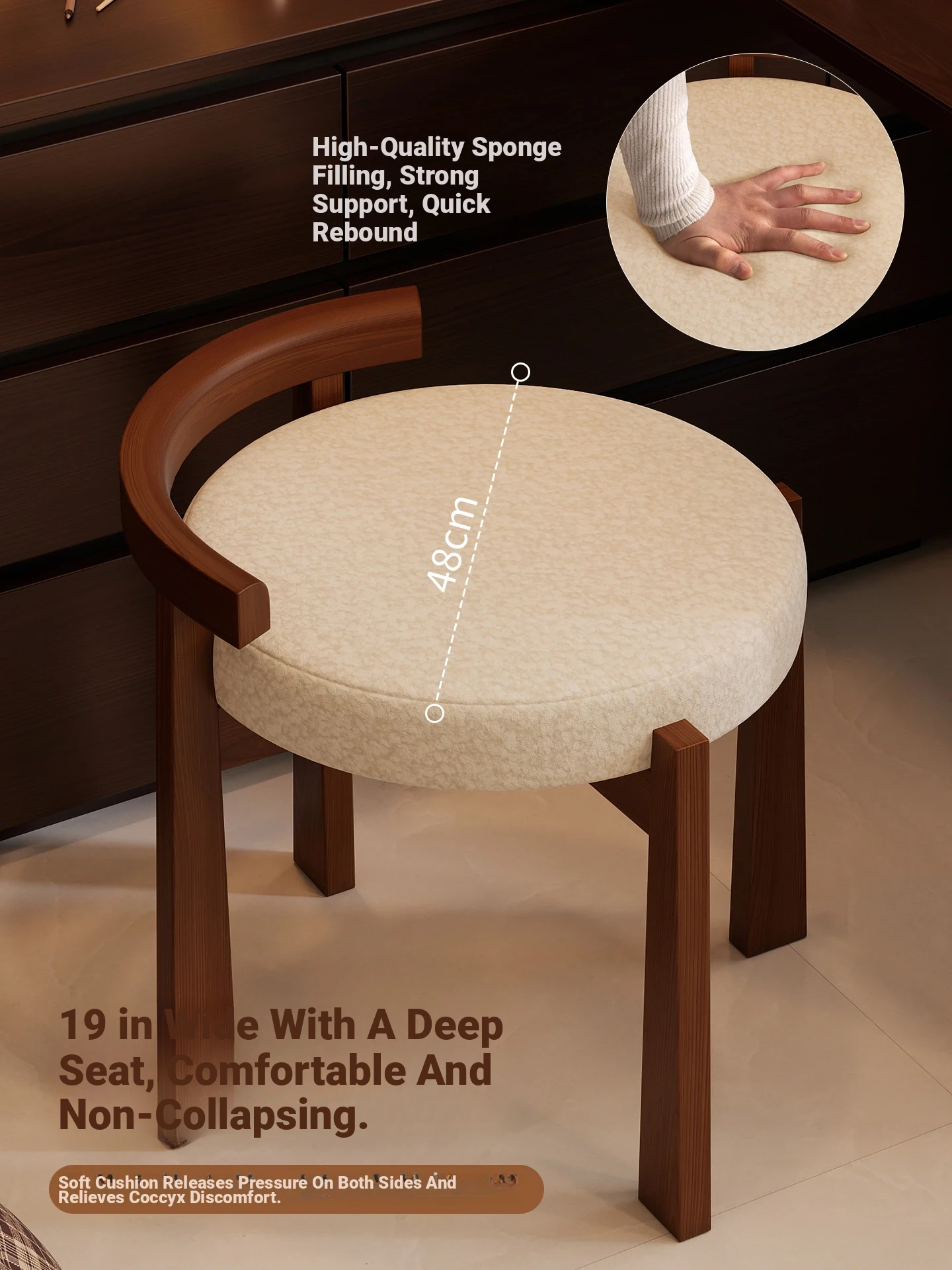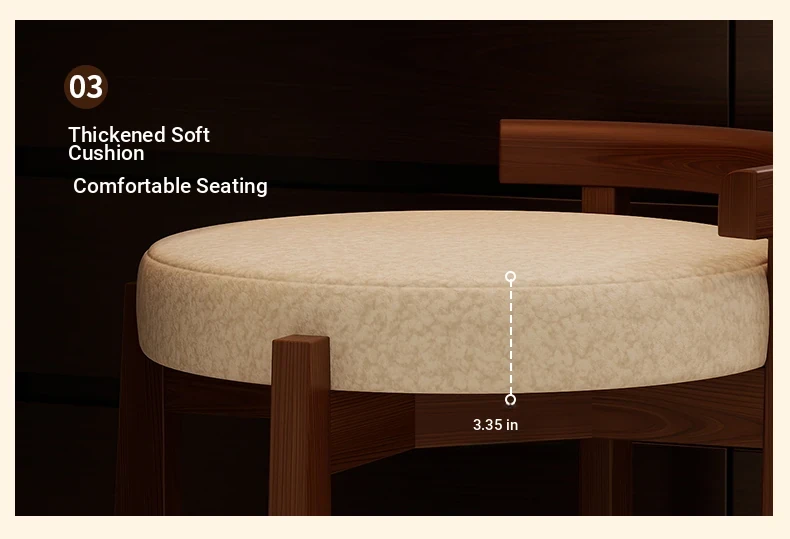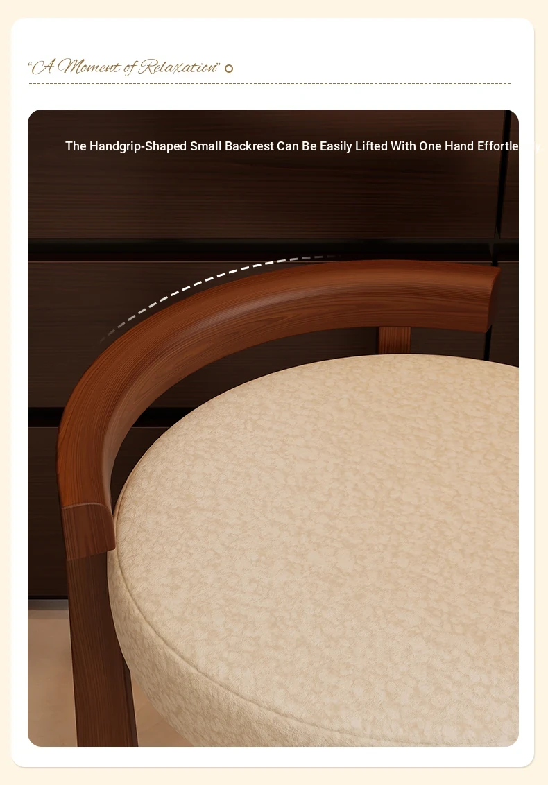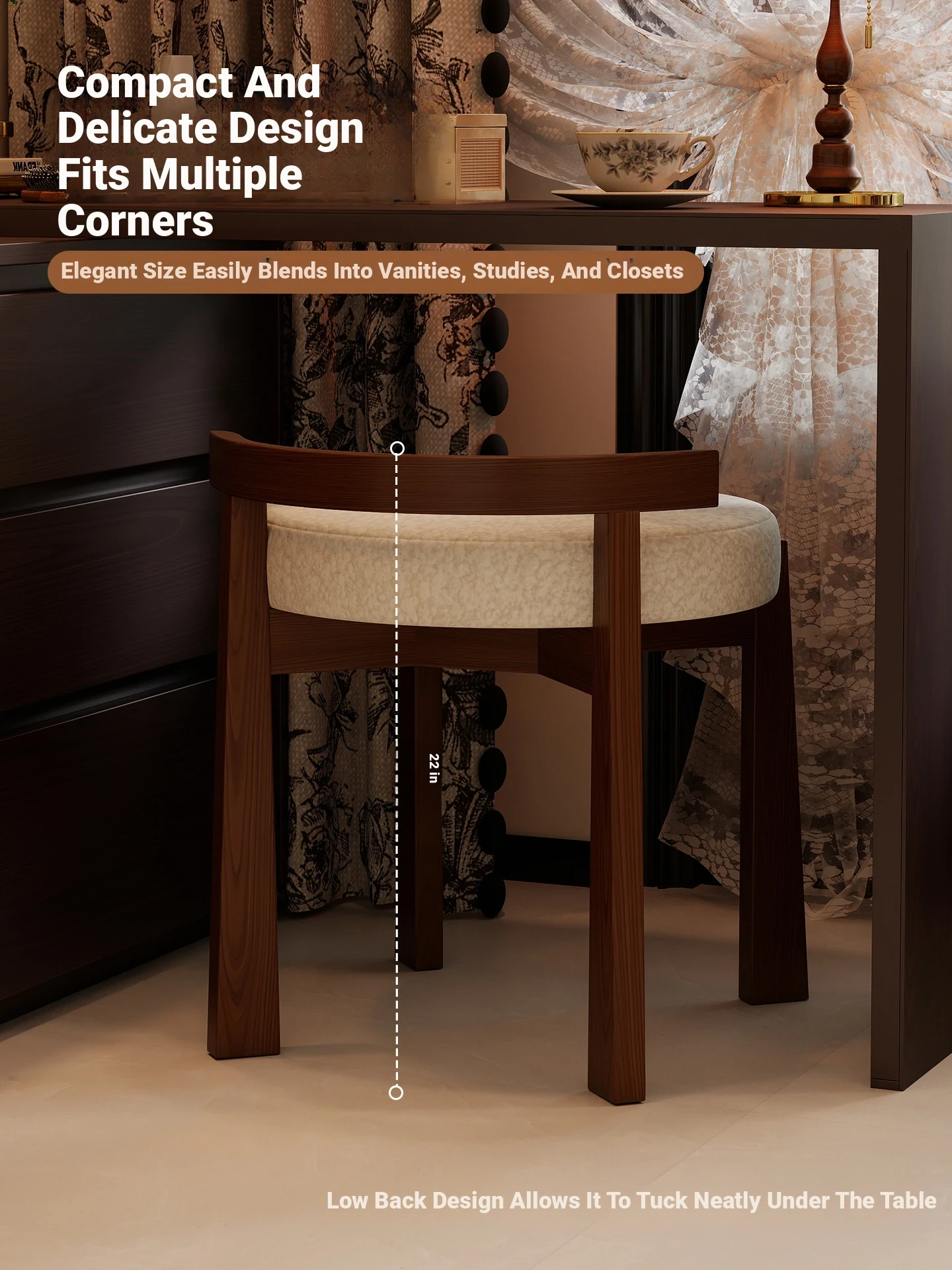 Vintage Solid Wood Vanity Stool for Bedroom - Plush Lambswool Upholstered Makeup Chair for Dressing Table and Walk-in Closet