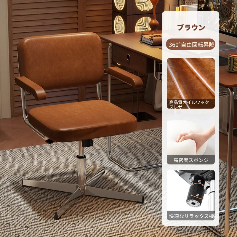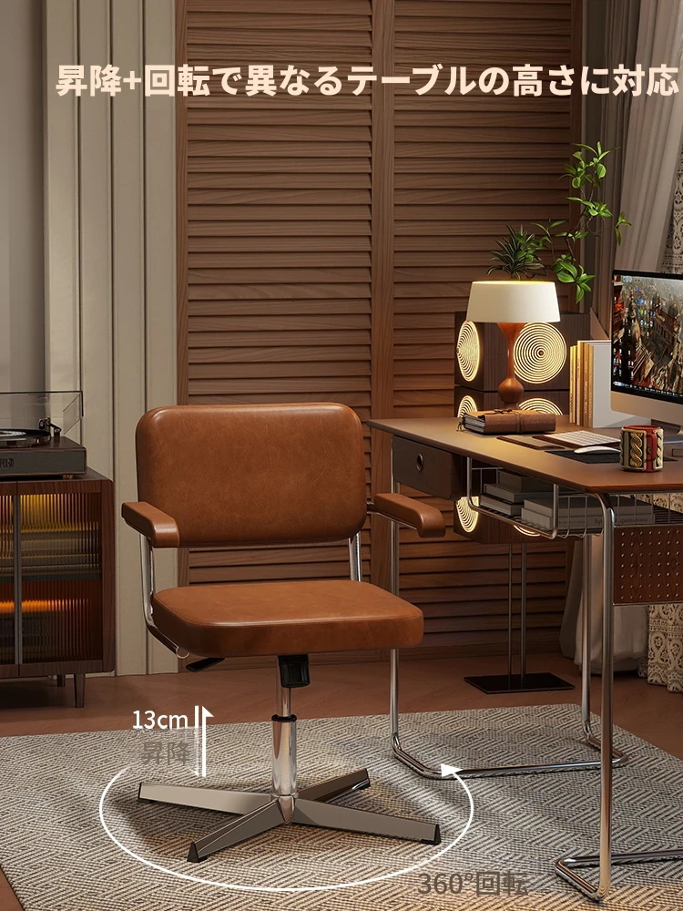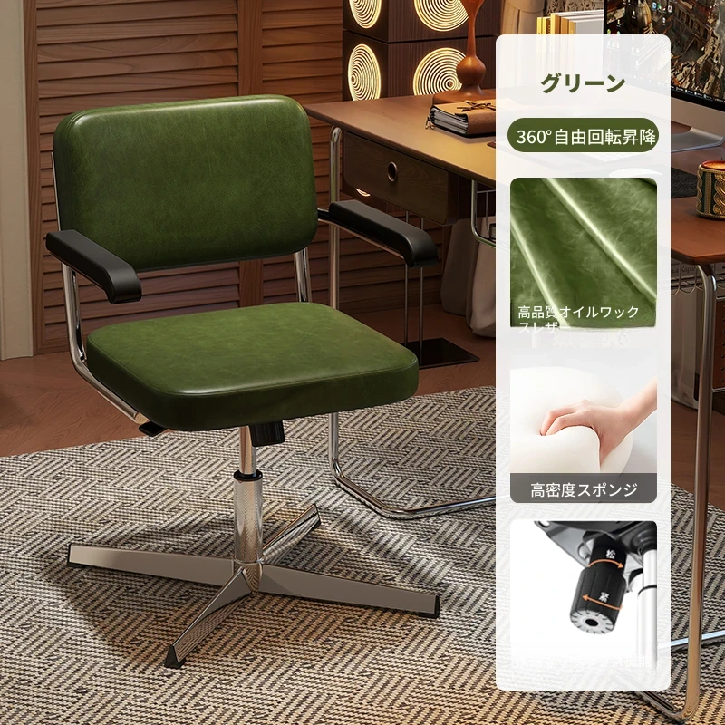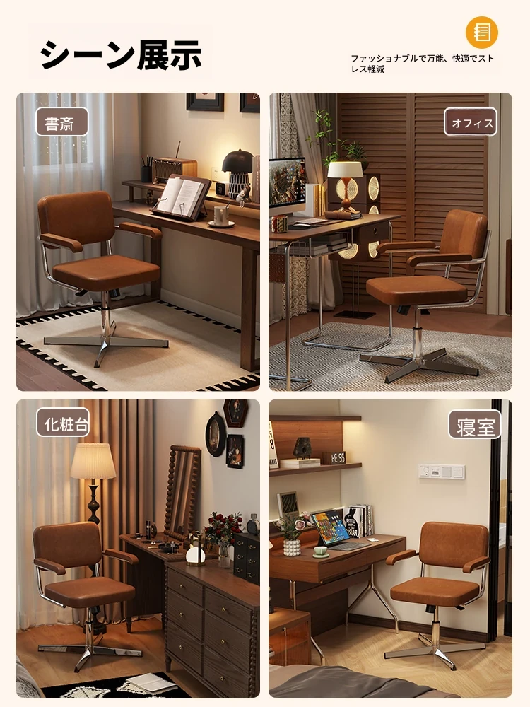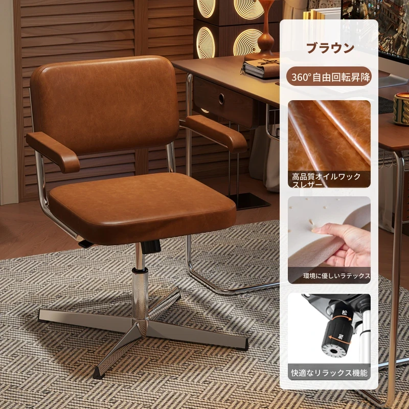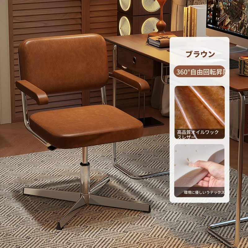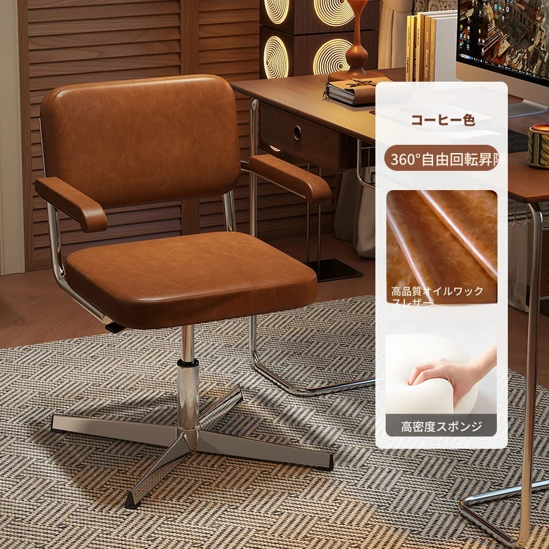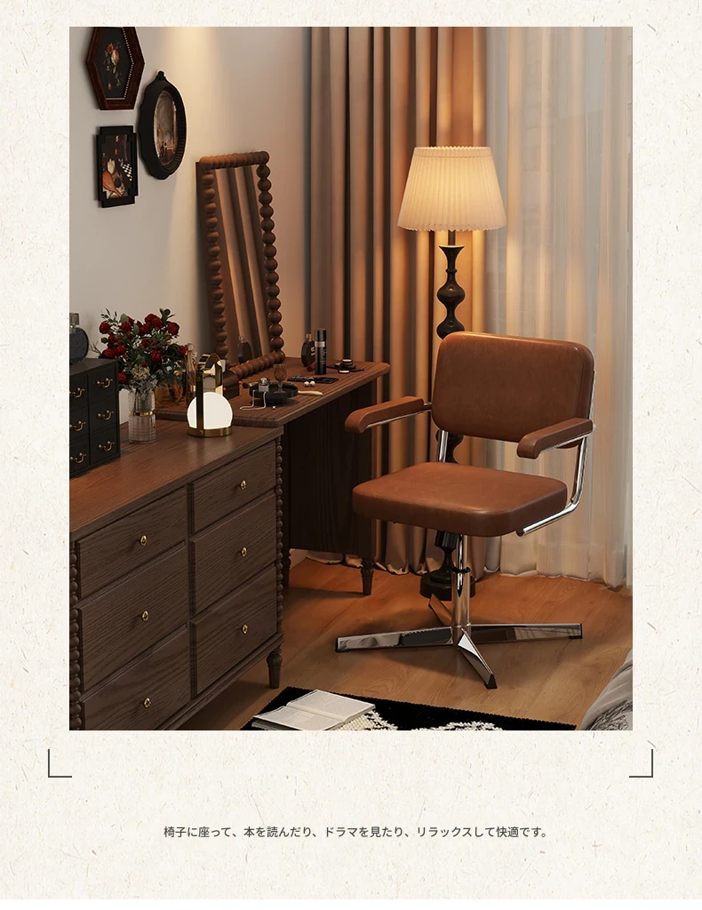 中古風のおしゃれな化粧椅子、昇降&回転機能付き!高級感溢れるオイルワックスレザー仕様、女性のための洗練された書斎や寝室にぴったりなドレッサーチェア。あなたの美しさを引き立てるアイテムです!