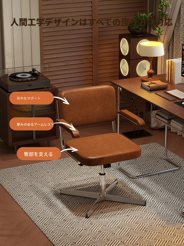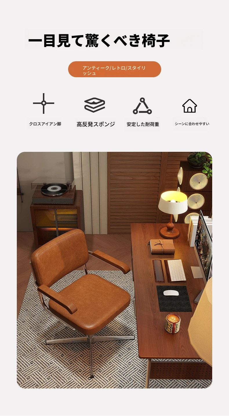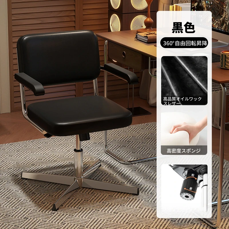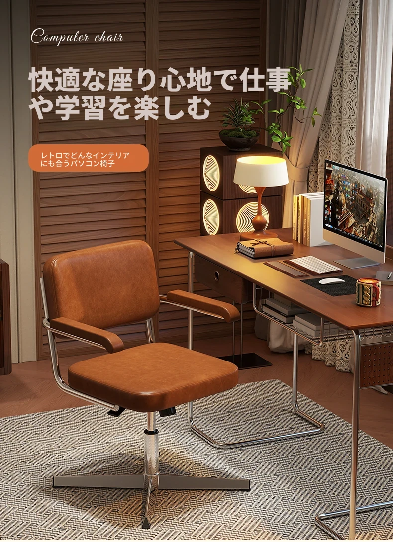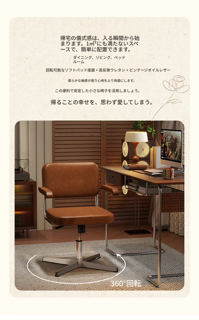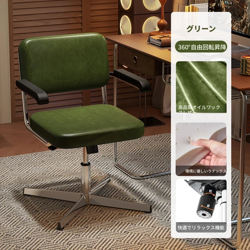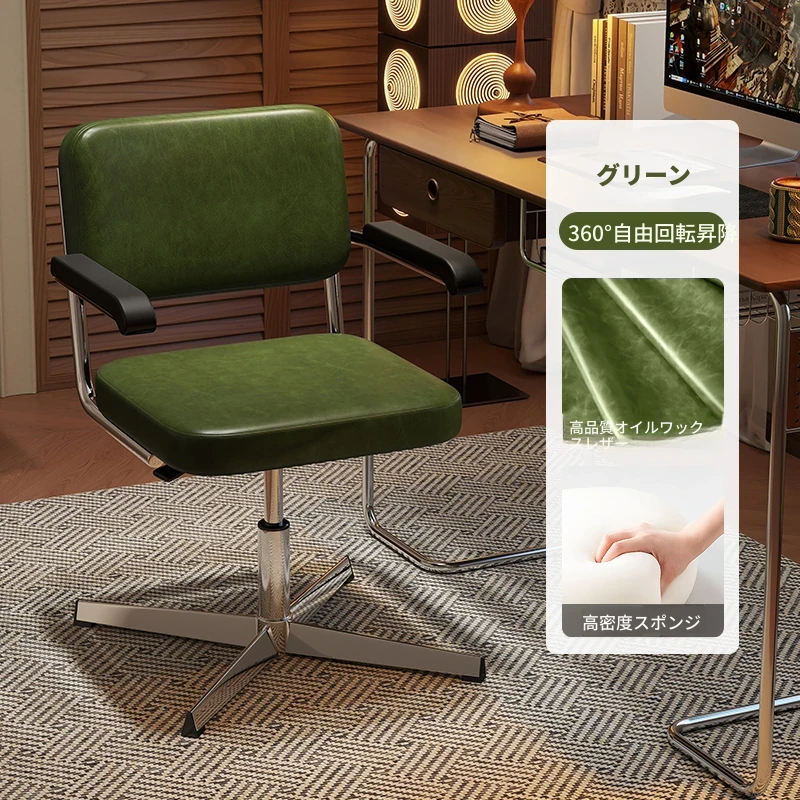 中古風のおしゃれな化粧椅子、昇降&回転機能付き!高級感溢れるオイルワックスレザー仕様、女性のための洗練された書斎や寝室にぴったりなドレッサーチェア。あなたの美しさを引き立てるアイテムです!