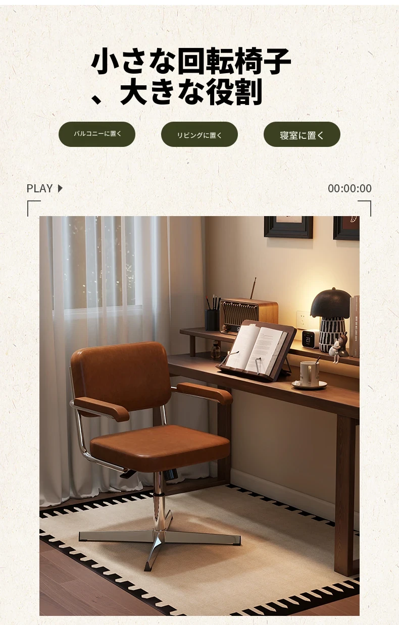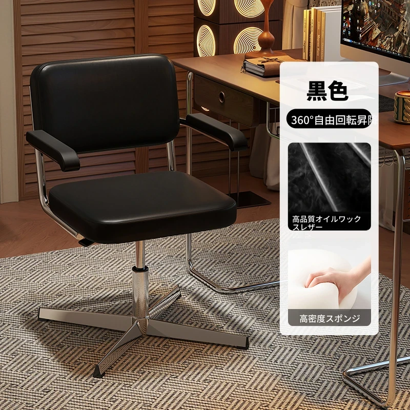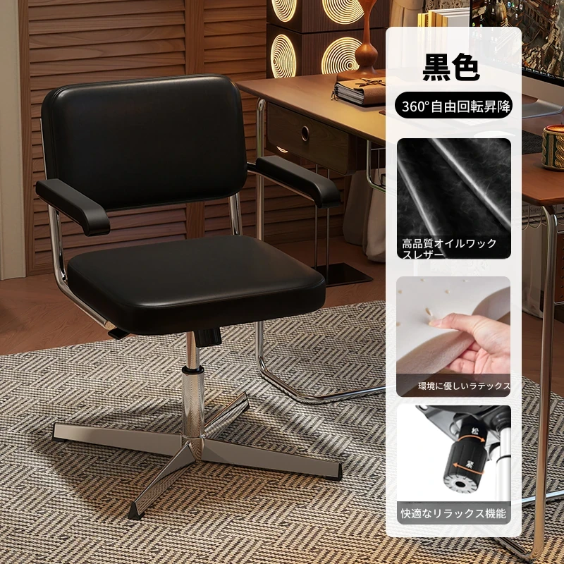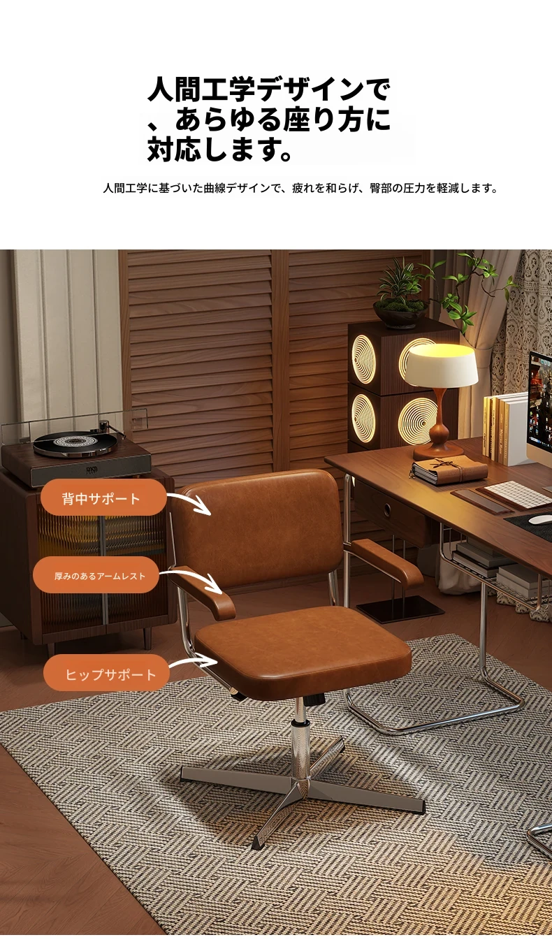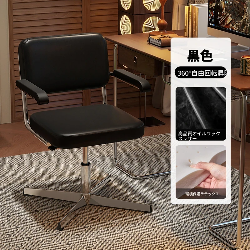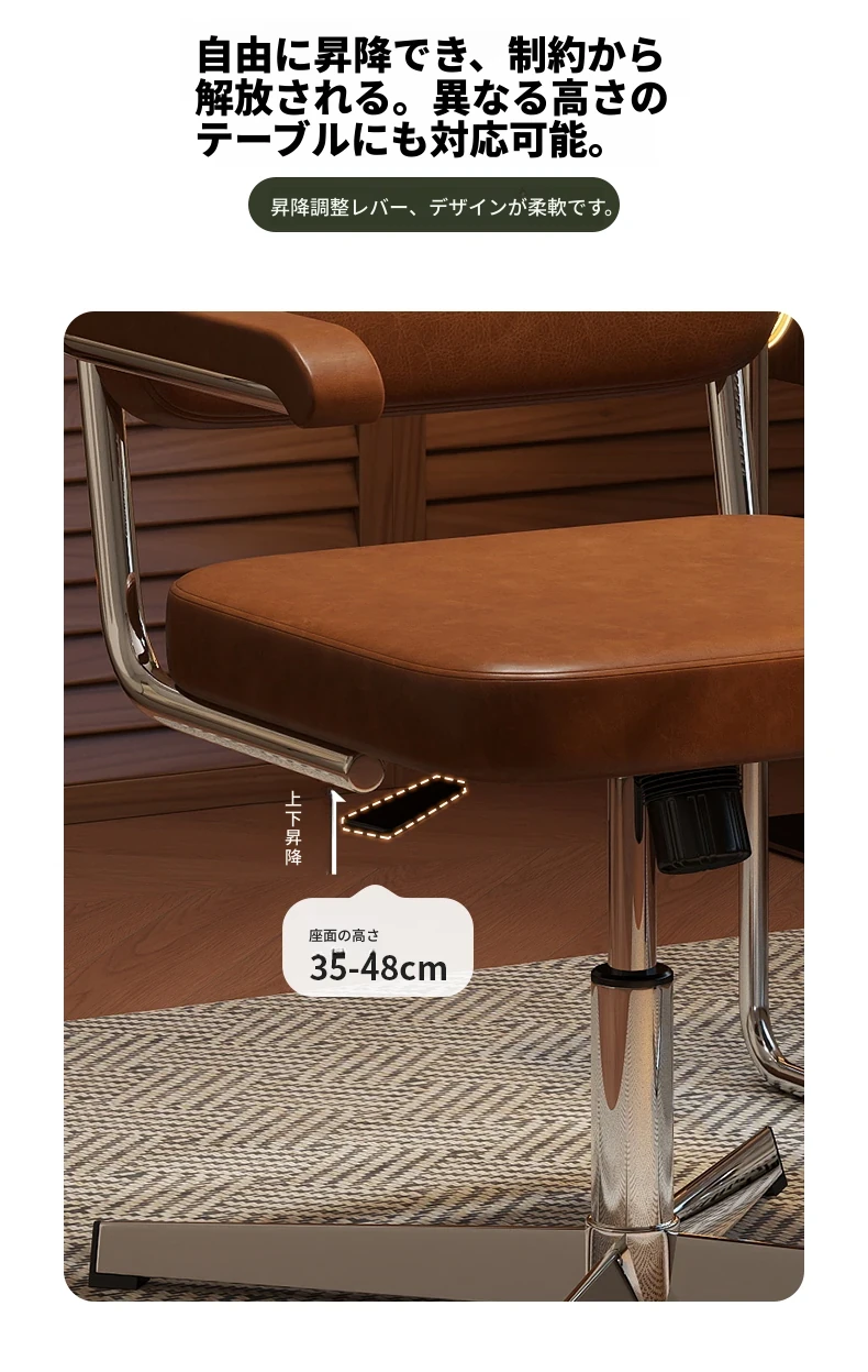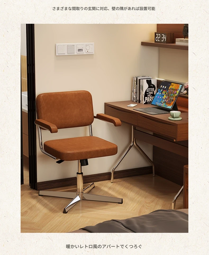 中古風のおしゃれな化粧椅子、昇降&回転機能付き!高級感溢れるオイルワックスレザー仕様、女性のための洗練された書斎や寝室にぴったりなドレッサーチェア。あなたの美しさを引き立てるアイテムです!