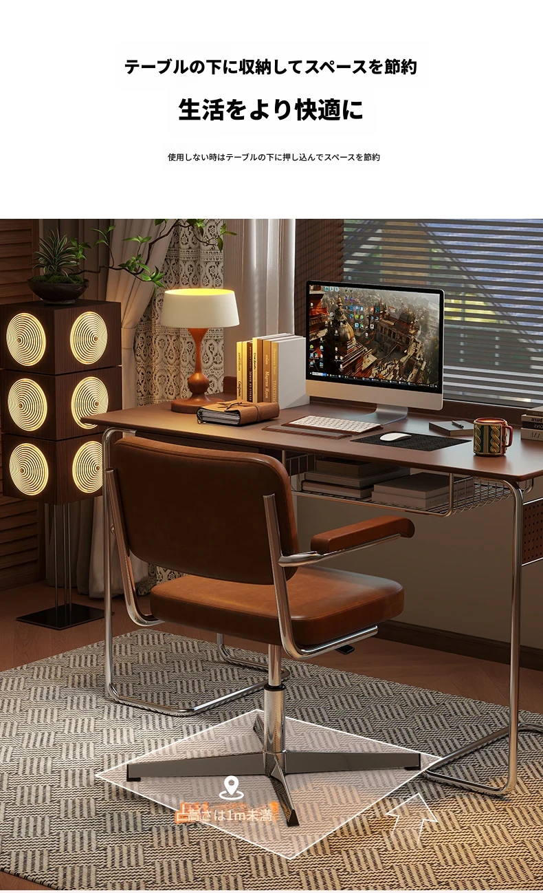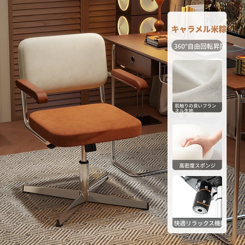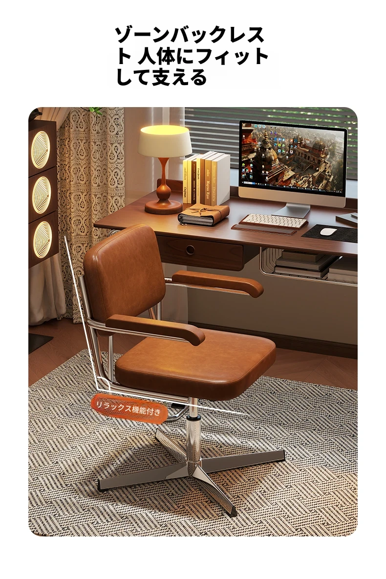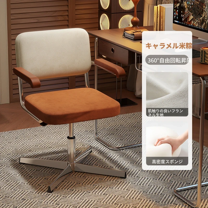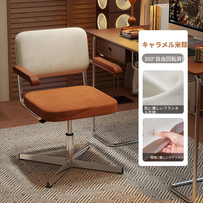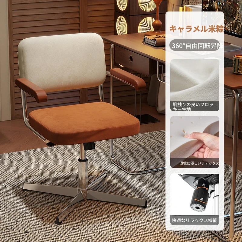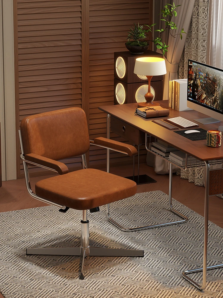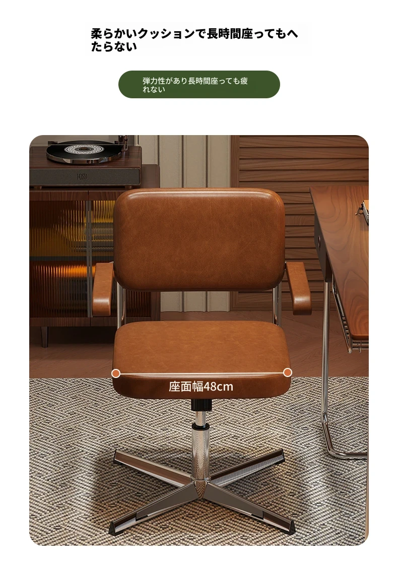 中古風のおしゃれな化粧椅子、昇降&回転機能付き!高級感溢れるオイルワックスレザー仕様、女性のための洗練された書斎や寝室にぴったりなドレッサーチェア。あなたの美しさを引き立てるアイテムです!