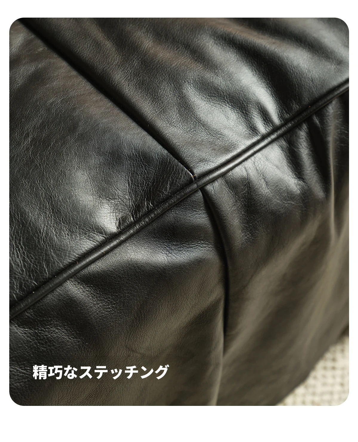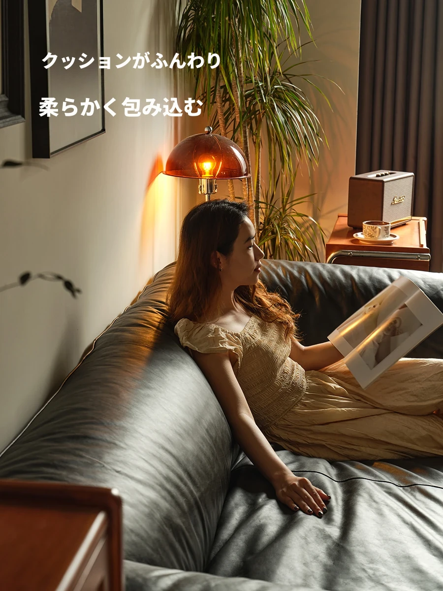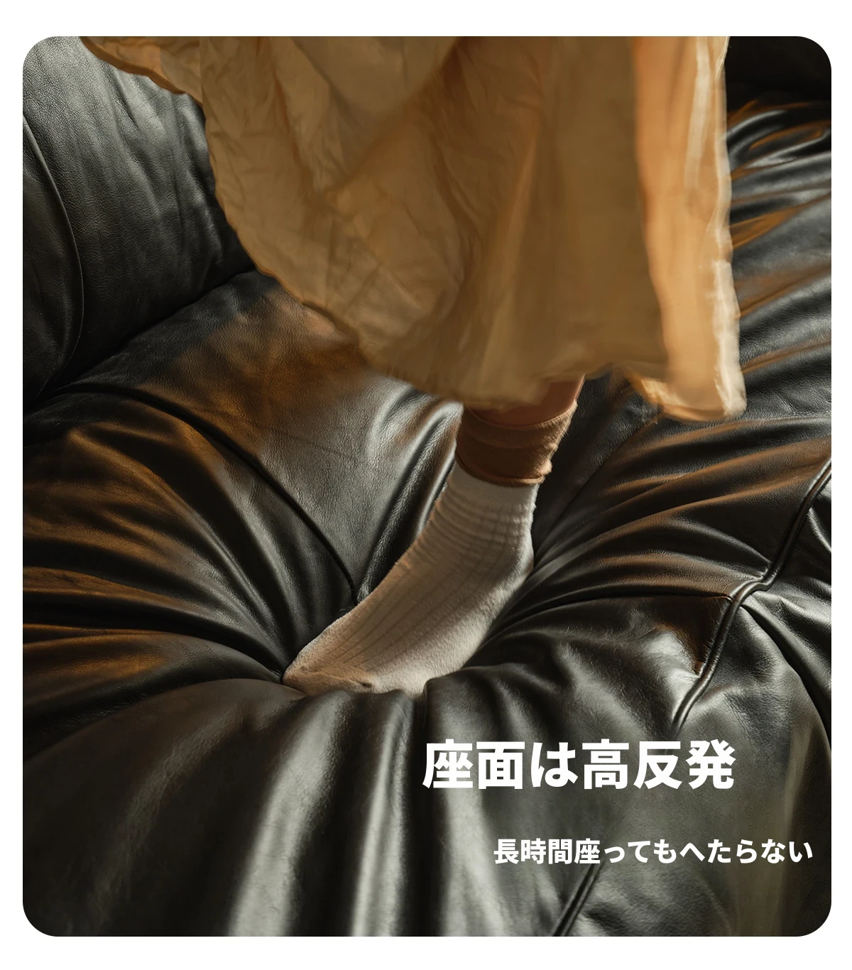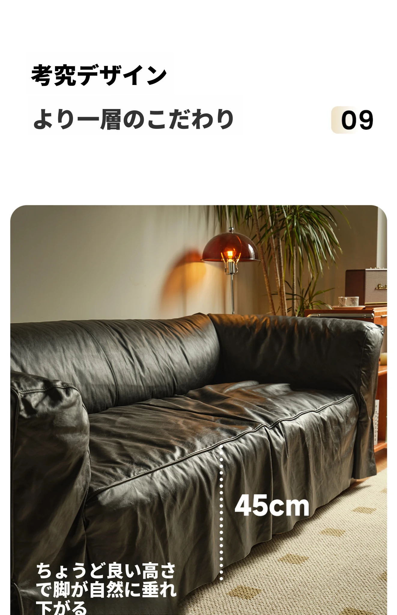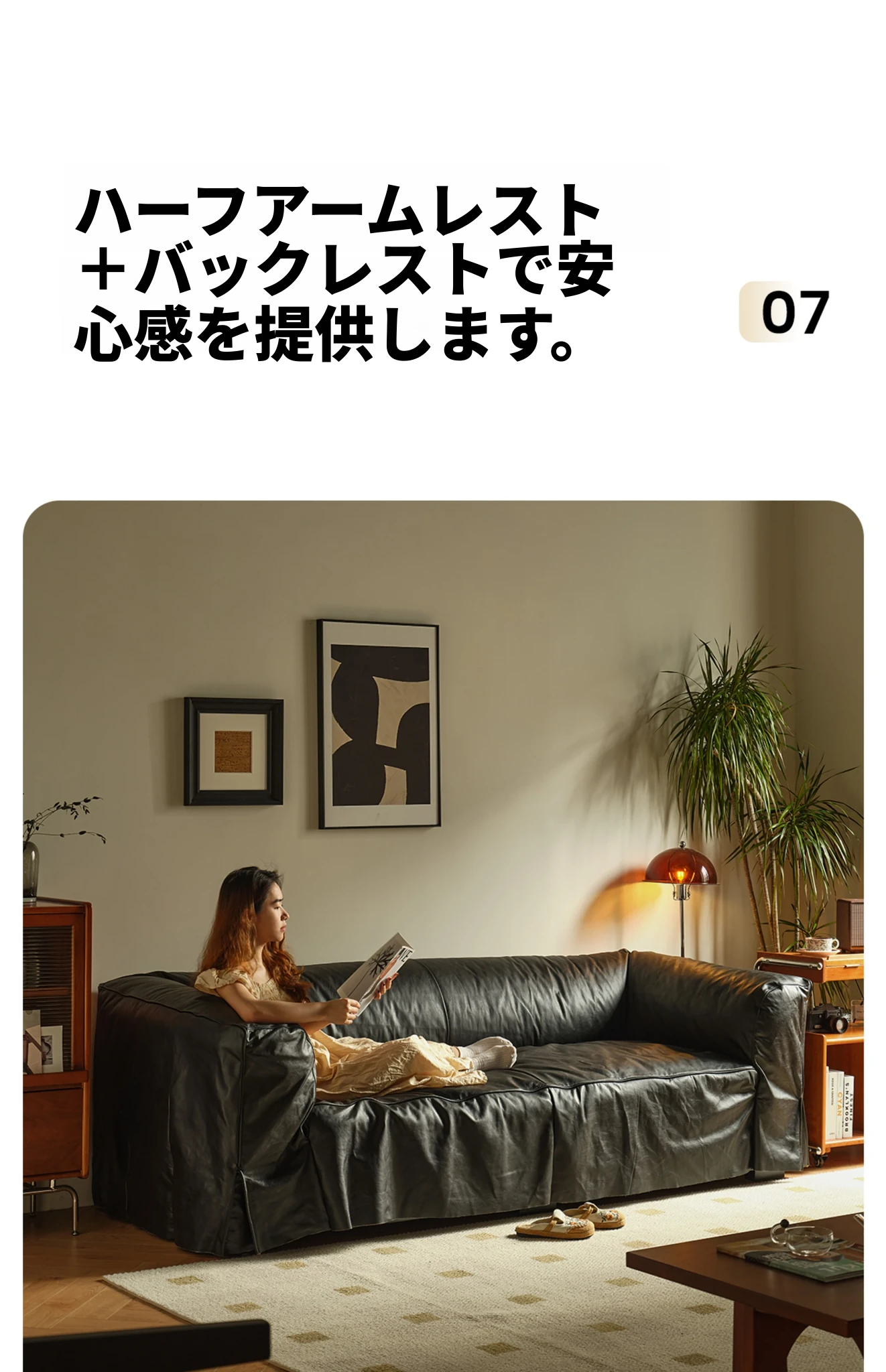 レトロオイルワックスレザーソファ|小型リビングに最適なブラック中古トップグレイン牛革使用|本革スカートデザインのデザイナーズソファで、スタイリッシュな空間を演出!