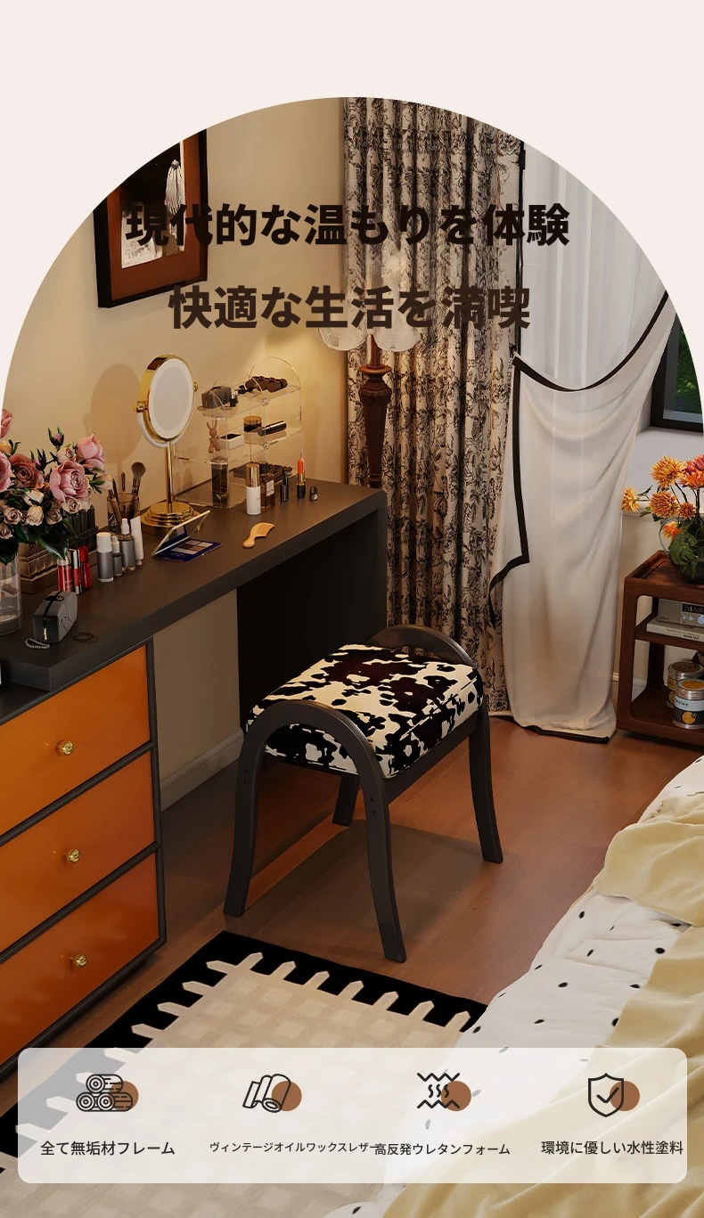 ヴィンテージ風の化粧台、上質な木製のドレッシングスツール。寝室や玄関にぴったりのデザイナーズスタイルで、洗練された雰囲気を演出します。おしゃれな空間を作り出すアイテムです!