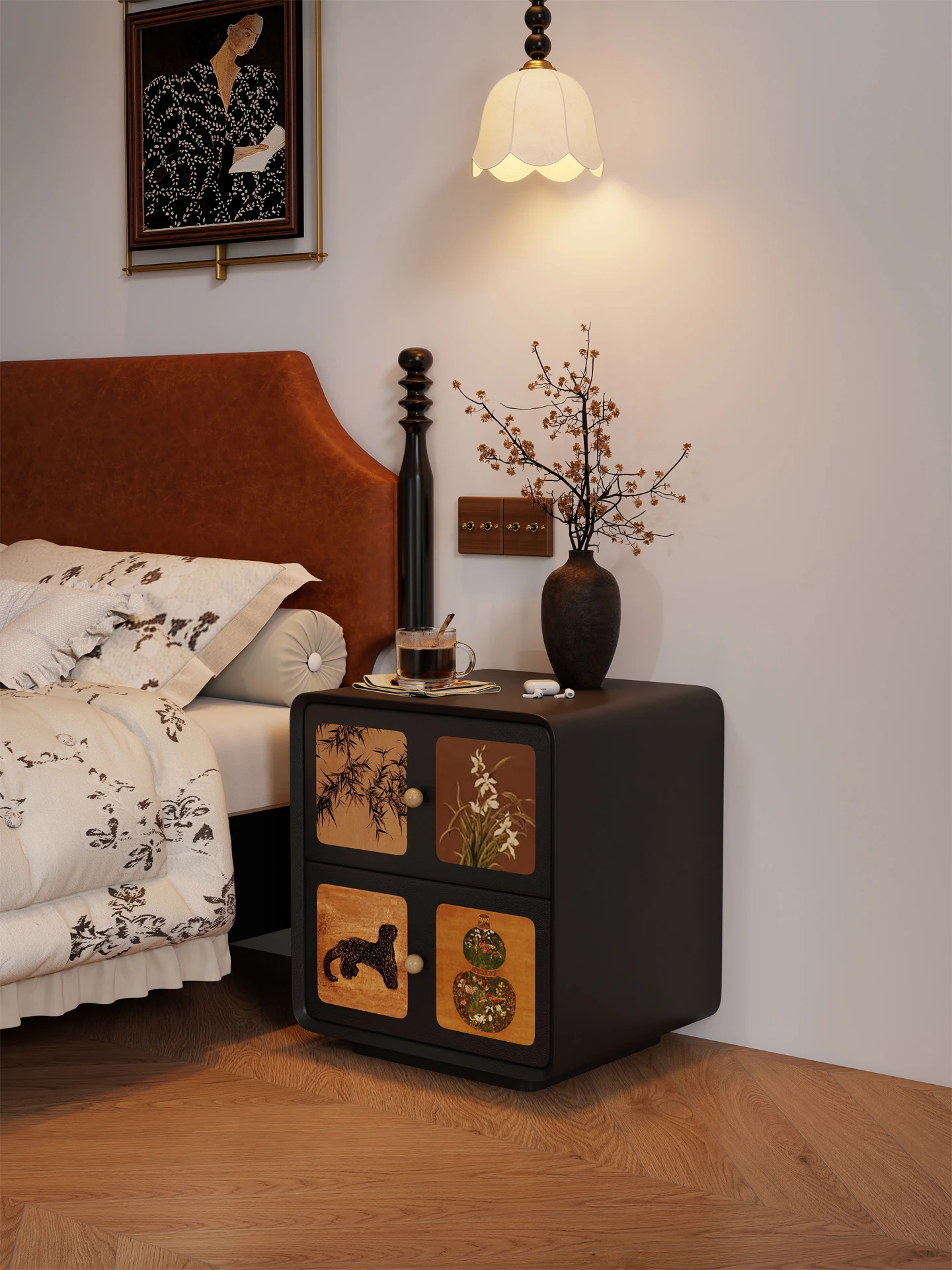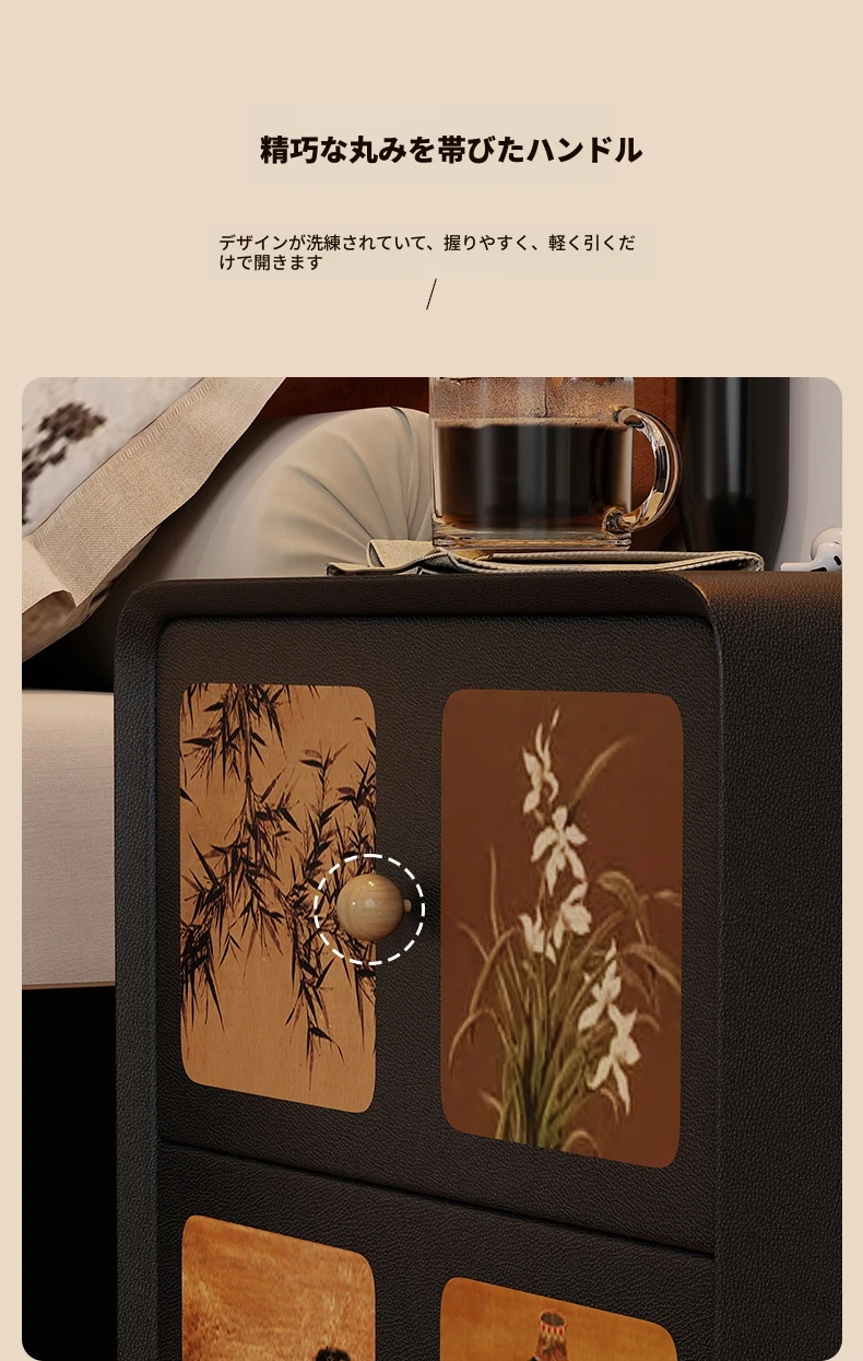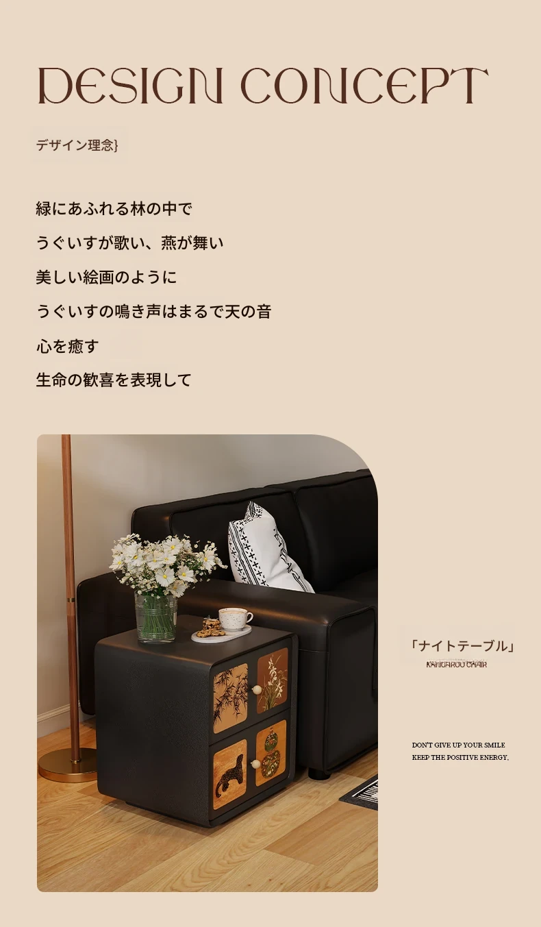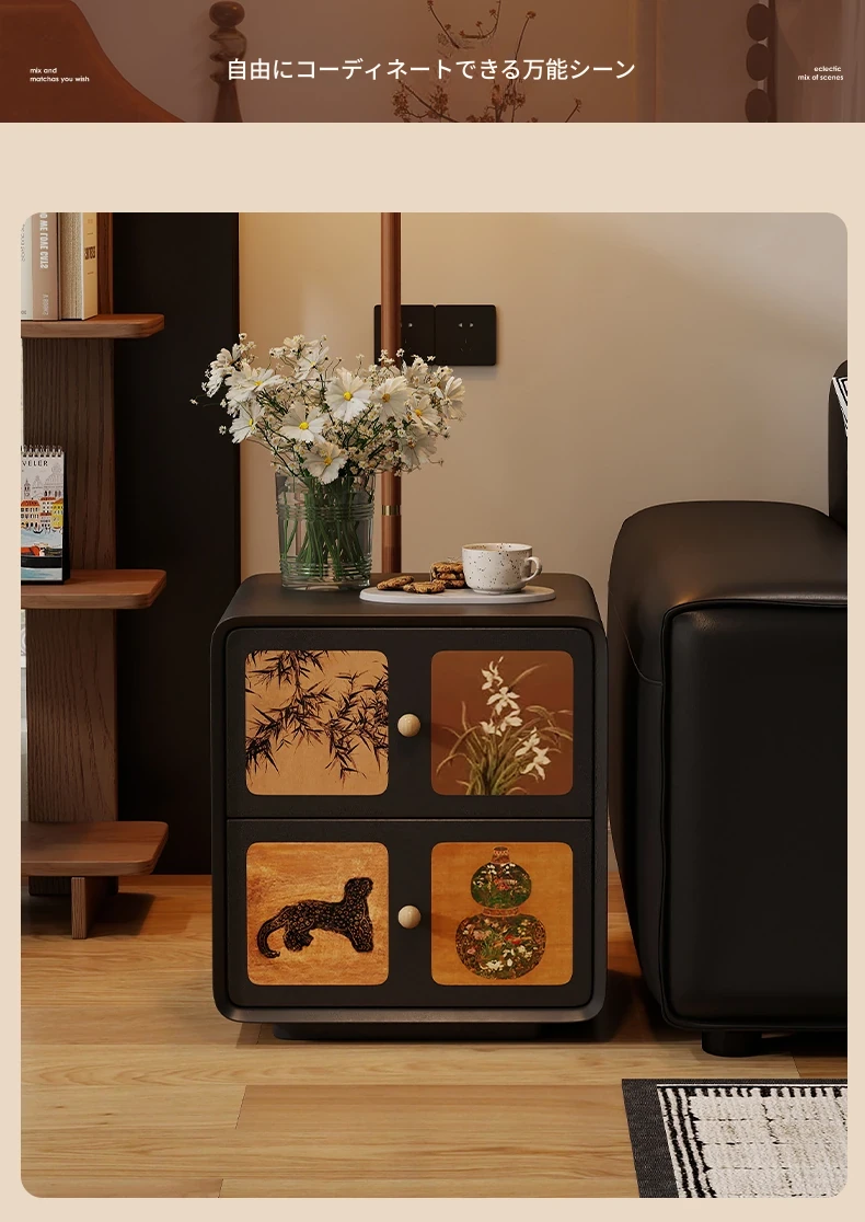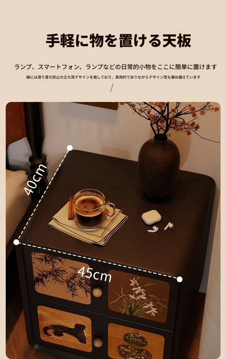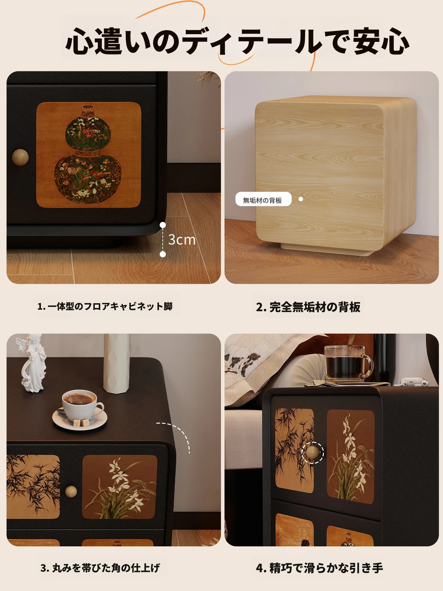 ヴィンテージ風のベッドサイドテーブル、個性的なデザインの実木製ナイトスタンド - おしゃれな黒色の小型収納キャビネットで、あなたの寝室を魅力的に演出!