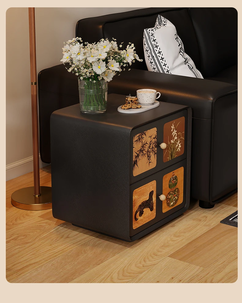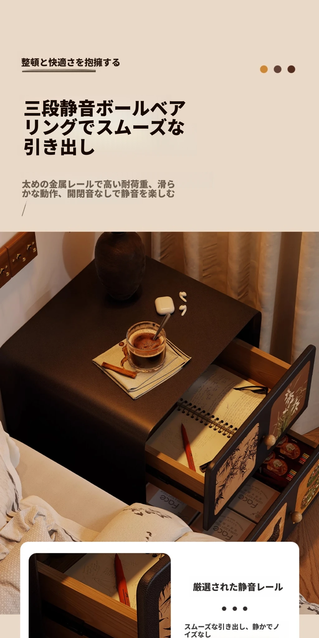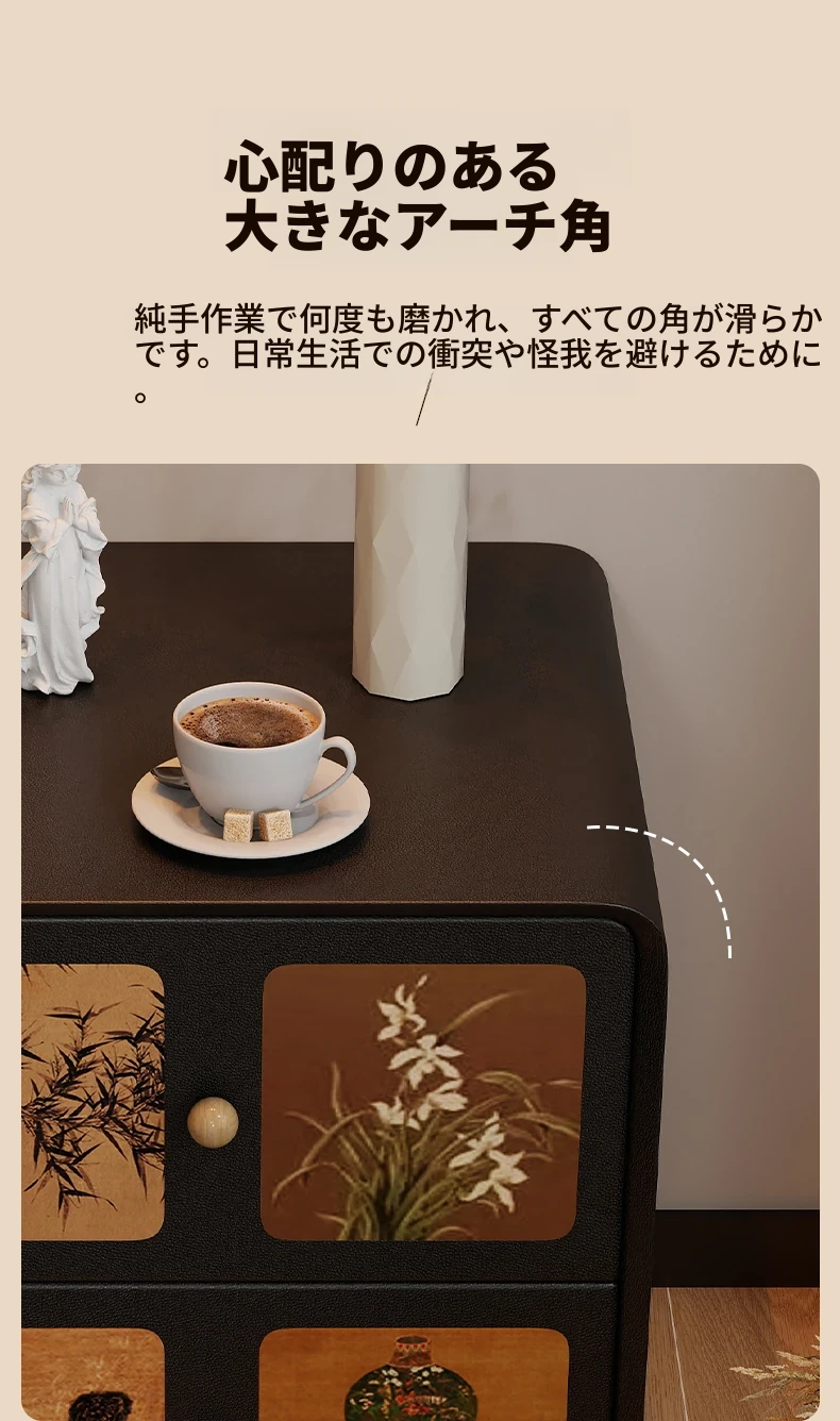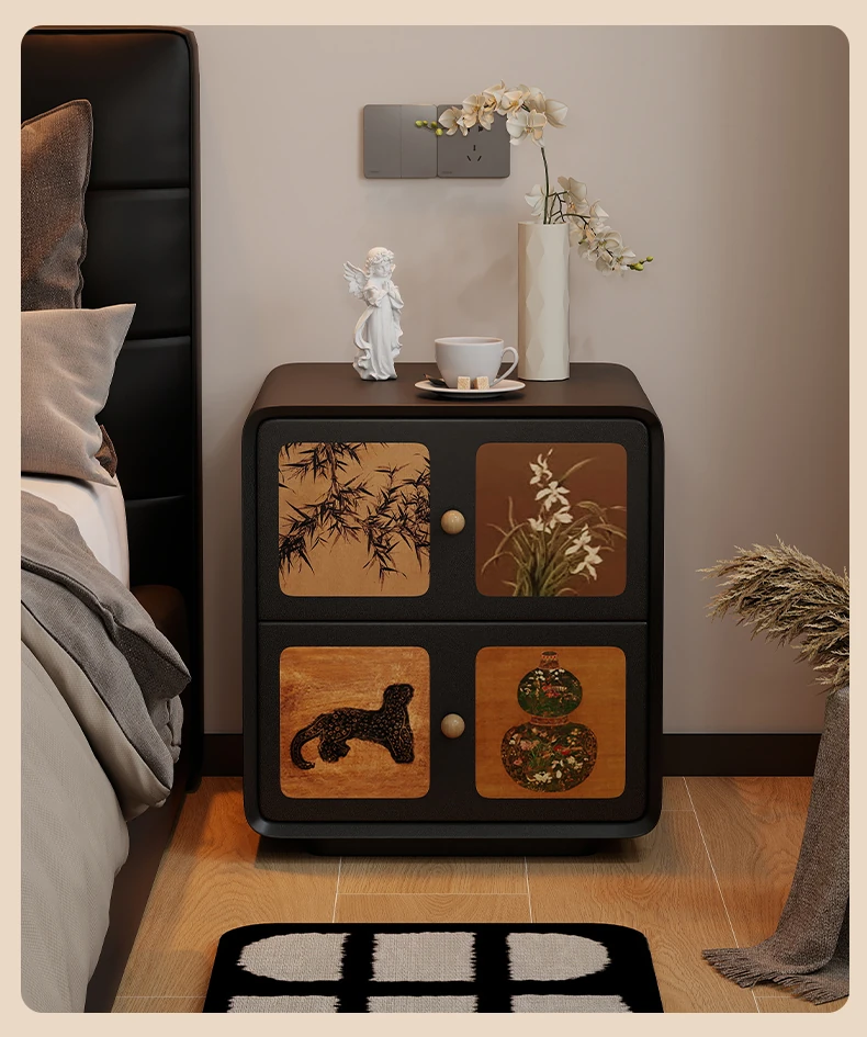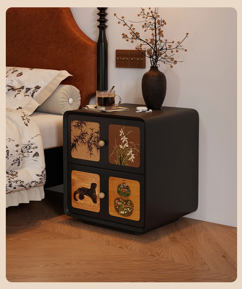 ヴィンテージ風のベッドサイドテーブル、個性的なデザインの実木製ナイトスタンド - おしゃれな黒色の小型収納キャビネットで、あなたの寝室を魅力的に演出!