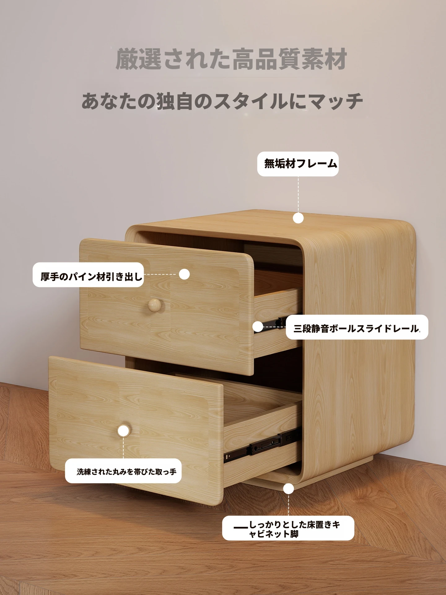 白色【2個セット】--厚手の無垢材フレーム+パイン材引き出し