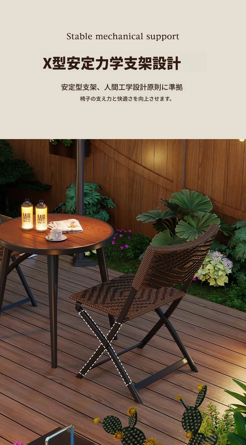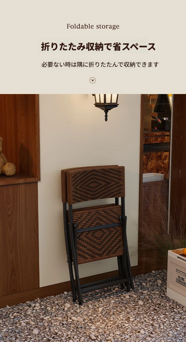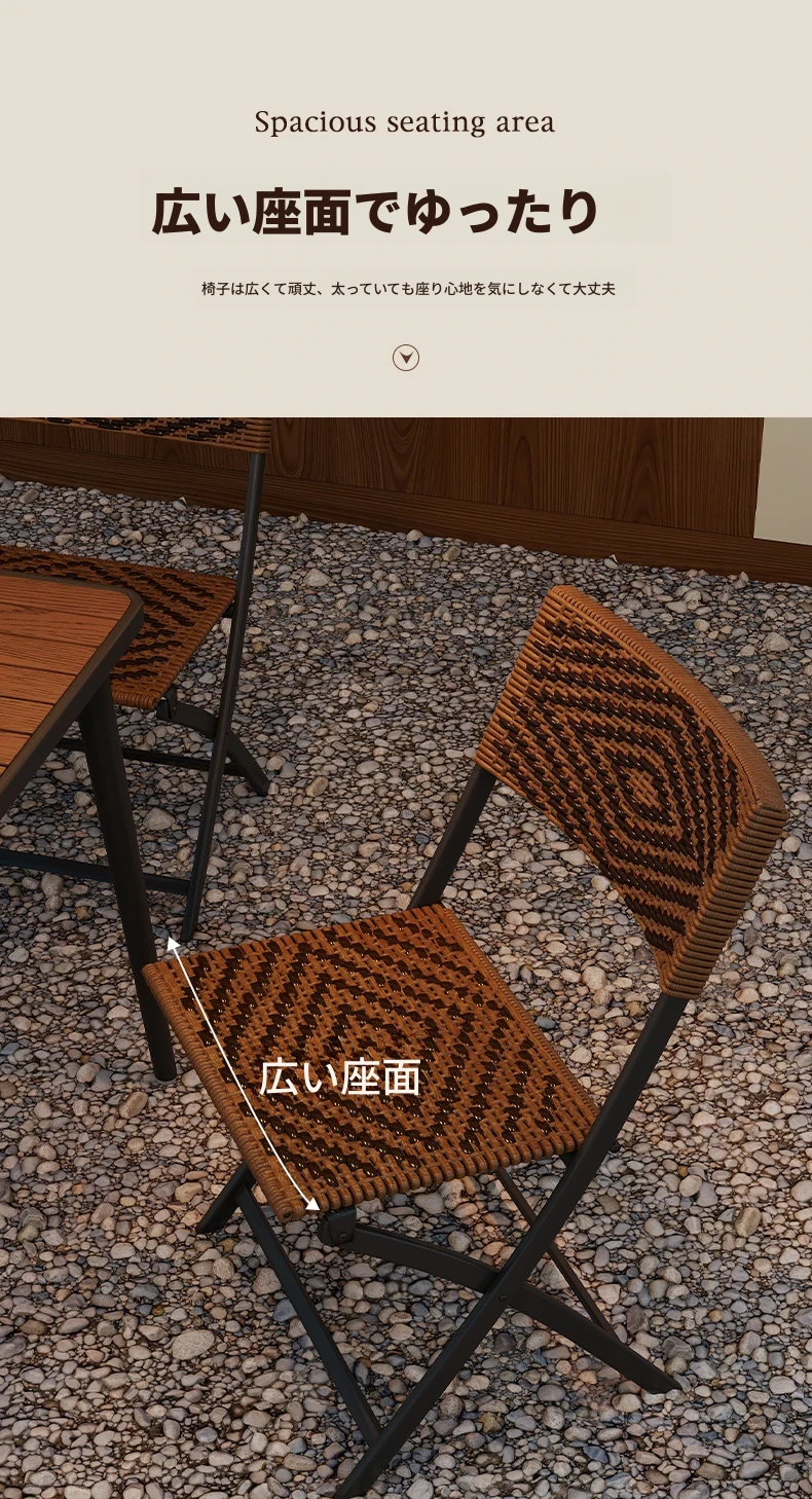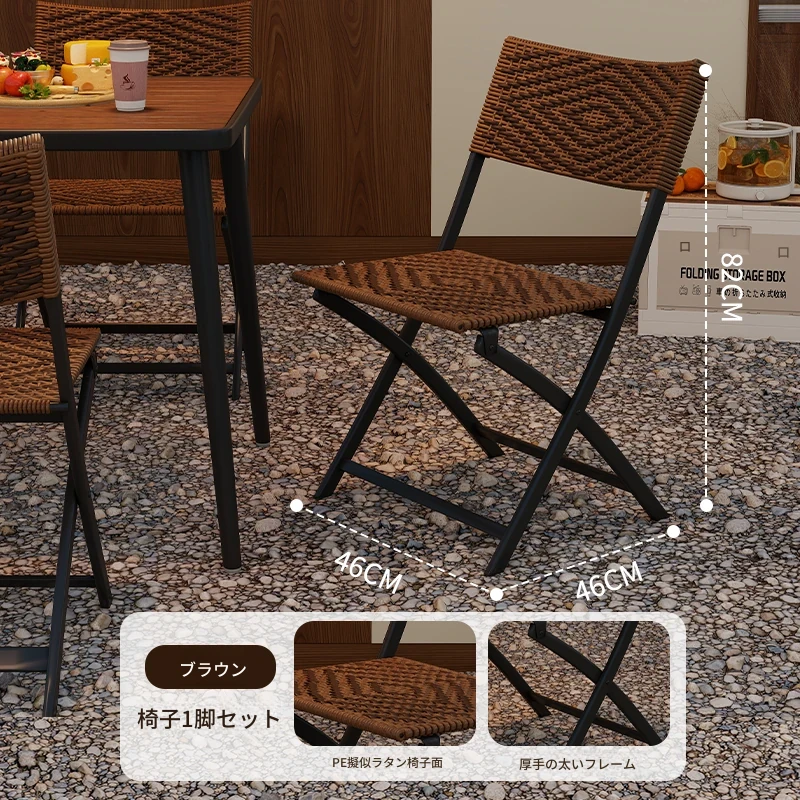 防水・UVカット!アウトドア庭園・バルコニーに最適なリラックスラタンチェアセット 折りたたみ式ティーテーブル&チェア コンパクトで便利なデザインで、快適なひとときをお楽しみください!