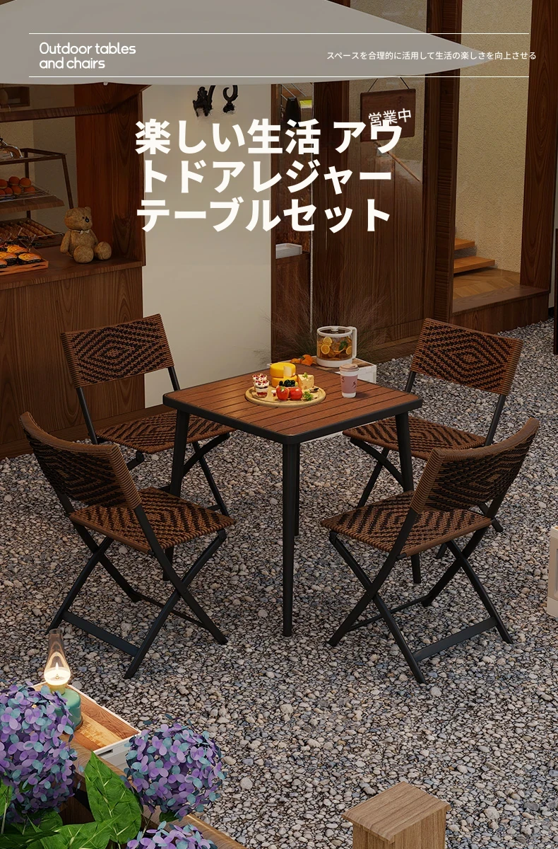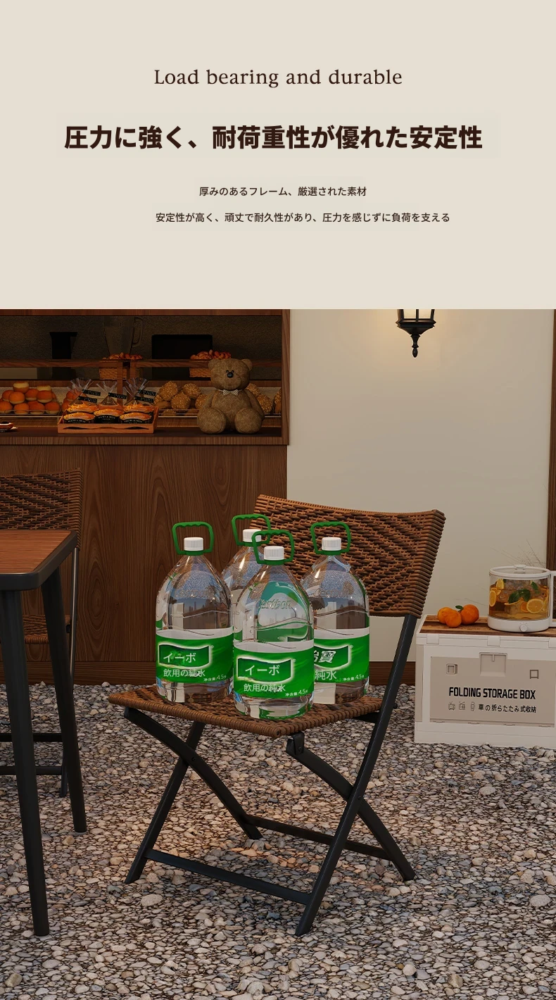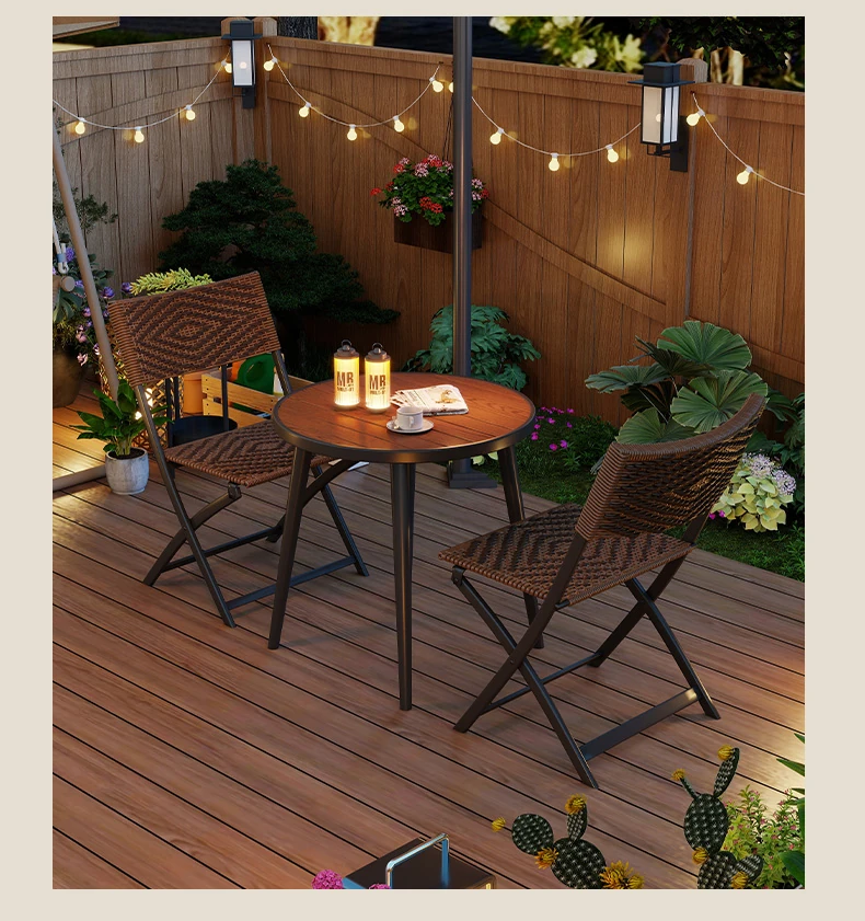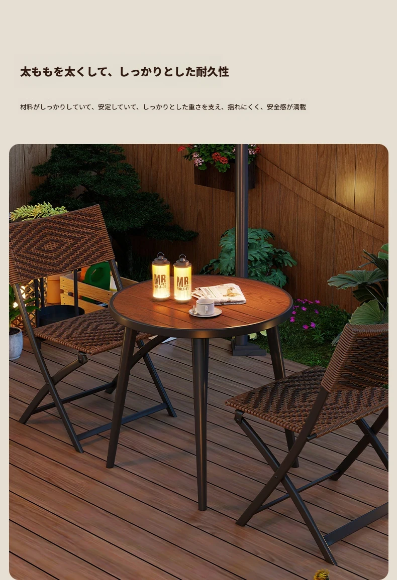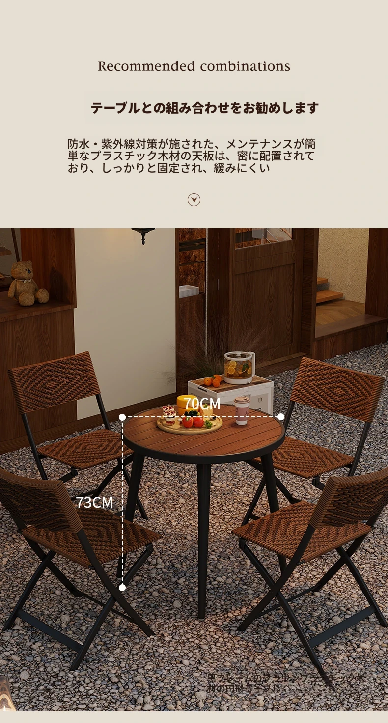 防水・UVカット!アウトドア庭園・バルコニーに最適なリラックスラタンチェアセット 折りたたみ式ティーテーブル&チェア コンパクトで便利なデザインで、快適なひとときをお楽しみください!