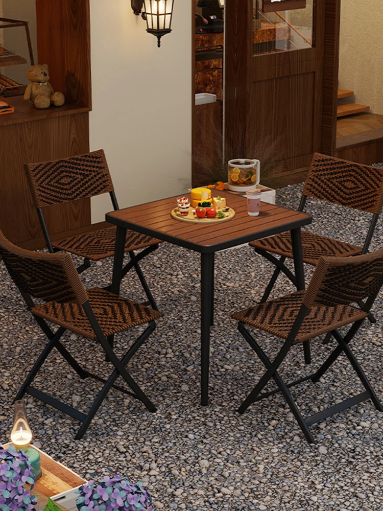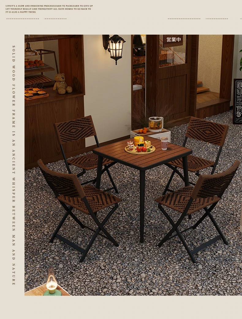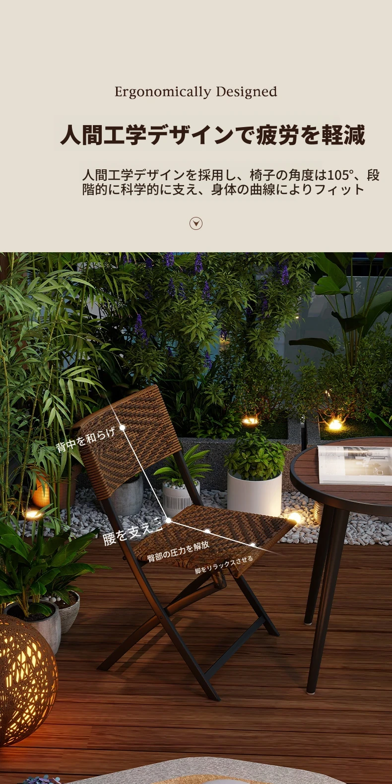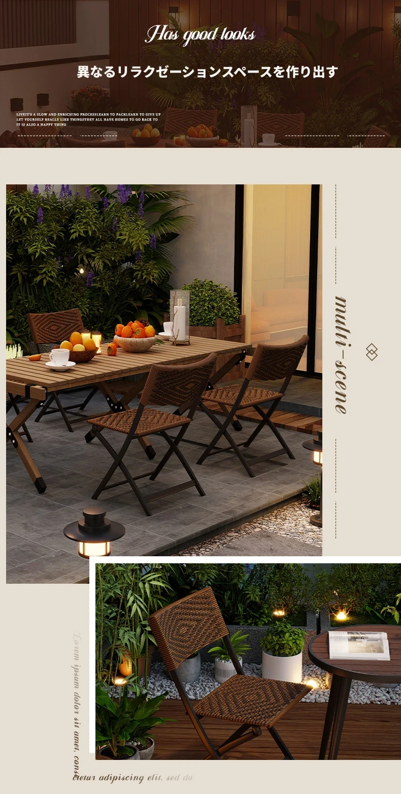 防水・UVカット!アウトドア庭園・バルコニーに最適なリラックスラタンチェアセット 折りたたみ式ティーテーブル&チェア コンパクトで便利なデザインで、快適なひとときをお楽しみください!
