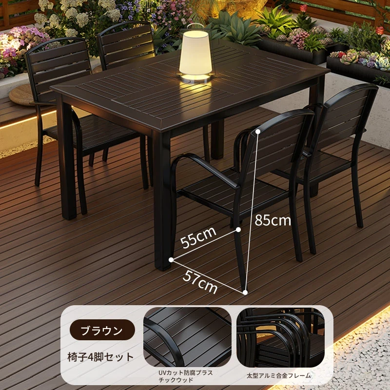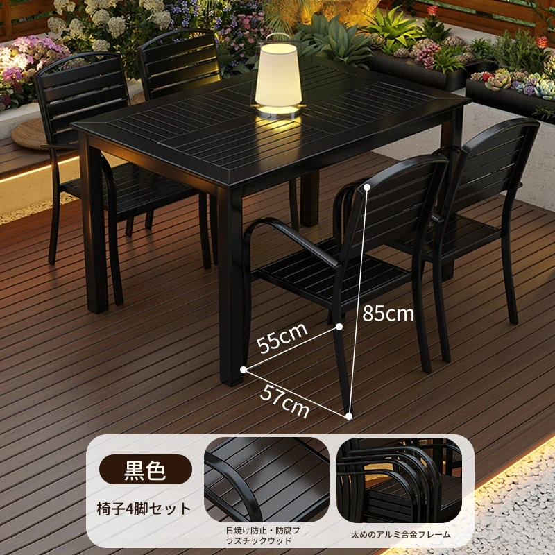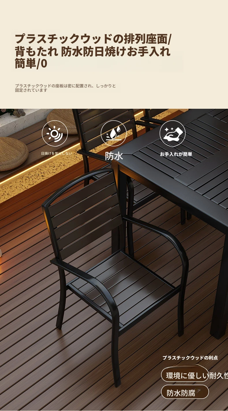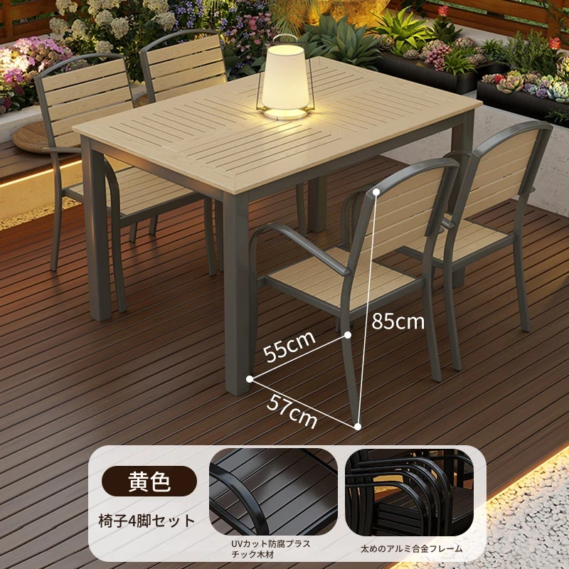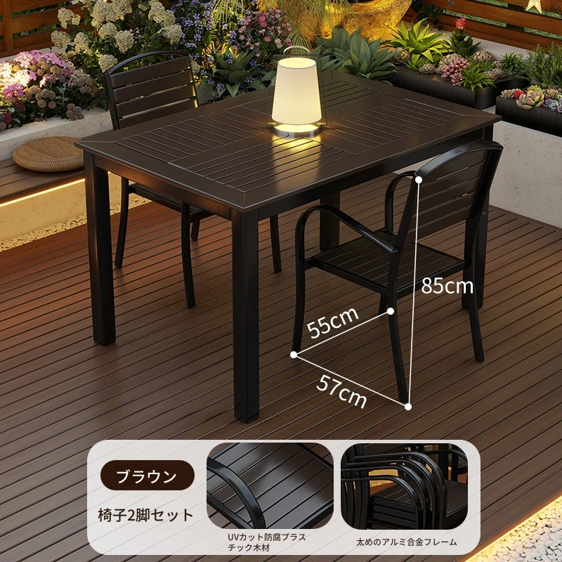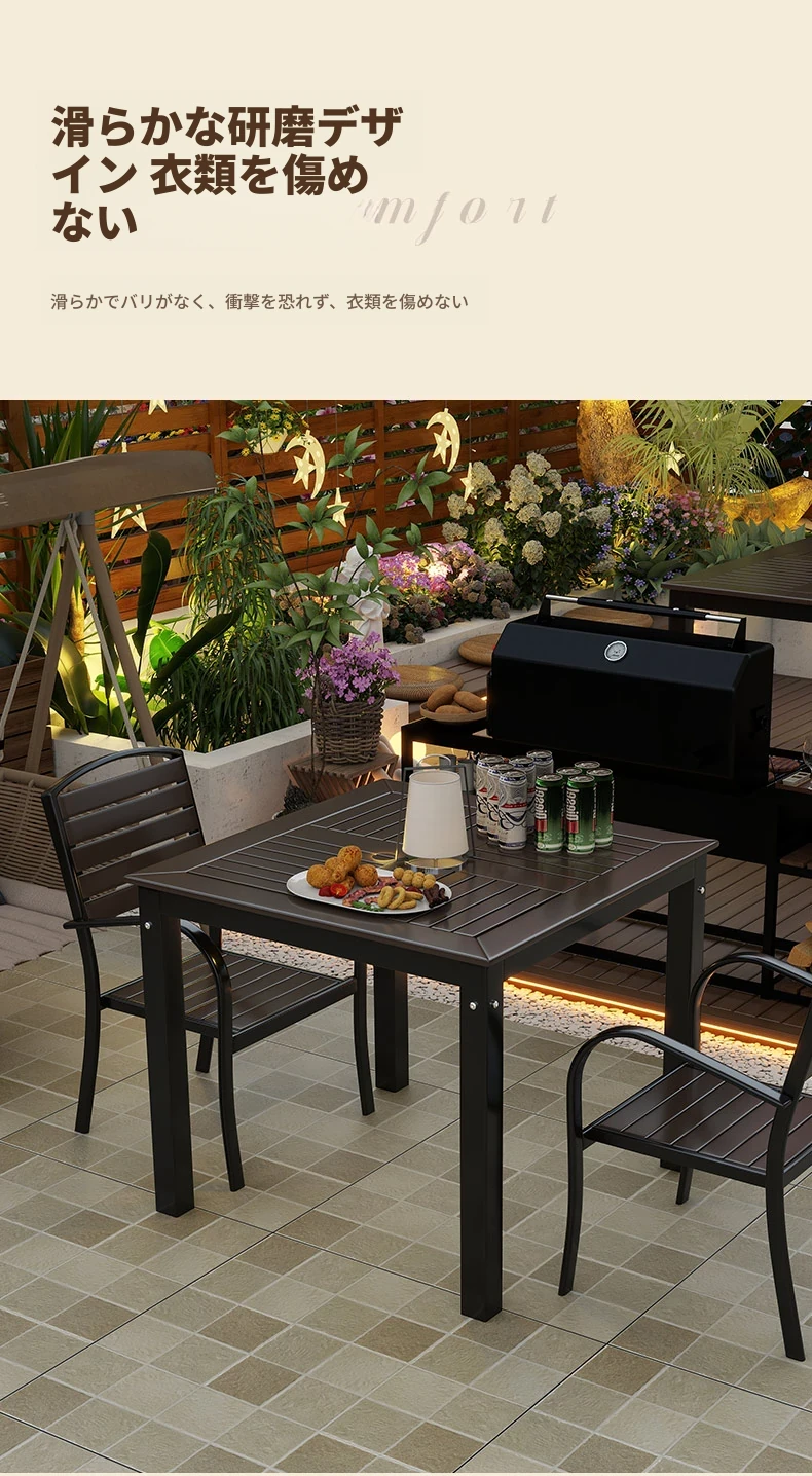 防水性抜群!アウトドア用プラスチックウッド製テーブル&チェアセット - 庭やバルコニーに最適なリラックススペースを演出する、スタイリッシュな屋外家具!