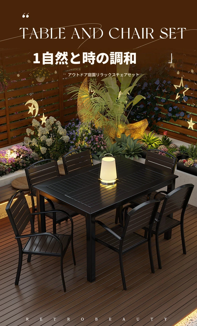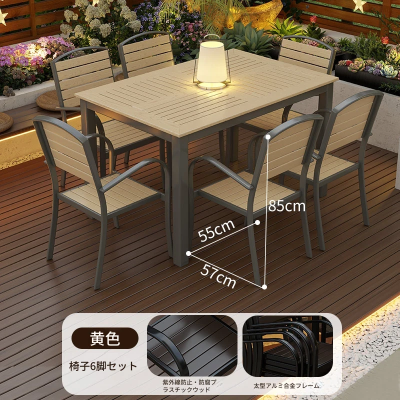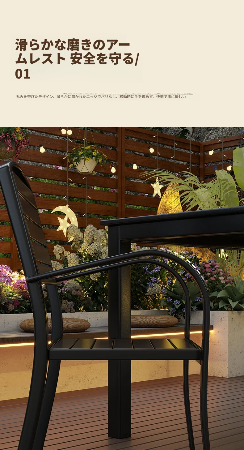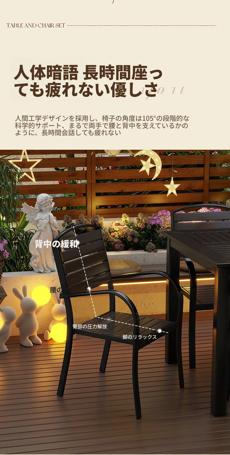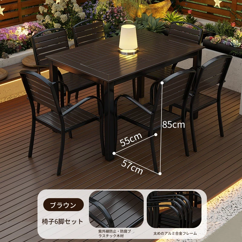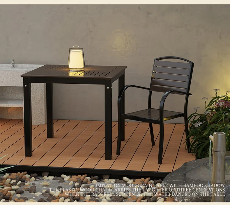 防水性抜群!アウトドア用プラスチックウッド製テーブル&チェアセット - 庭やバルコニーに最適なリラックススペースを演出する、スタイリッシュな屋外家具!