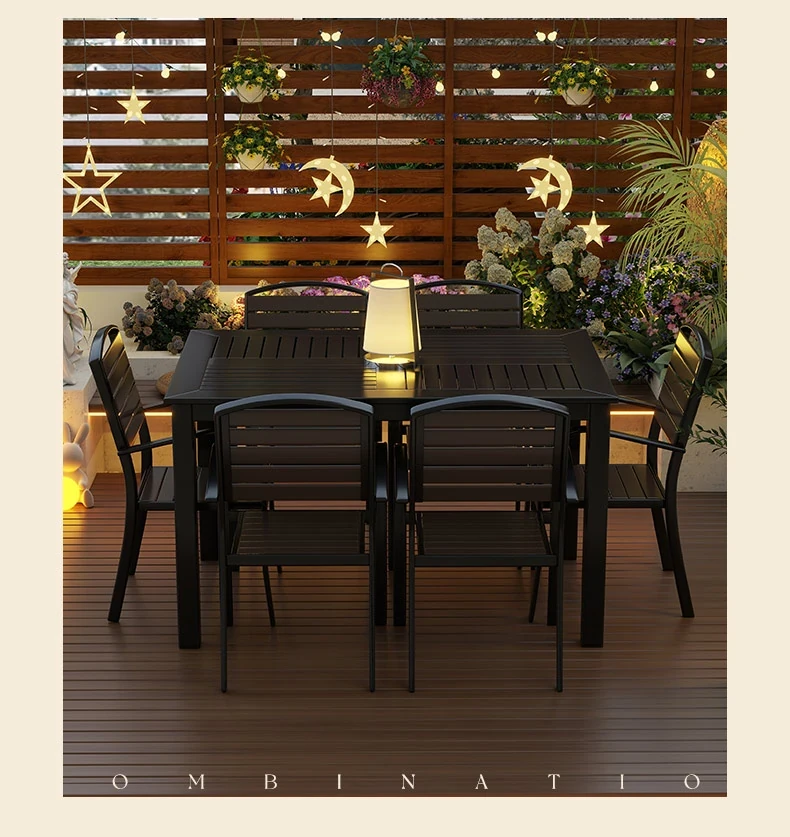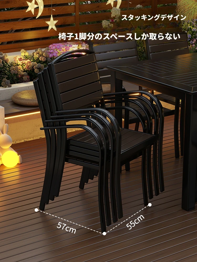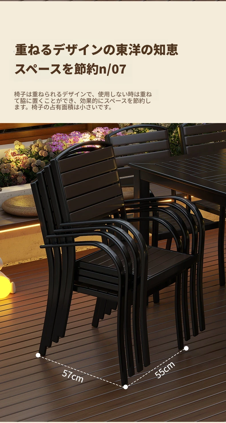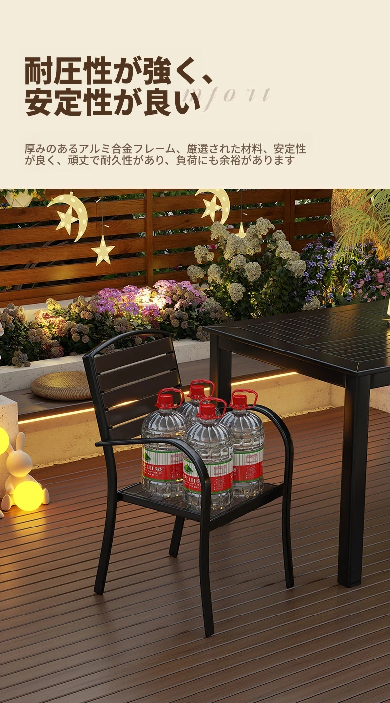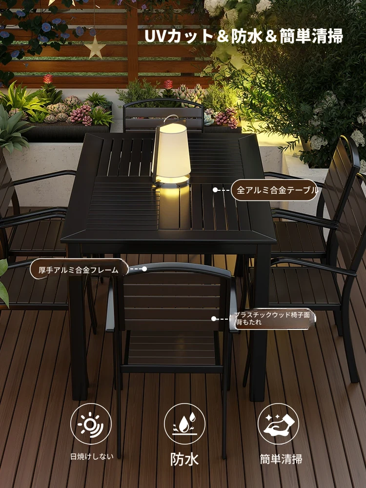 防水性抜群!アウトドア用プラスチックウッド製テーブル&チェアセット - 庭やバルコニーに最適なリラックススペースを演出する、スタイリッシュな屋外家具!