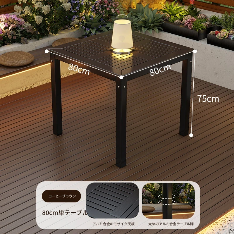 コーヒー色【80*80CM】アルミプラスチック木製テーブル