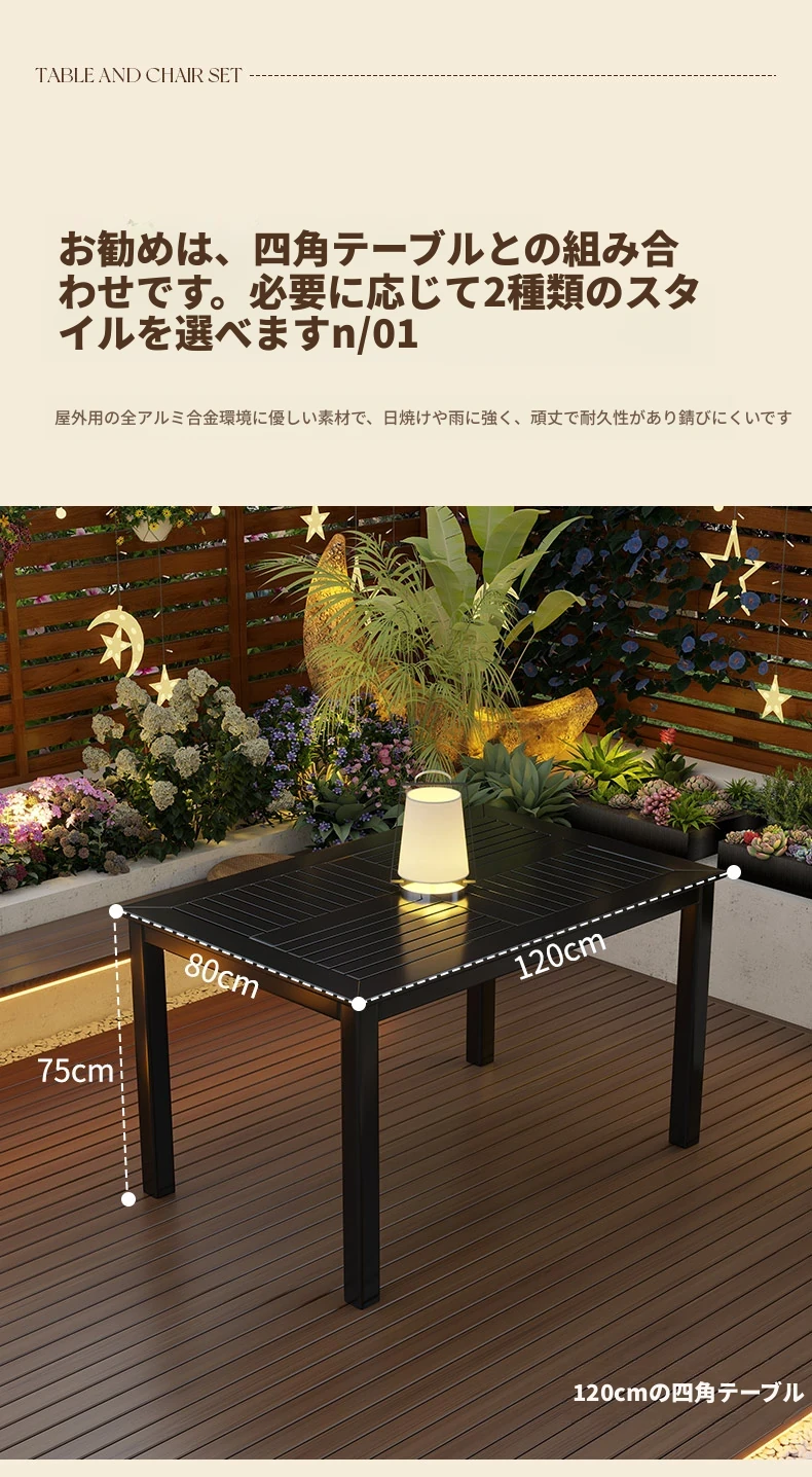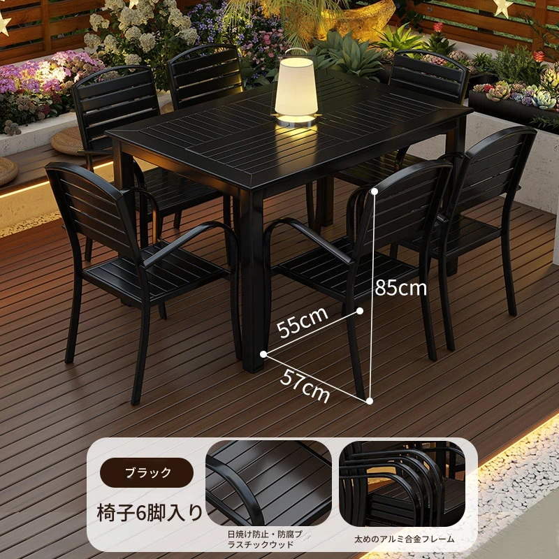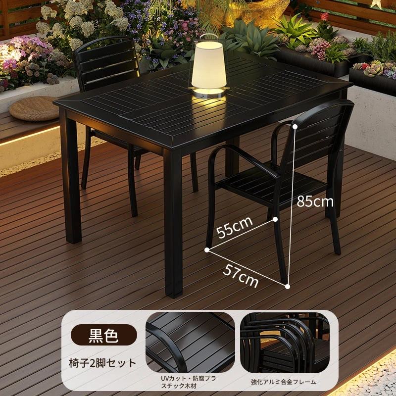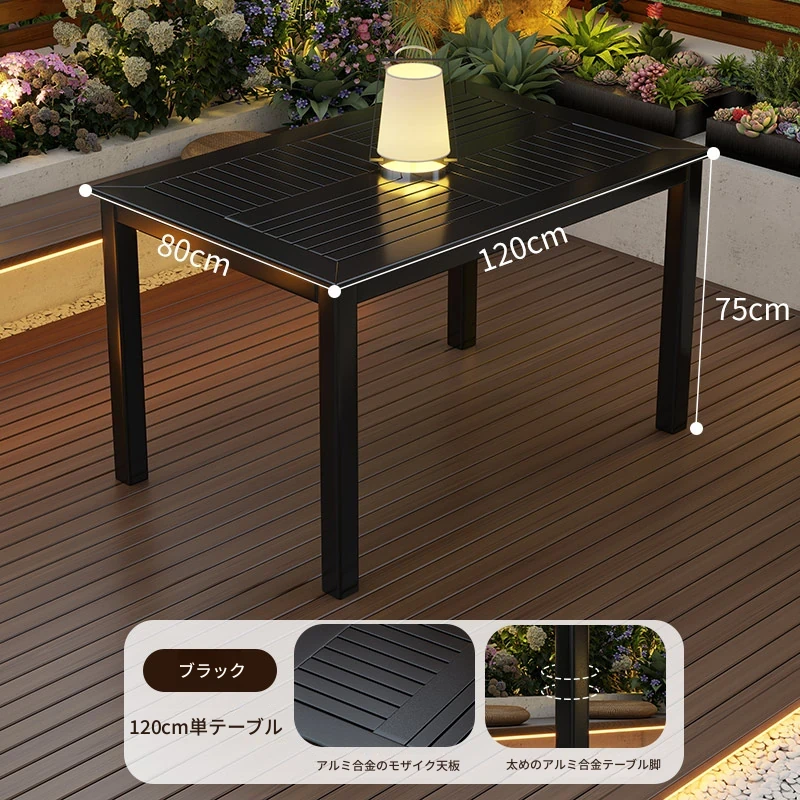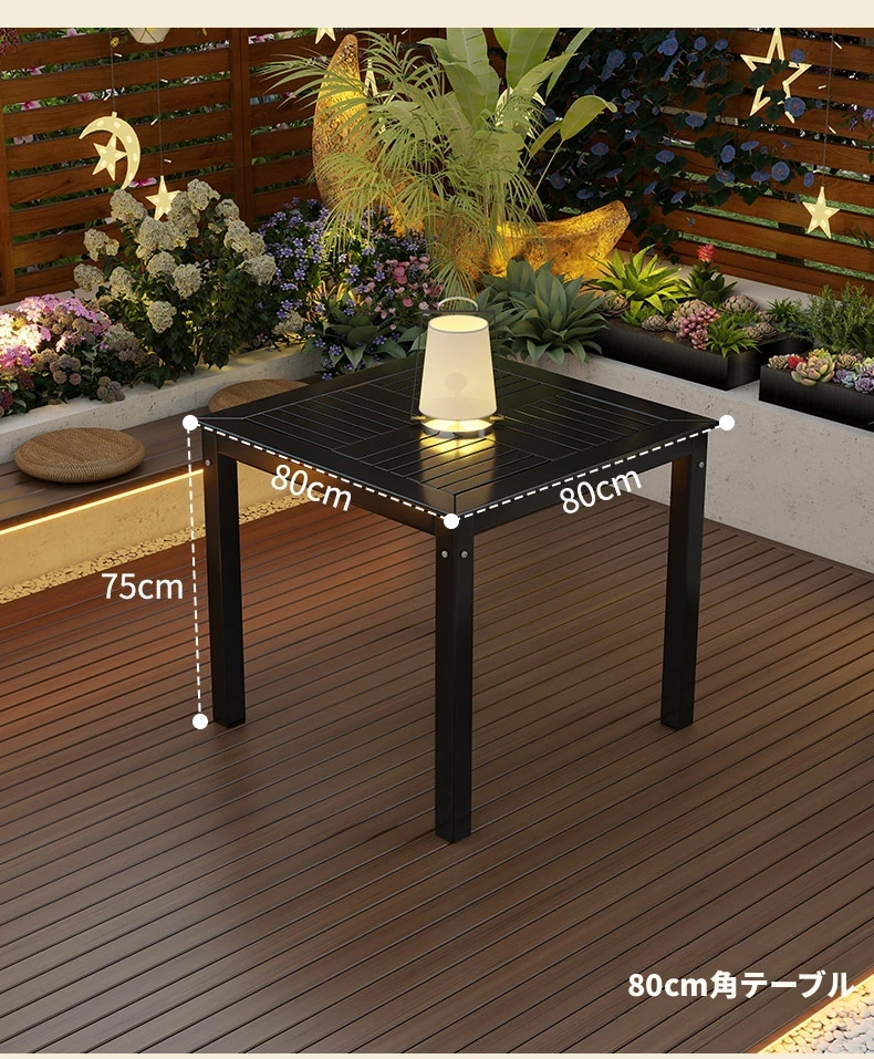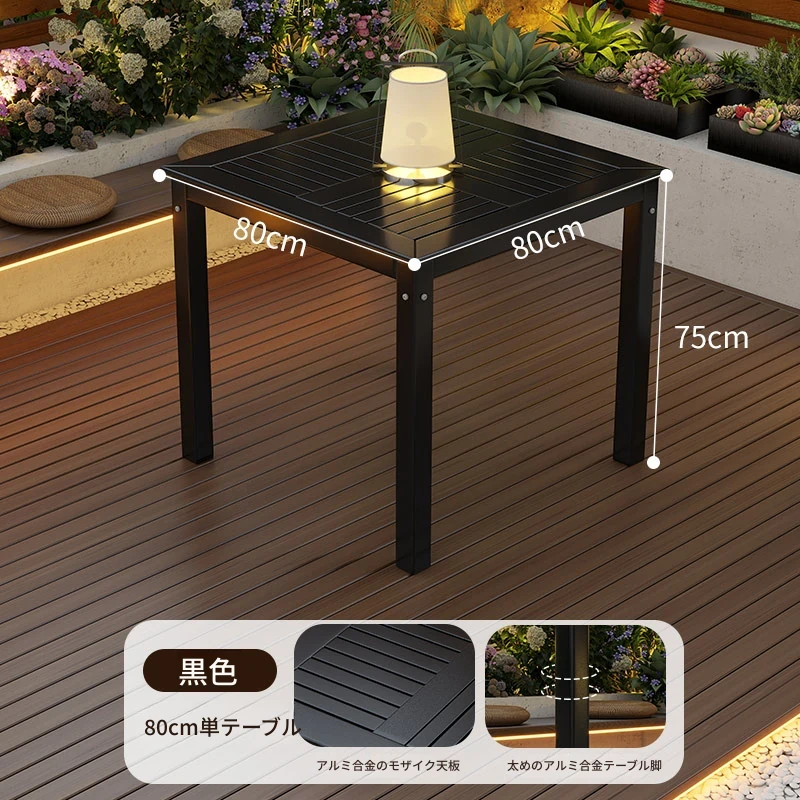 黒色【80*80CM】アルミプラスチック木製テーブル