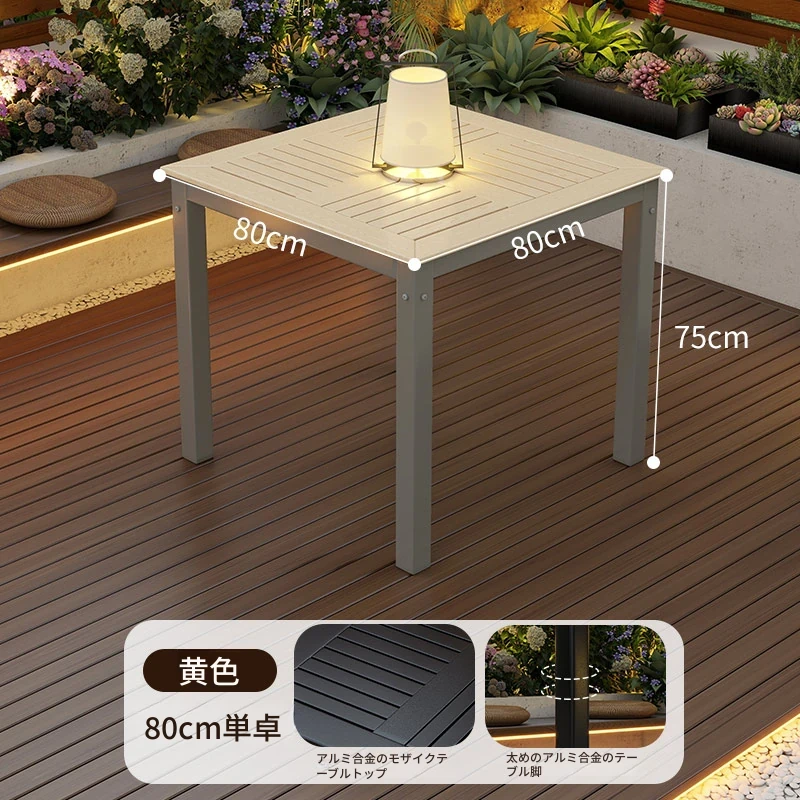 黄色【80*80CM】アルミプラスチック木製テーブル