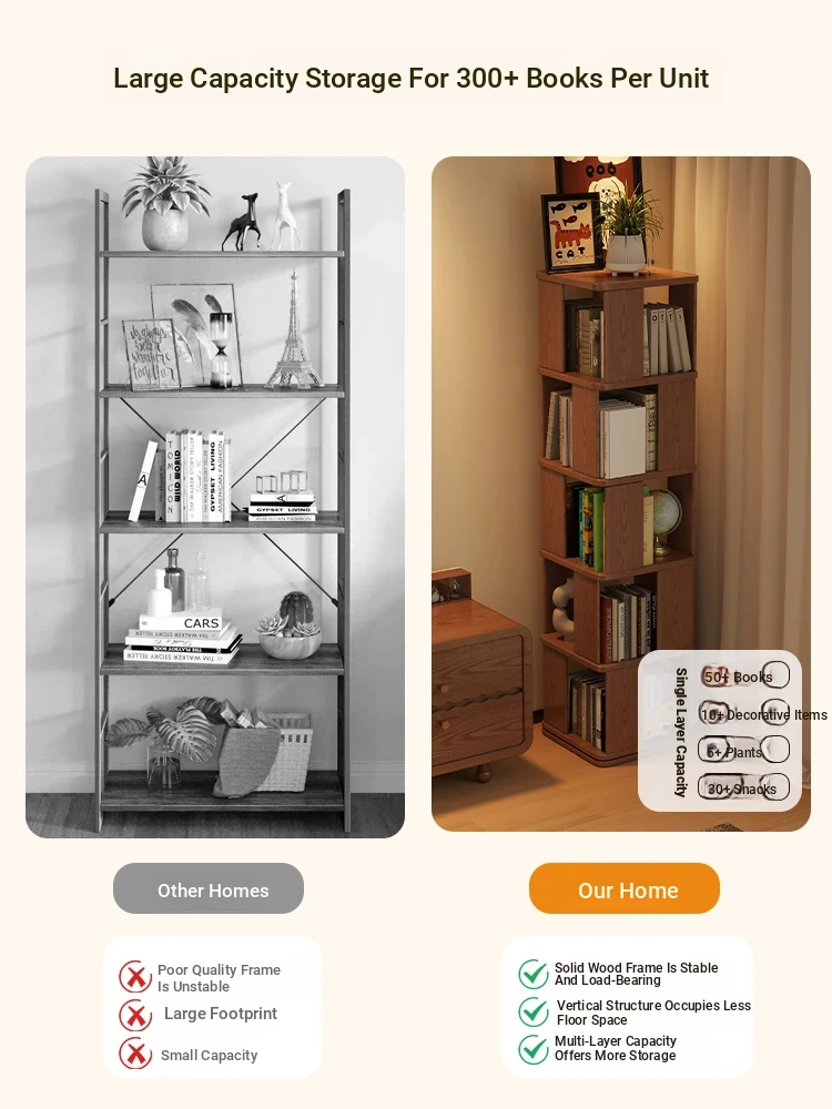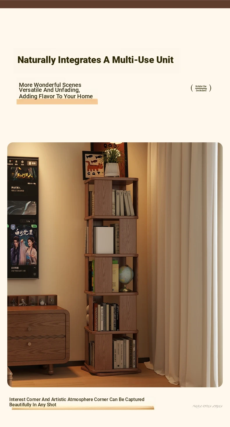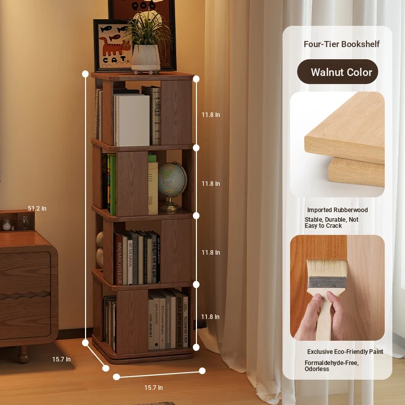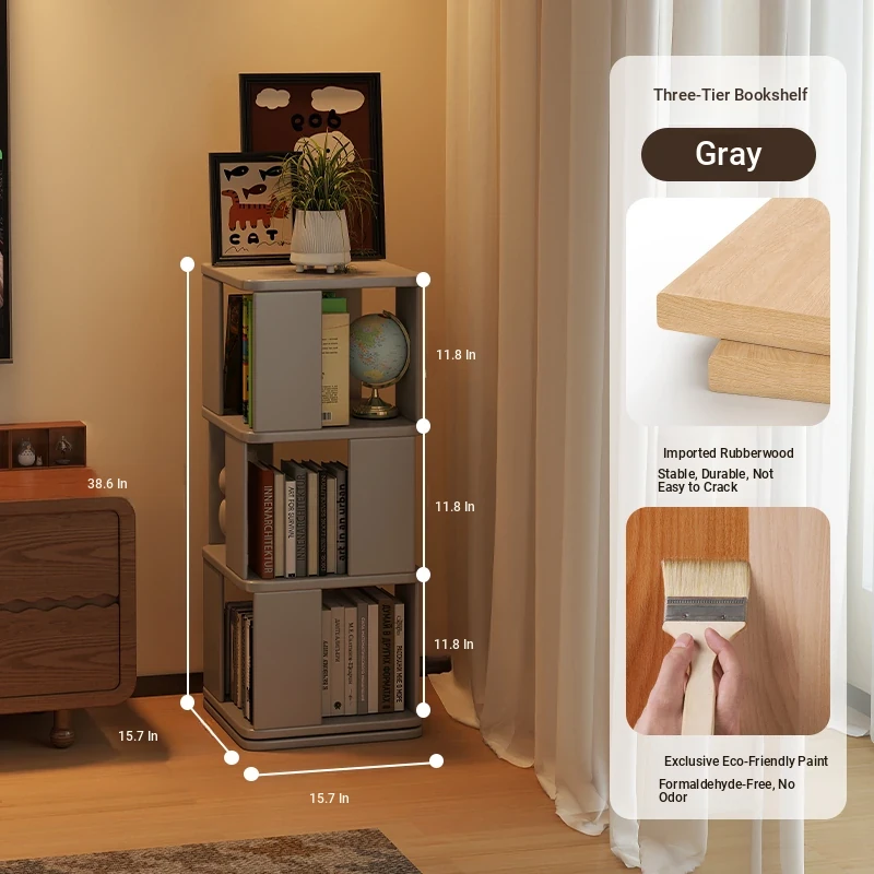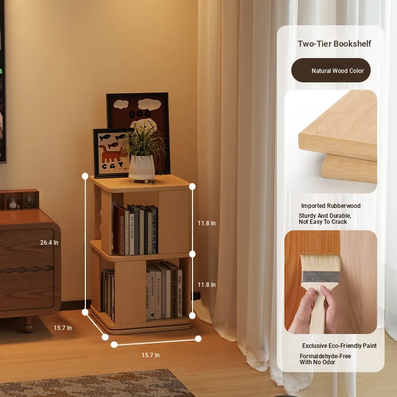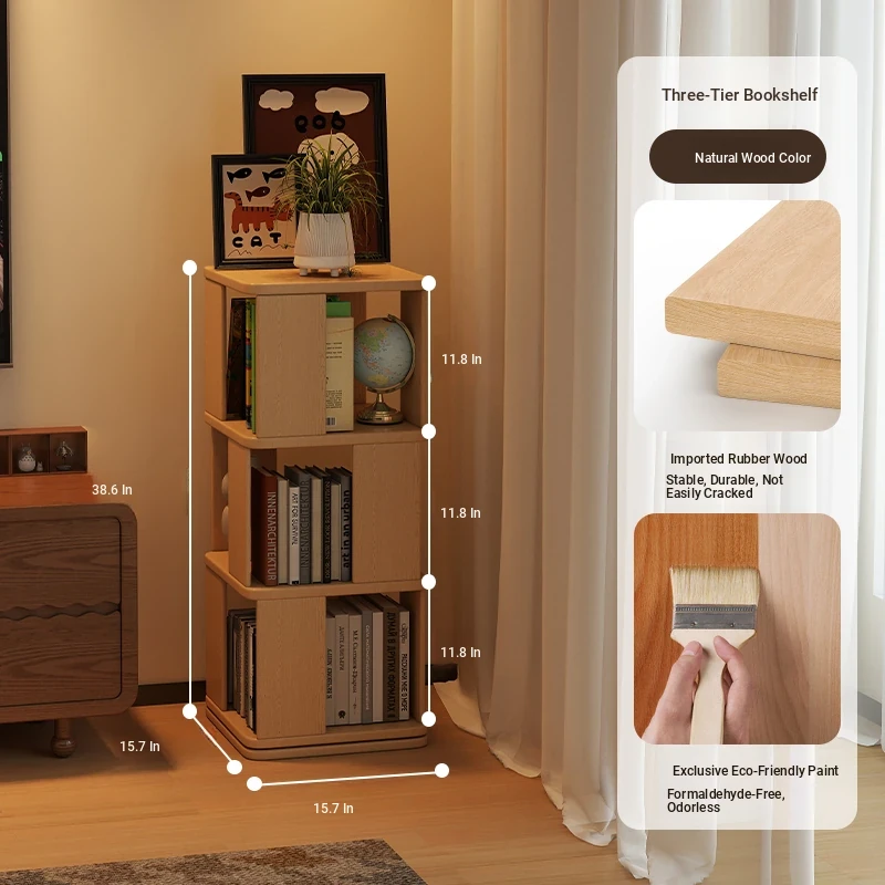 Wooden Rotating Bookshelf for Kids - Multi-Layer Reading Rack, Floor Standing Storage Shelf, Ideal for Living Room & Bedroom with Stylish Cubes, Perfect for Organizing Books and Toys