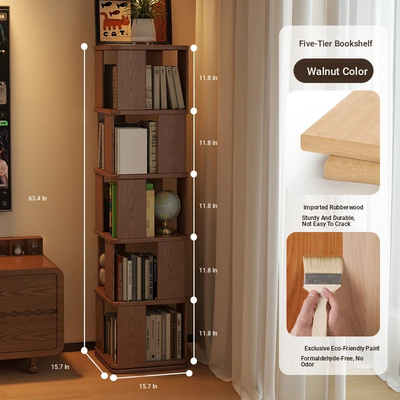 Walnut Color [5 Layers] Solid Wood Rotatable