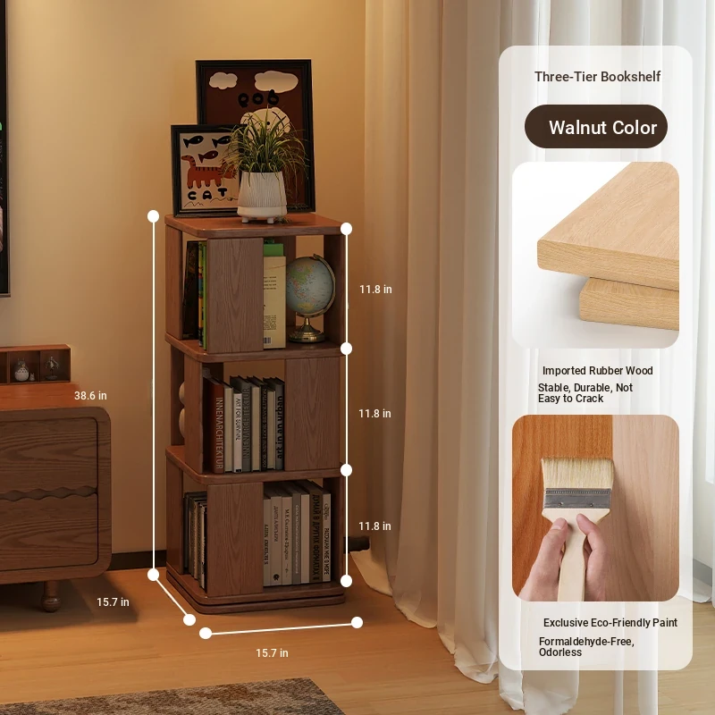Walnut Color [3 Layers] Solid Wood Rotatable