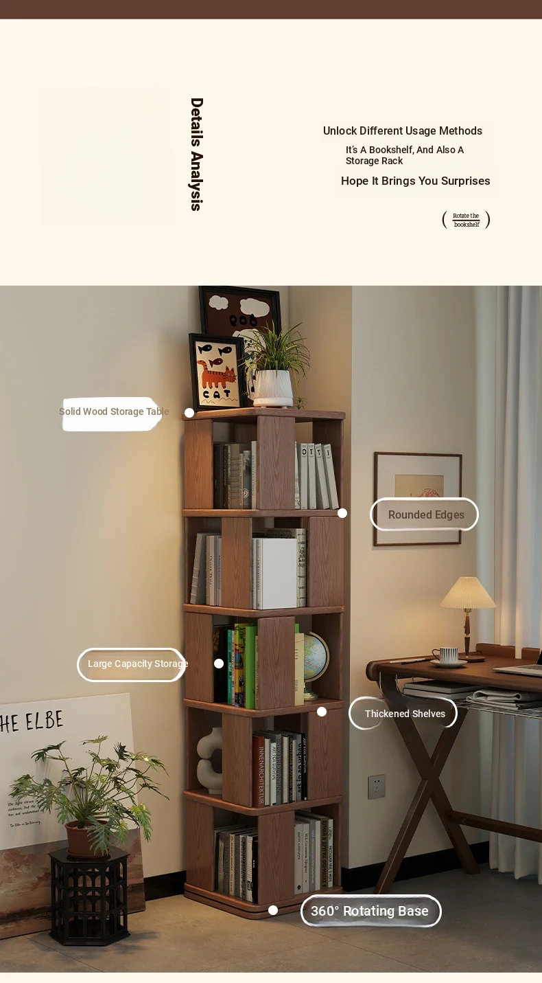 Wood Color [5 Layers] Solid Wood Rotatable