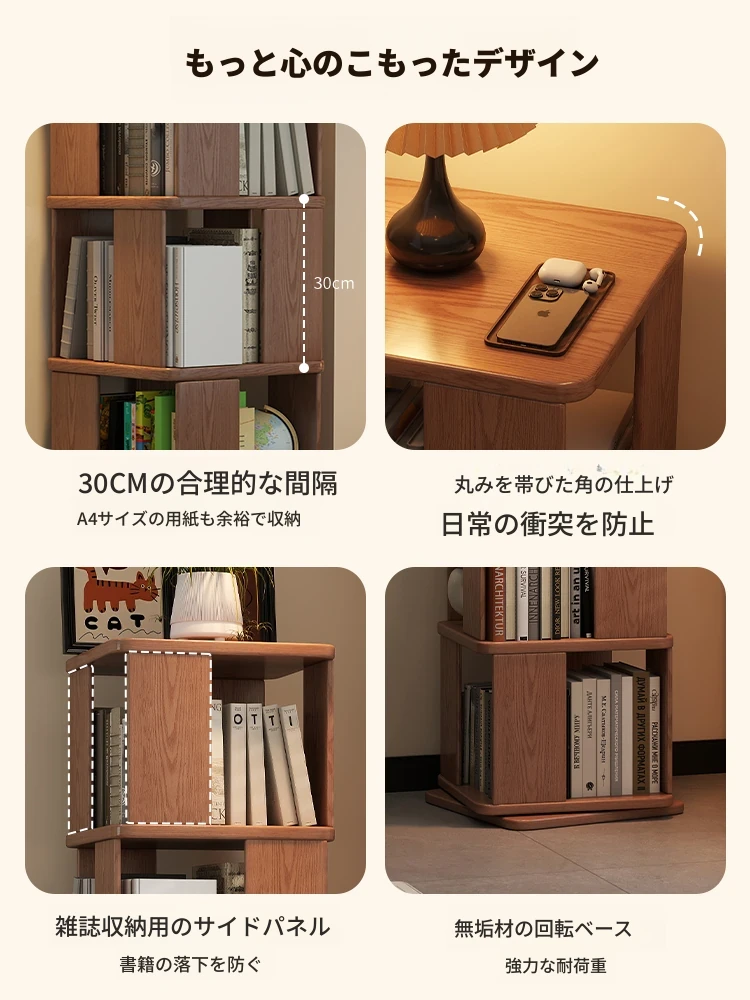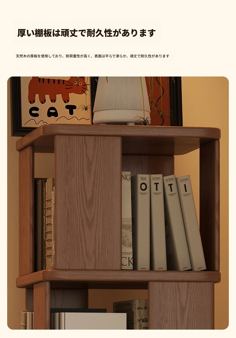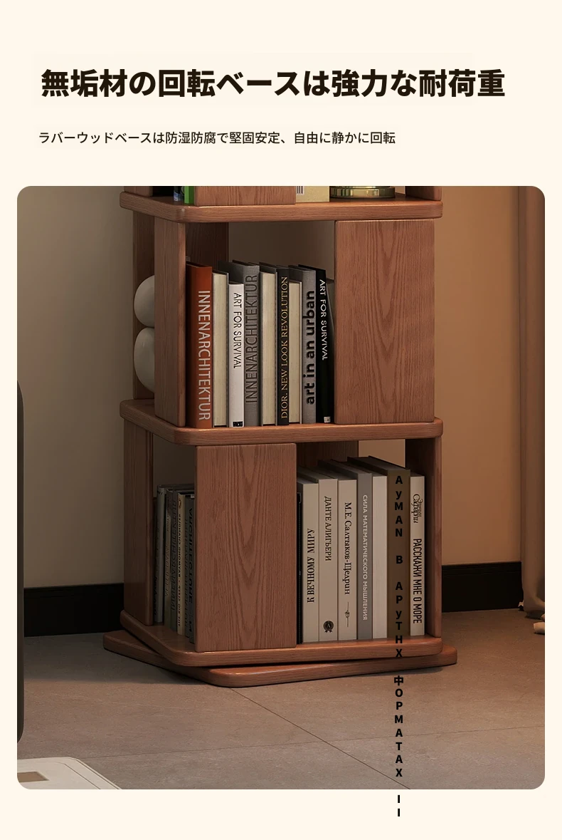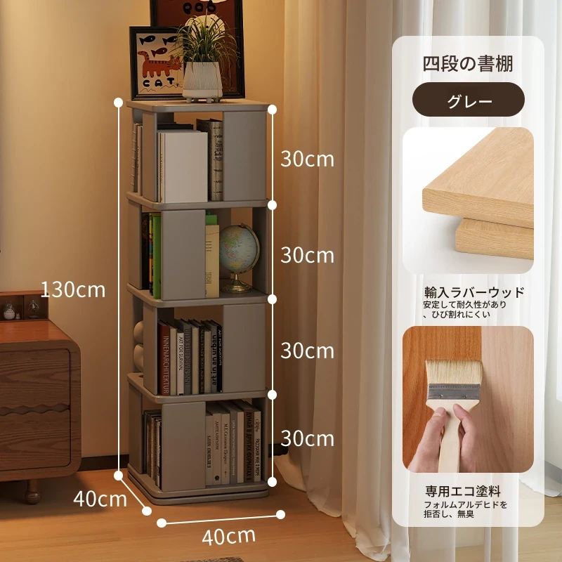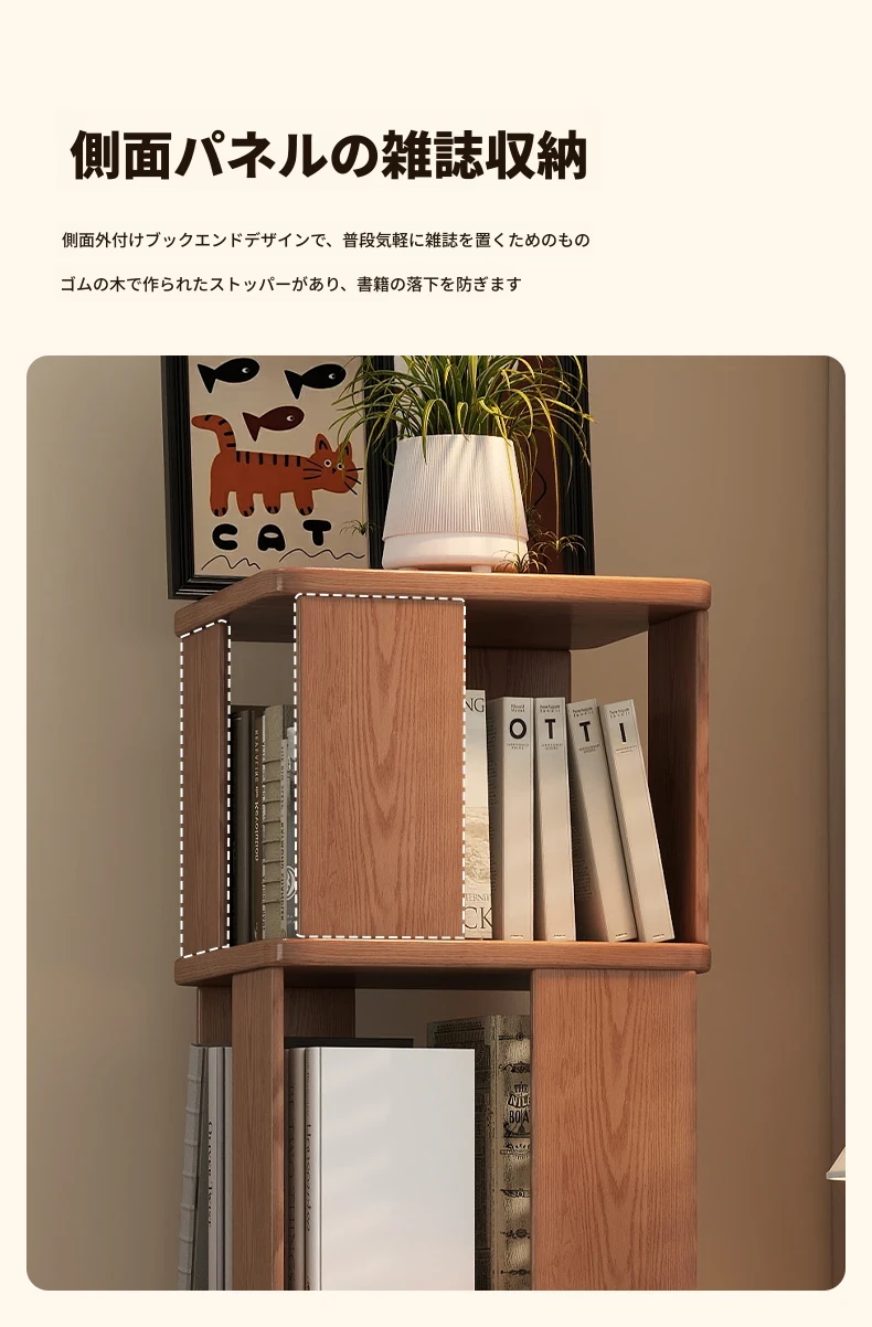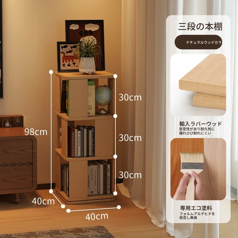子供向けの実木製回転書棚 - 家庭用の多層リーディングラック!リビングや寝室にぴったりのシンプルな置物ラック。おしゃれで機能的なスペースを演出し、お子様の読書習慣をサポートします!